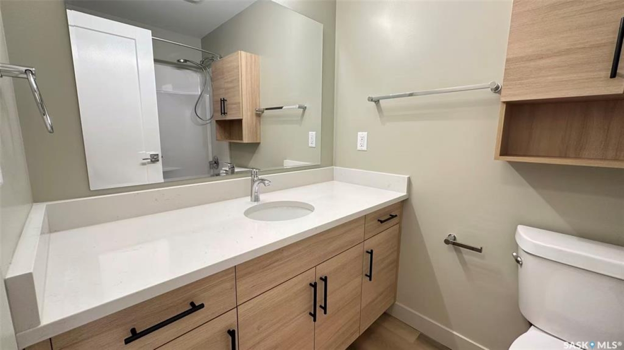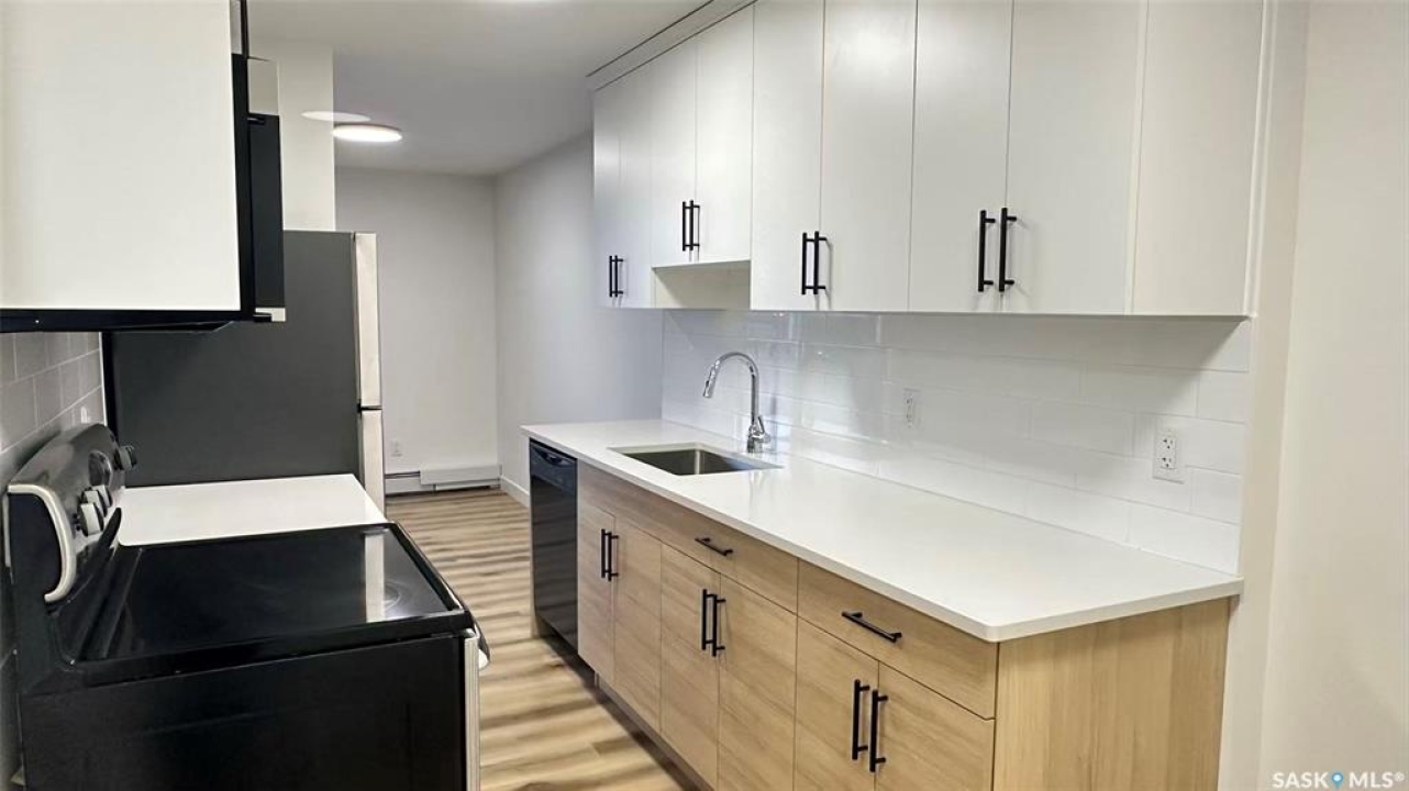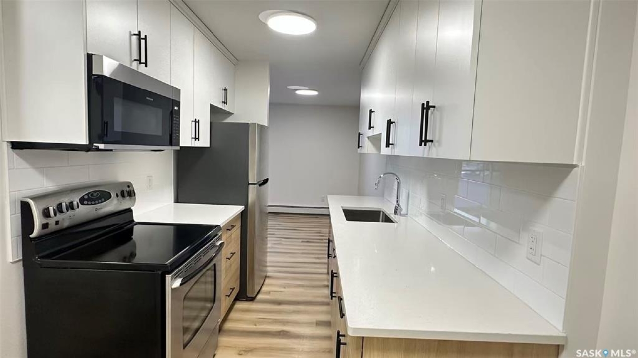Welcome to 207-4555 Rae Street, a completely transformed second-floor condo in the highly sought-after Elmcrest building, where over $60,000 in professional renovations has created a pristine, move-in-ready sanctuary. This bright, two-bedroom home is situated within a quiet, solid concrete building, featuring the convenience of an elevator for easy access. Step inside to find a flawless interior with brand-new luxury laminate flooring flowing throughout and a fresh, neutral coat of paint in every room, including the spacious private balcony. The heart of the home is a stunning new kitchen, complete with sleek Kitchen Craft cabinets, elegant quartz countertops, and a full suite of stainless steel appliances. This premium quartz is also featured in the modern four-piece bathroom, ensuring a cohesive and upscale feel. The efficient layout includes a separate dining room and ample storage, all enhanced by the bright, east-facing exposure. Enjoy the added perks of secure visitor parking and wheelchair accessibility. Nestled in the vibrant Albert Park neighborhood, you're just steps from parks, gourmet grocers, eclectic restaurants, and boutique shopping. This is a rare opportunity to own a fully renewed, sunny, and exceptionally well-located home in one of the city's most desirable communities.