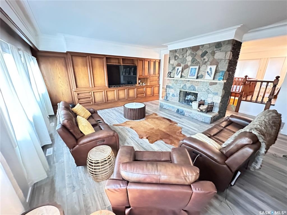 Step into a home where timeless character meets modern elegance. Thoughtfully and beautifully renovated from top to bottom, this remarkable property offers 4,072 sq. ft. of exquisitely planned living space across two levels, plus a sprawling basement ready to become your personal retreat—imagine a theatre room, games area, wet bar, and more. From the moment you walk in, warmth and sophistication surround you. Three functional wood-burning fireplaces anchor the home, creating inviting spaces perfect for gathering, relaxing, and truly living. Every room has been curated with intention, blending classic charm with refined contemporary finishes. The heart of the home is the stunning, fully updated kitchen—renovated with elegance and everyday function in mind. High-end finishes, thoughtful storage, and seamless flow make it a space you'll love to cook in, entertain in, and simply enjoy. With 5 spacious bedrooms, 4 bathrooms, and a dedicated office, the layout offers both comfort and flexibility for families, professionals, or anyone seeking an elevated lifestyle. The east side of the home features a large, well-planned laundry room designed to make daily living effortless. A newly renovated sauna and shower room provides an additional touch of luxury—crafted with you in mind for ultimate relaxation. Step outside to a carefully planned, fully fenced backyard that feels like a private haven. Backing directly onto green space with walking paths, a track, and a disc golf course, it offers peaceful views and endless recreation right at your doorstep. The location is unmatched—just moments from the high school, arena, and community amenities. This is more than a home. It's an experience—an exclusive opportunity for the discerning buyer who values beauty, quality, and purposeful design.