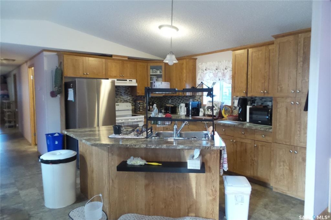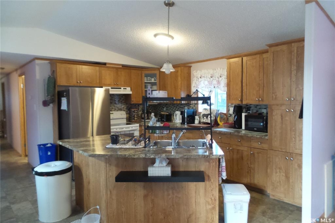 Escape to the tranquility of small-town life with this exceptionally maintained, 1,520 sq ft manufactured home, perfectly situated on a quiet, low-traffic bay and within easy walking distance to the local school. This residence is designed for comfort and modern living, featuring a spacious open-concept layout that seamlessly unites the living areas. The heart of the home is the fantastic kitchen, which is well-equipped for any cook and boasts a high-quality organization system with smooth-gliding drawer slides. Comfort is guaranteed year-round with a new 2024 air conditioner and the added value and convenience of an attached, fully insulated garage, providing secure parking and a functional workspace. Experience the peace of a close-knit community coupled with the easy flow and generous space of this move-in-ready home.