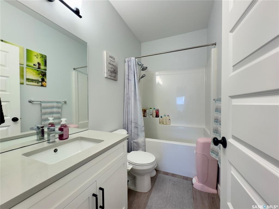 Welcome to 302 Pepper Place, located in a quiet cul-de-sac in one of Saskatoon's most convenient and growing neighbourhoods. This spacious 5 bedroom, 3 bathroom bi-level offers bright, open living space on the main floor, paired with a fully developed and legal 1-bedroom basement suite with its own separate entrance. This would be ideal for generating additional income or providing private space for extended family. The main level features a vaulted ceiling, large windows, and an open-concept layout connecting the kitchen, dining area, and living room. The kitchen includes quartz countertops, an island, and plenty of cabinet space. Three bedrooms are located on the main floor and upper level, including a generous primary suite with walk-in closet and 3-piece ensuite. The lower level of the main residence offers an additional bedroom and a laundry room that has been upgraded with added cabinetry for extra storage and everyday convenience. The legal basement suite is well thought out with its own HRV system, dedicated hot water heater, separate laundry, and bright kitchen with stainless steel appliances. The suite also comes partially furnished, making it easy to move in or begin renting right away. Brighton offers access to paved pathways, green spaces, and multiple playgrounds. The neighbourhood also features everyday conveniences such as grocery stores, restaurants, fitness facilities, medical services, and the Landmark Cinemas entertainment area, all just minutes away. Book a showing with your favourite agent today!