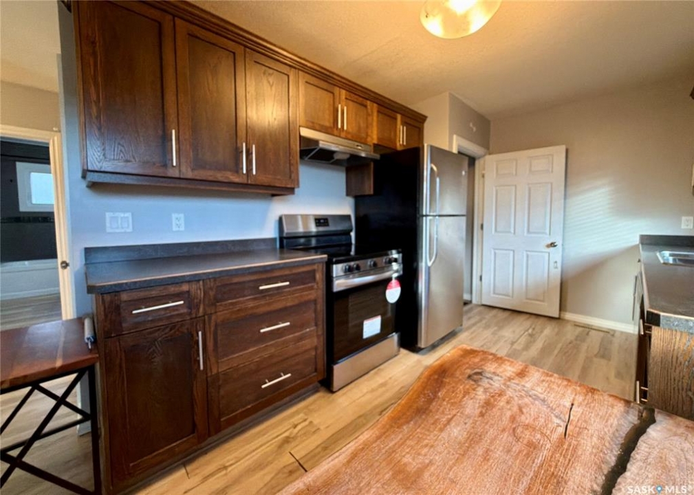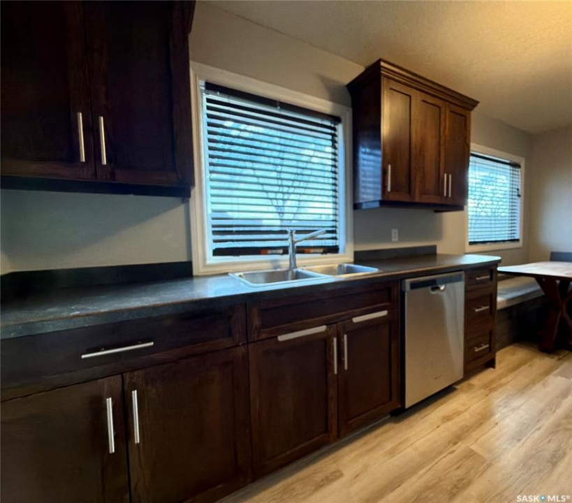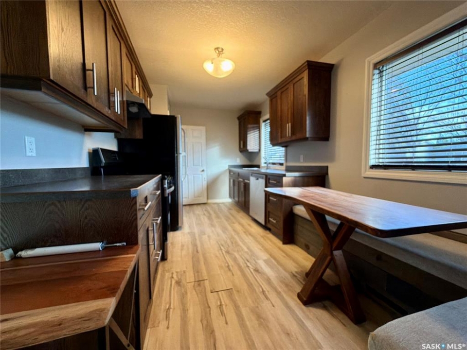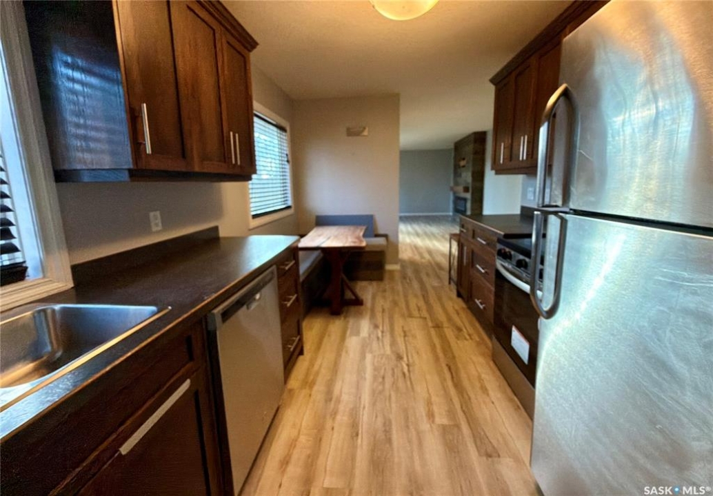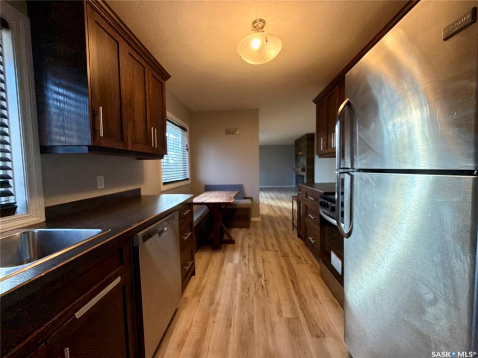 Welcome to 212 Garnet St—an inviting home that blends comfort, updates, and room to grow. Step inside to find a bright, spacious living room on the main floor, complemented by a cozy family room downstairs that's perfect for movie nights or gatherings. This 3-bedroom, 1-bathroom home has been thoughtfully improved over the years with vinyl plank flooring (2021), updated shingles (2020), refreshed windows, a stylish basement bar area (2015), a modern fireplace and mantle feature (2018), a beautifully improved backyard with grass and partial fencing (2018), and a charming kitchen nook added in 2020. Extra features add even more value, including an electric fireplace, shed, deck, air conditioning, a furnace installed approximately four years ago, a newer 2023 stove, and convenient off-lane parking in the backyard. A water softener is also included in as-is condition, as the seller has never used it. The back door layout lends itself well to potential suite development, and the basement offers space to add a future bathroom. There's even room in the yard to build a garage if desired. Move-in ready and full of potential, this home is a wonderful opportunity. Please note one of the windows in the bedroom may not meet egress.