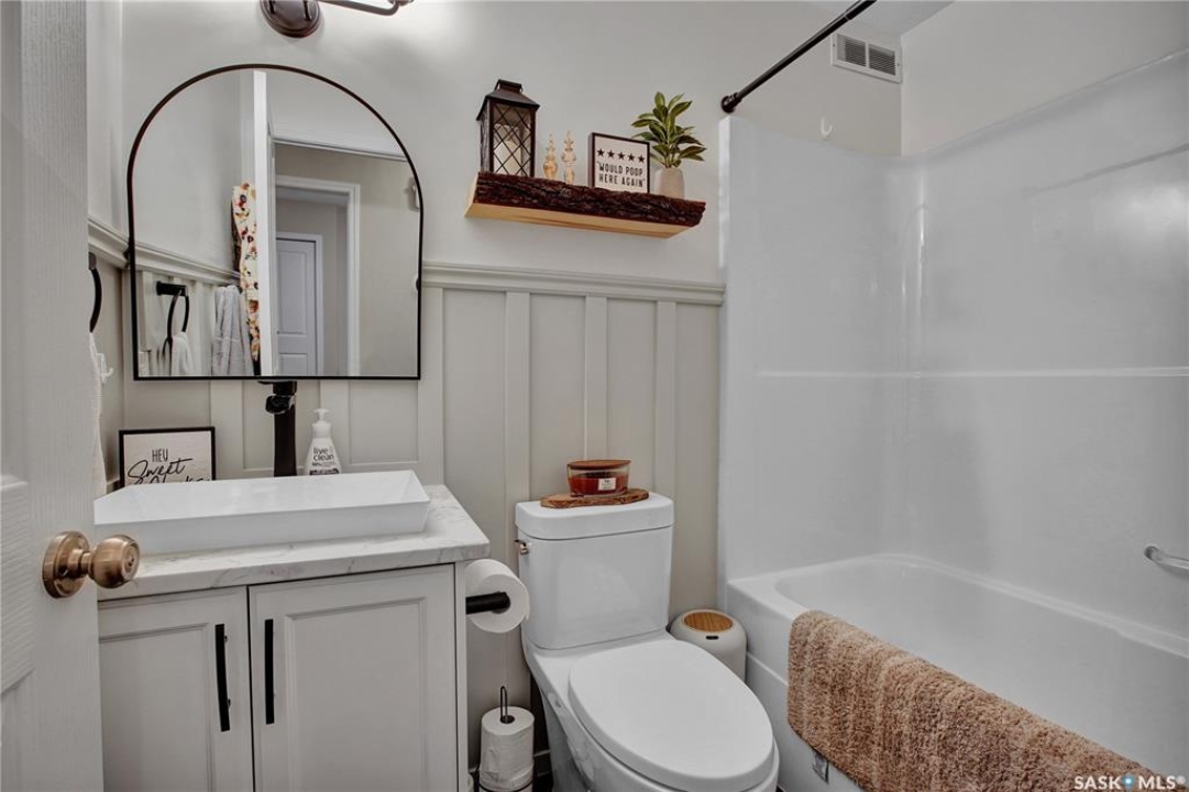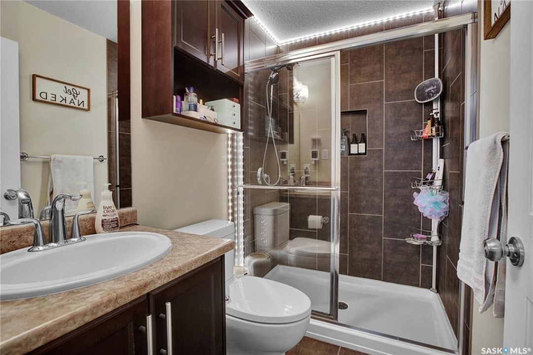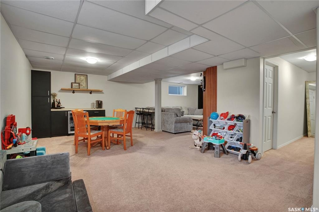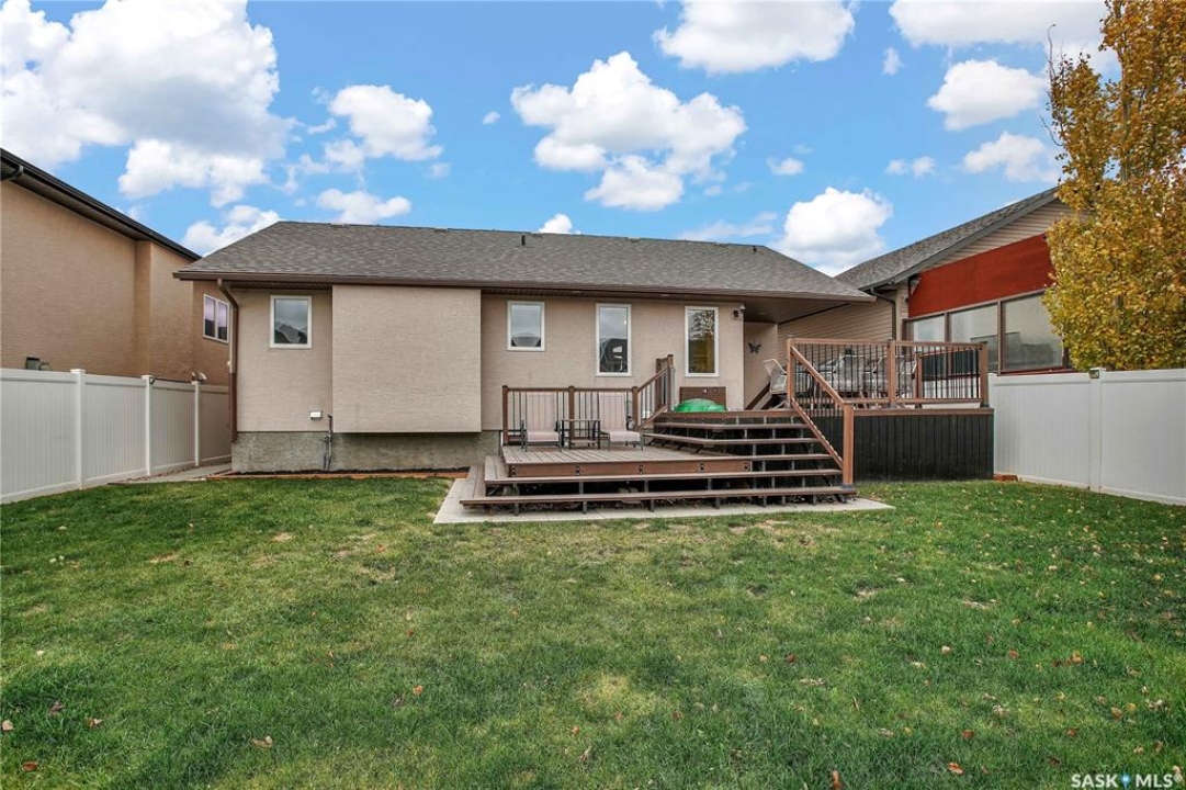 Beautifully updated and move-in ready, this 4-bedroom, 3-bath raised bungalow offers over 2,200 sq. ft. of finished living space designed with family comfort in mind. The main floor features three spacious bedrooms, including a primary suite with walk-in closet and private 3-piece ensuite, plus an updated main bath and convenient laundry. The bright, open living area showcases stylish feature walls and a functional kitchen that flows into the dining space and out to the deck—perfect for BBQs and summer entertaining. Downstairs offers a large family room, a 4th bedroom, full bath with oversized shower, and a new dry bar ideal for movie nights or guests. Outside, enjoy a fully fenced and landscaped yard with gazebo, refinished deck, and storage shed. The heated garage adds year-round convenience, while thoughtful updates inside and out make this home truly turnkey. Located in a family-friendly area within walking distance to amenities and the golf course—this one checks all the boxes!