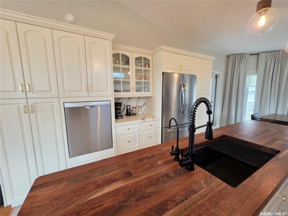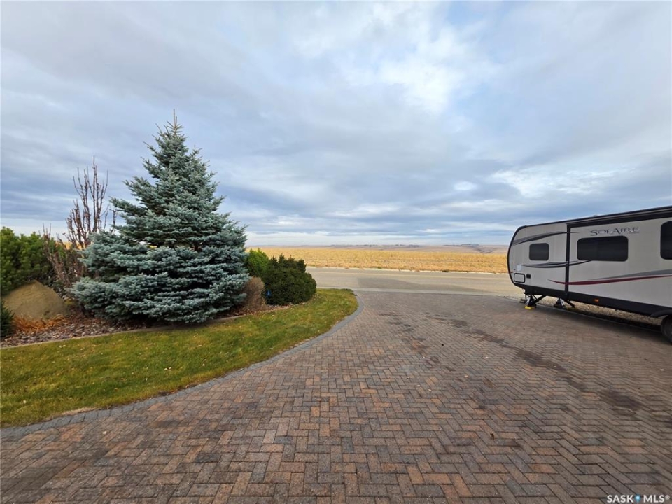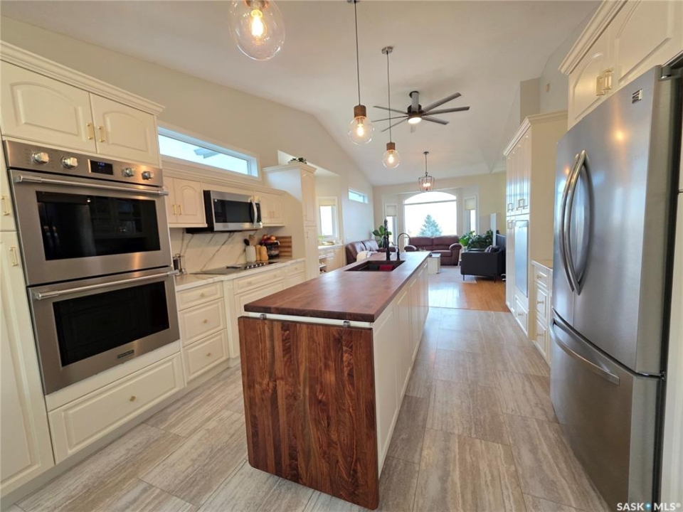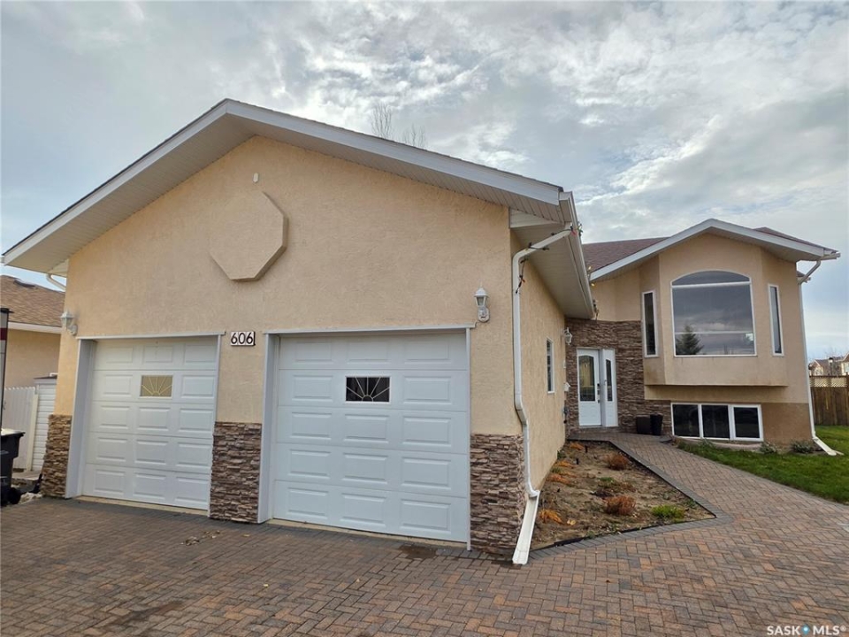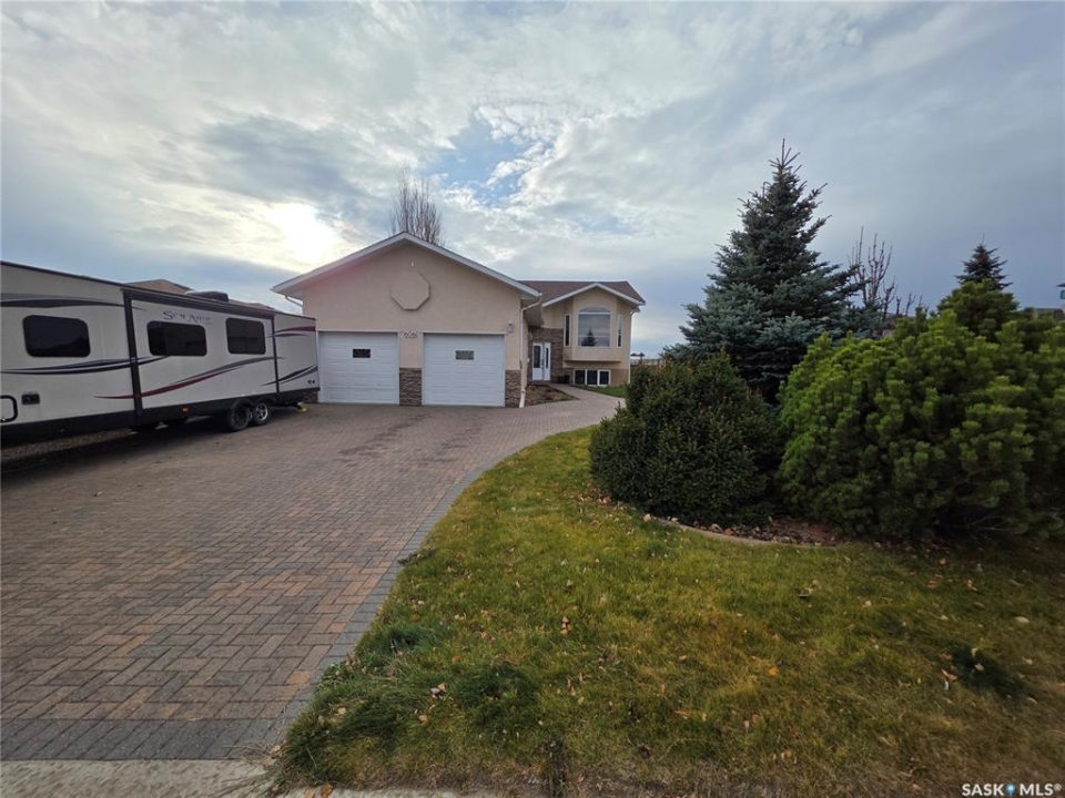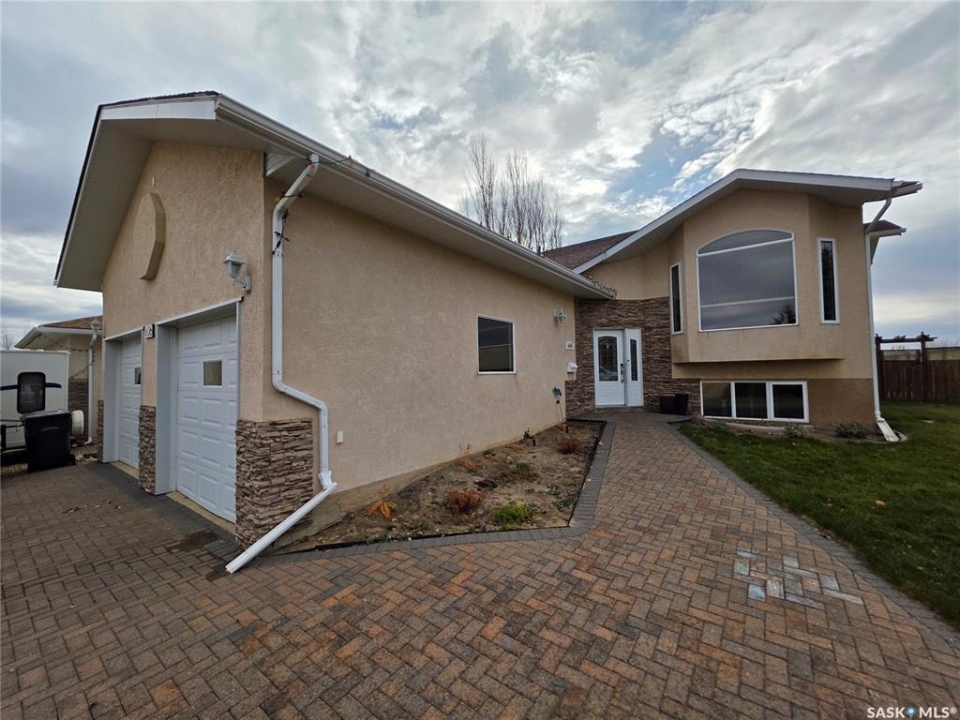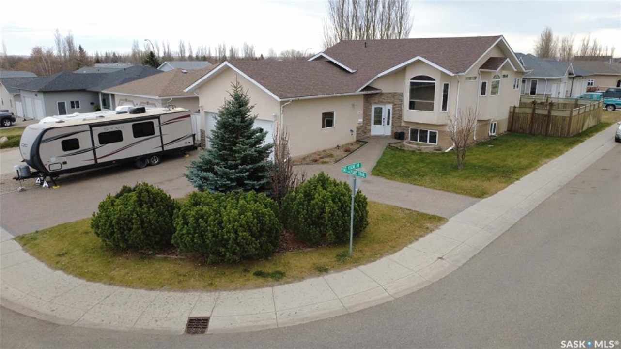 In a neighborhood where listings are about as rare as a Saskatchewan Roughrider Grey Cup victory (and just as exciting), this raised bungalow in the Highland area makes a grand first impression. 606 Battleford Trail, Swift Current, offers you a sweeping, unobstructed view over the open field that greets you the moment you arrive. Inside, the kitchen is a chef's playground with walnut countertops on a generous island, a built-in convection stove, and not one but two full-size wall ovens, all flowing into a cozy dining nook that opens onto a sunny south-facing elevated deck. The main floor keeps the everyday running smoothly with laundry, a stylish 2-piece bath for guests, and two bedrooms, including comfortable primary chambers with a roomy walk-in closet and its own private 3-piece en suite. Downstairs, the raised design allows for a walk-out basement, giving you full access to a lovely patio and the fully fenced back yard. A spacious rec room warmed by a natural gas fireplace, two more bedrooms with large windows, a full 4-piece bathroom, and a spacious storage room complete the layout. Add in the high-end systems—200-amp service, water softener, air exchanger, central air, central vac, and a manifold plumbing setup that gives everyone equal water pressure—no diplomatic shower negotiations required. From the 3-car driveway and heated double garage to the attractive stucco and stone exterior, you've got a property that doesn't just check boxes, it sets the tone. If living well is the goal, or if you've been waiting for a standout home in a standout location, this Highland gem is ready when you are—come take a look and see why it's worth making the move.