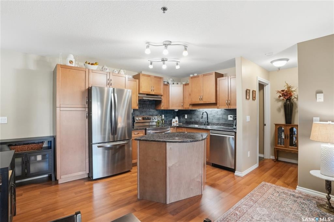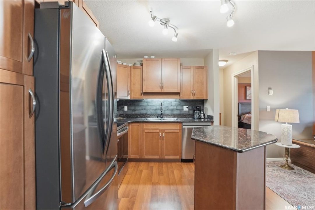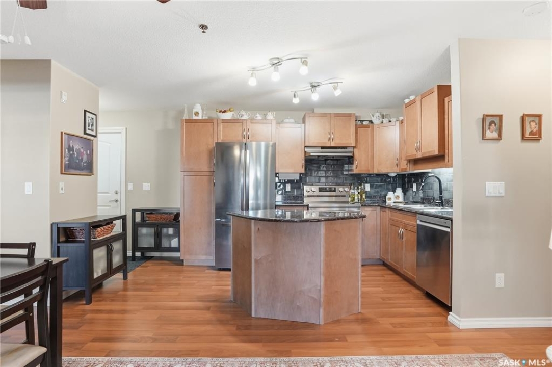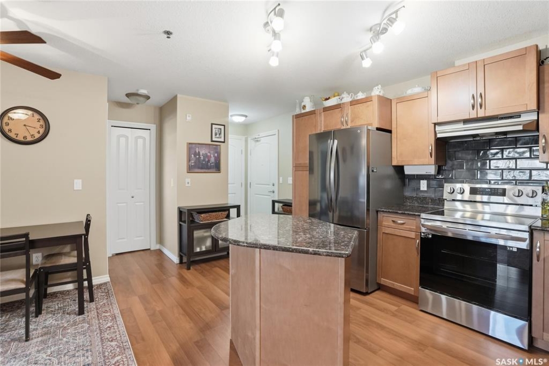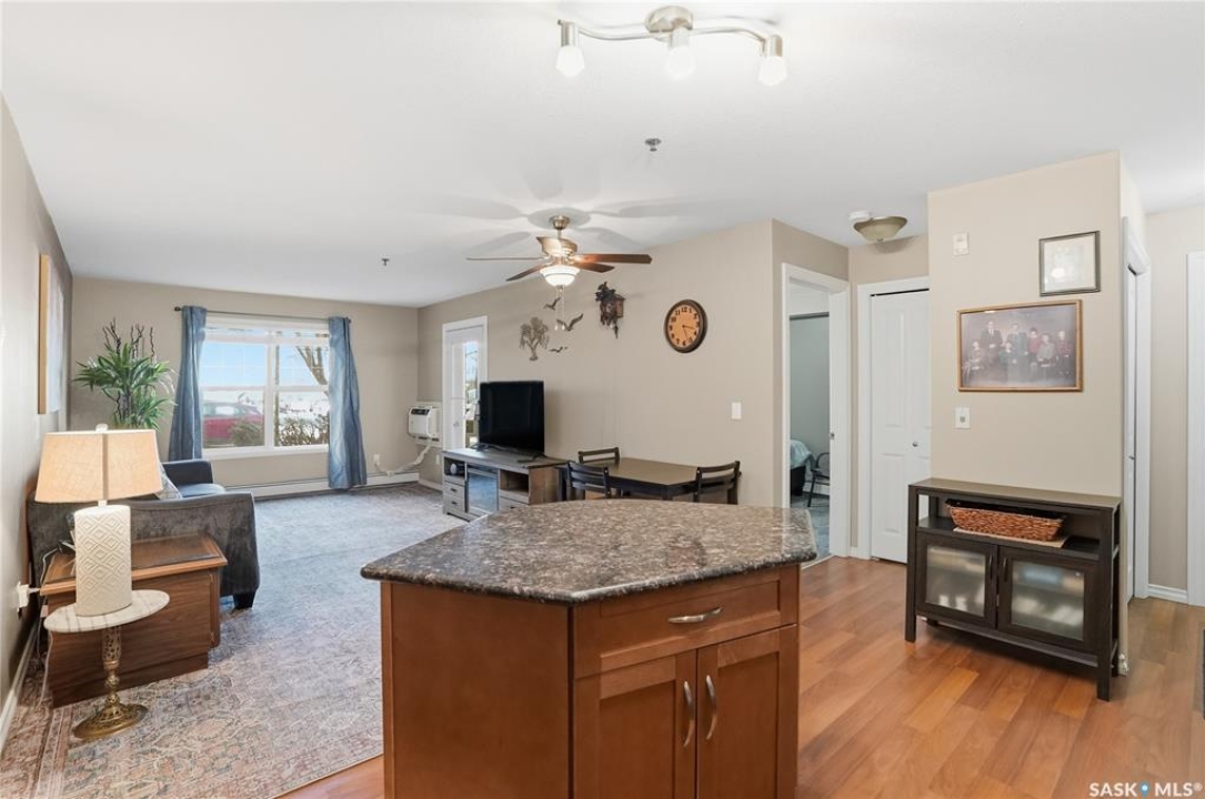 Welcome to Lakewood's reputable Ash Creek Condominium. Walk in and appreciate the care and maintenance that has been done on this unit. Great floor plan with main common area in the middle and bedrooms on either side giving great privacy. Open concept with still plenty of functionality and storage. Custom kitchen with island, granite countertops and stainless steel appliances. Laminate flooring in main area with newer carpet in the bedrooms. Main floor unit with two bedrooms + 1 Bath, insuite laundry and covered balcony. Spacious bedrooms with walk in closets in both! Steps away is everything you need (grocery, gas, liquor, medical, restaurants, pharmacy, fitness, public transport and beauty). Safe and sought after location at a very attractive price. Call your agent and view with confidence.