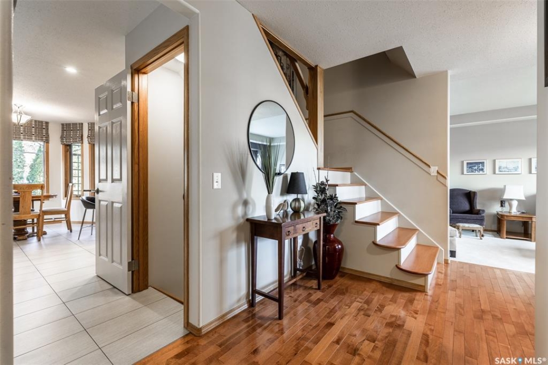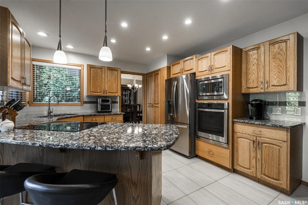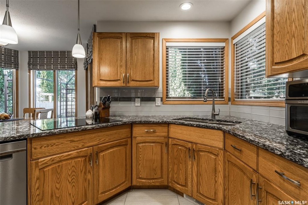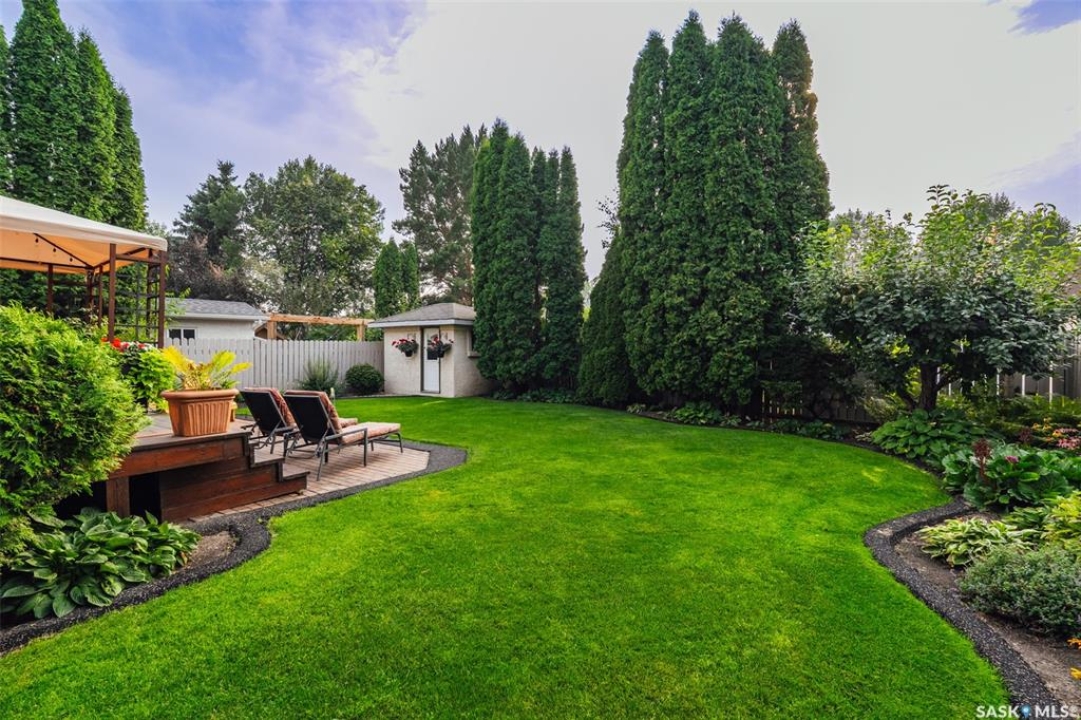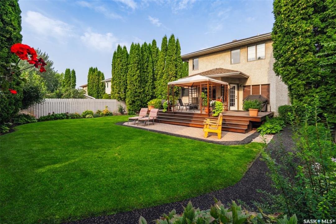 Welcome to 638 Hurley Cres in Saskatoon's Erindale neighbourhood. This 2 storey home was custom built and has been lovingly cared for by the same owners for over 30 years. A spacious foyer greets you as you walk in. At the front of the house there's a more formal living room that leads directly to the dining room, making it a great space to host guests. The kitchen is very well appointed with stainless steel appliances, stone countertops, a pantry for storage, and views of the backyard. Here you'll also find a nook for casual meals, and a living room with a cozy wood burning fireplace for cooler months. Also on the main floor is an office space, access to the double attached garage, main floor laundry, and a powder room. Heading up to the 2nd floor you'll find a large primary bedroom with a walk through closet that leads to a 5 piece ensuite, as well as 2 big secondary bedrooms and a 4 pc bathroom. Down in the basement there's a recreation room for watching the game with friends or sending the kids down to play. There's also a den, a 4th bedroom, a 3 piece bathroom and plenty to room to tuck things away in 2 storage spaces! Please note that the bedroom window does not meet current egress standards. Next summer you'll thank yourself for buying this house, this yard is stunning! There's a cedar deck with a gazebo (2 covers included), a brick patio, rubber curbing around the beautiful perennial beds, a perfect lawn, and the cutest shed that matches the house.