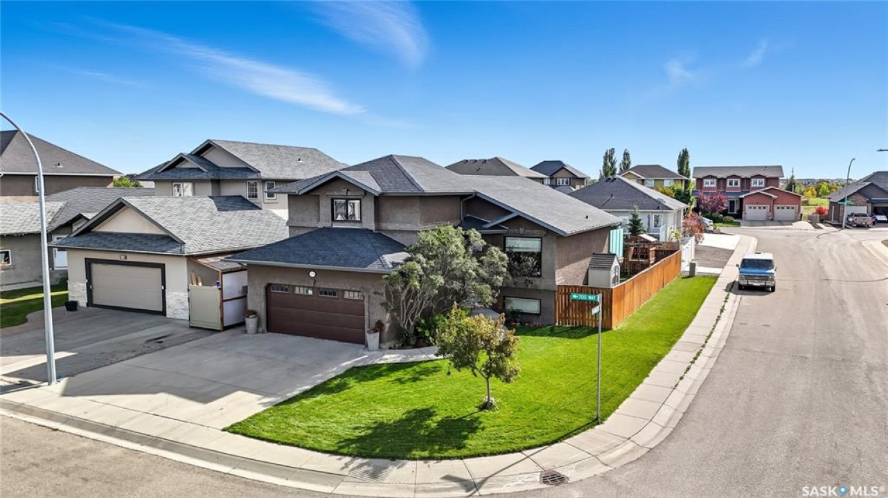 703 Beechdale Way – Briarwood Tucked away on a quiet street in desirable Briarwood, this updated modified bi-level offers over 1,700 sq ft of thoughtfully designed living space. With 5 bedrooms and 3 full bathrooms, the home blends comfort, style, and practicality. A bright great room with vaulted ceilings and a cozy gas fireplace creates an inviting first impression. The kitchen has been refreshed with maple cabinets, quartz countertops, and stainless steel appliances, complemented by updated flooring, lighting, baseboards, and paint throughout. A separate formal dining room provides a dedicated space for gatherings and family meals. Main-floor laundry adds everyday convenience. Upstairs, the private primary suite offers a peaceful retreat with a walk-in closet and a luxurious 5-piece ensuite. The fully developed basement expands the living space with a large family room and two generous bedrooms—ideal for guests, teens, or extended family. A heated double attached garage and well-manicured yard enhance the home's appeal. With walking paths, shopping, and transit nearby, the location delivers both convenience and quality of life. A warm and inviting home in one of Saskatoon's most sought-after neighbourhoods.