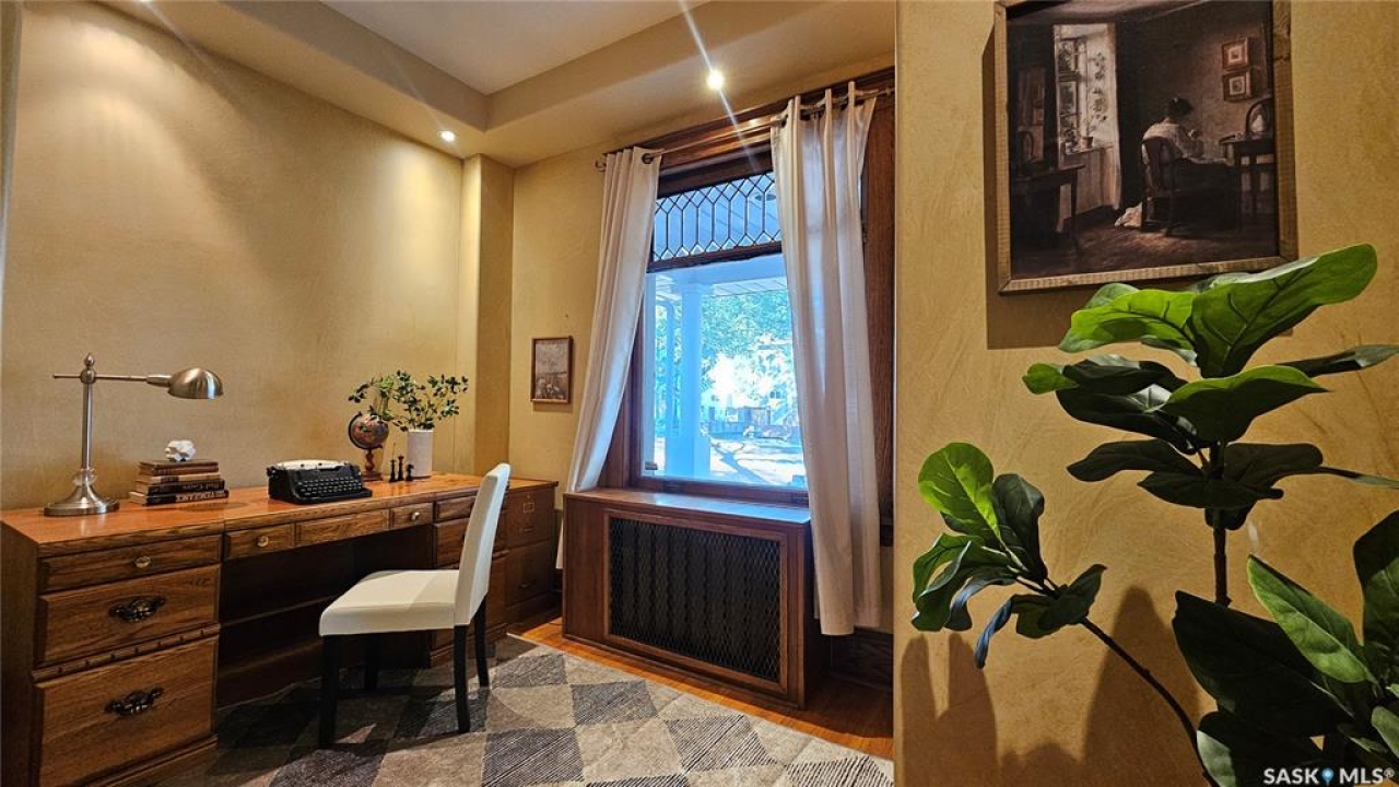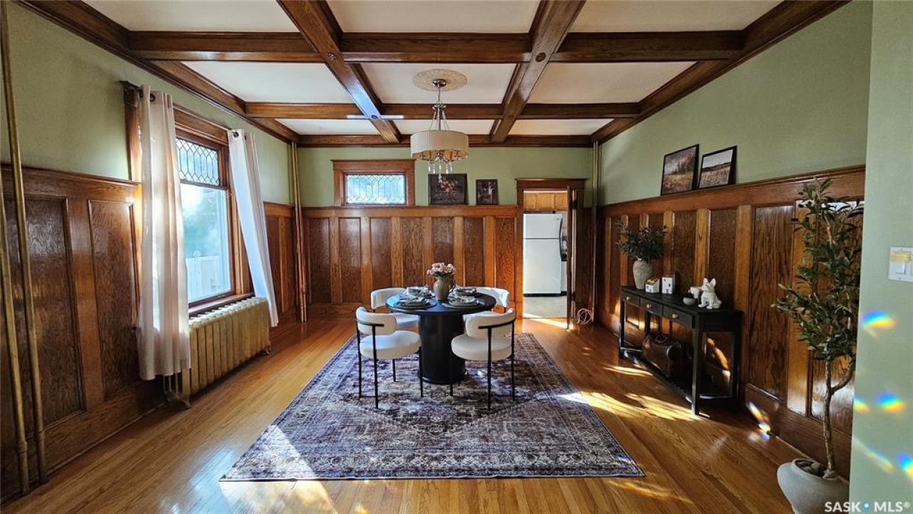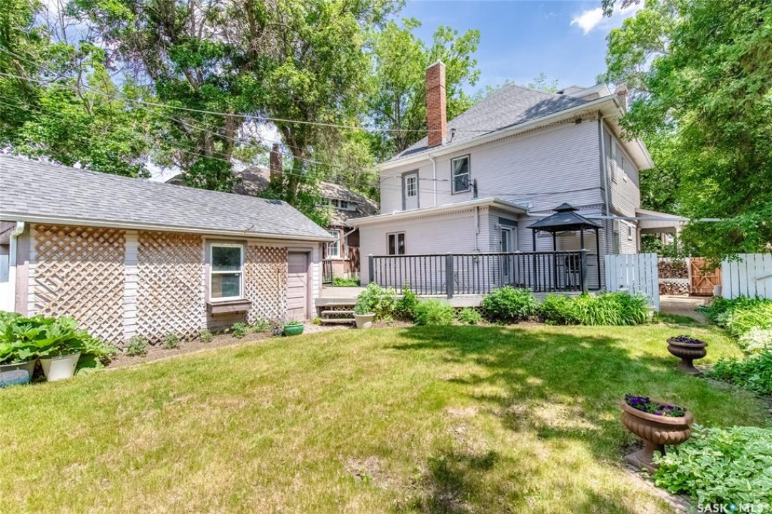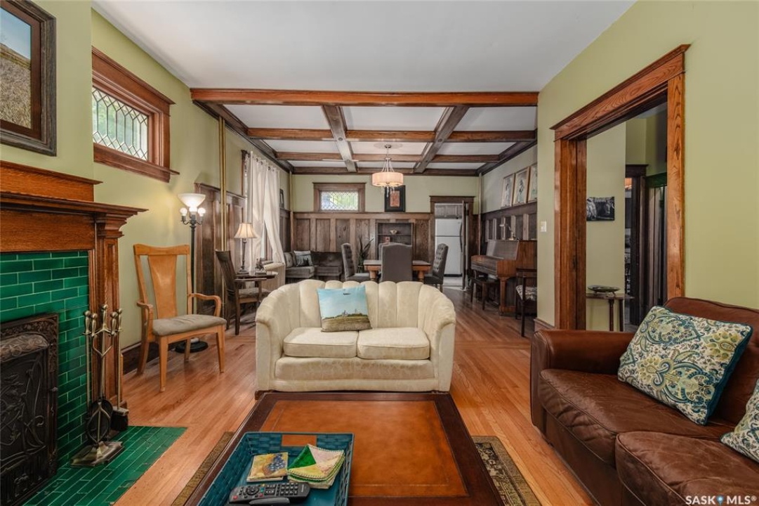 Welcome to this beautiful, character-filled home nestled on the tree-lined and sought-after Clifton Avenue. From the moment you arrive, the inviting front covered porch sets the tone—this is a home with heart, history, and so much to offer! Step inside and you'll find a main floor full of warmth and possibility. A bright front office and 2-piece bathroom offer function and flexibility right off the entry. The living room is cozy and welcoming, featuring a wood-burning fireplace with stunning green tilework — a true focal point with vintage appeal. The dining room is simply breathtaking, with rich wood moldings and exposed ceiling beams that make every dinner feel special. The kitchen has updated countertops and a layout that could easily be opened up into the adjacent breakfast room for even more space and flow. Head upstairs and you'll find four comfortable bedrooms and a 4-piece bathroom complete with a charming clawfoot tub — classic and functional. The third level is a hidden gem: a sprawling loft-style room with its own 4-piece bathroom and walk-in closet. Whether you use it as your primary suite, a creative studio, or a bonus room, it's a space full of possibilities. The basement offers high ceilings and a wide-open layout, ready to be finished however you dream it — home gym, rec room, extra bedrooms... the sky's the limit. Outside, enjoy a fully landscaped yard, large deck, and complete fencing for privacy. There's even a single-car garage to round it all out. This home is more than just a place to live — it's a piece of Moose Jaw's history, beautifully preserved and waiting for its next chapter. Don't wait--book your viewing today!