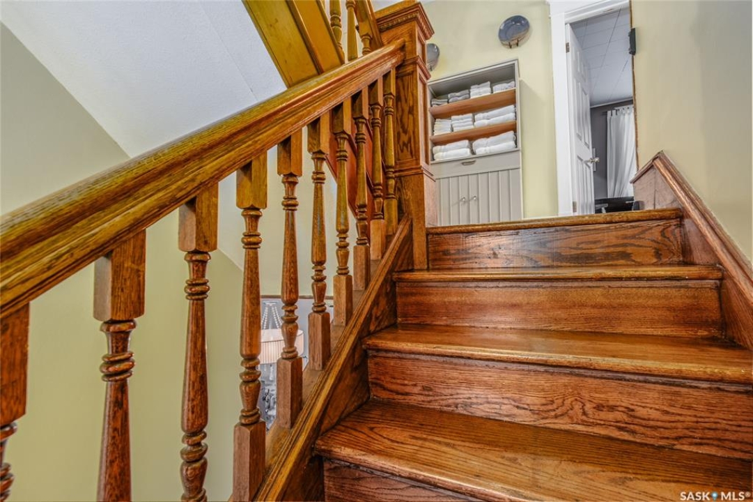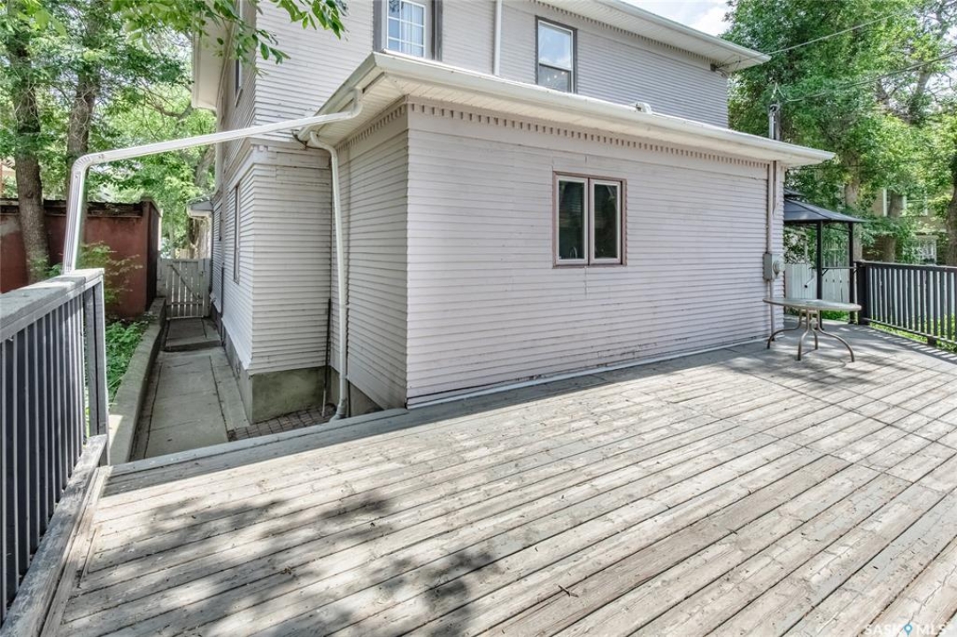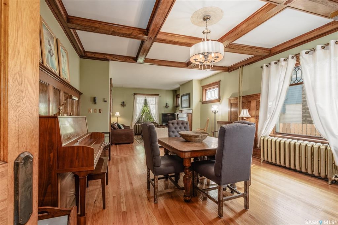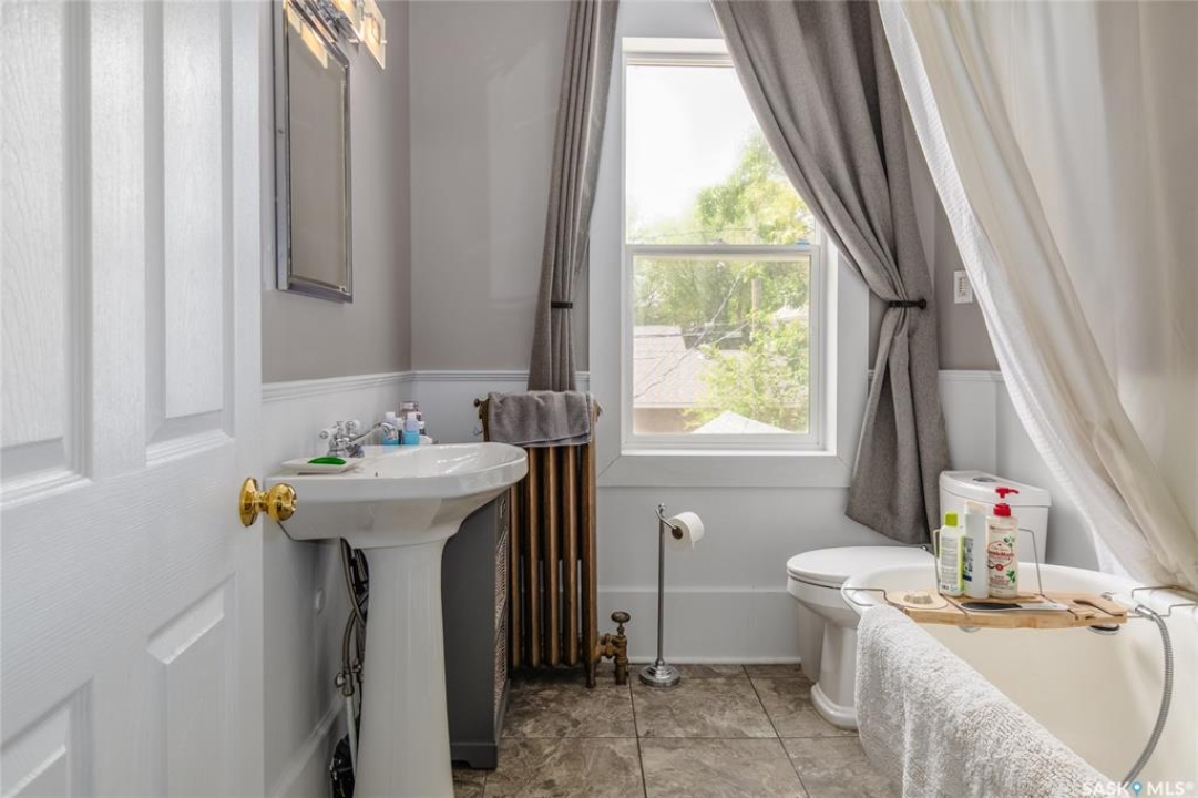 Welcome to this beautiful, character-filled home nestled on the tree-lined and sought-after Clifton Avenue. From the moment you arrive, the inviting front covered porch sets the tone—this is a home with heart, history, and so much to offer! Step inside and you'll find a main floor full of warmth and possibility. A bright front office and 2-piece bathroom offer function and flexibility right off the entry. The living room is cozy and welcoming, featuring a wood-burning fireplace with stunning green tilework — a true focal point with vintage appeal. The dining room is simply breathtaking, with rich wood moldings and exposed ceiling beams that make every dinner feel special. The kitchen has updated countertops and a layout that could easily be opened up into the adjacent breakfast room for even more space and flow. Head upstairs and you'll find four comfortable bedrooms and a 4-piece bathroom complete with a charming clawfoot tub — classic and functional. The third level is a hidden gem: a sprawling loft-style room with its own 4-piece bathroom and walk-in closet. Whether you use it as your primary suite, a creative studio, or a bonus room, it's a space full of possibilities. The basement offers high ceilings and a wide-open layout, ready to be finished however you dream it — home gym, rec room, extra bedrooms... the sky's the limit. Outside, enjoy a fully landscaped yard, large deck, and complete fencing for privacy. There's even a single-car garage to round it all out. This home is more than just a place to live — it's a piece of Moose Jaw's history, beautifully preserved and waiting for its next chapter. Don't wait--book your viewing today!