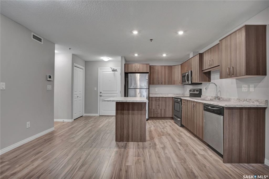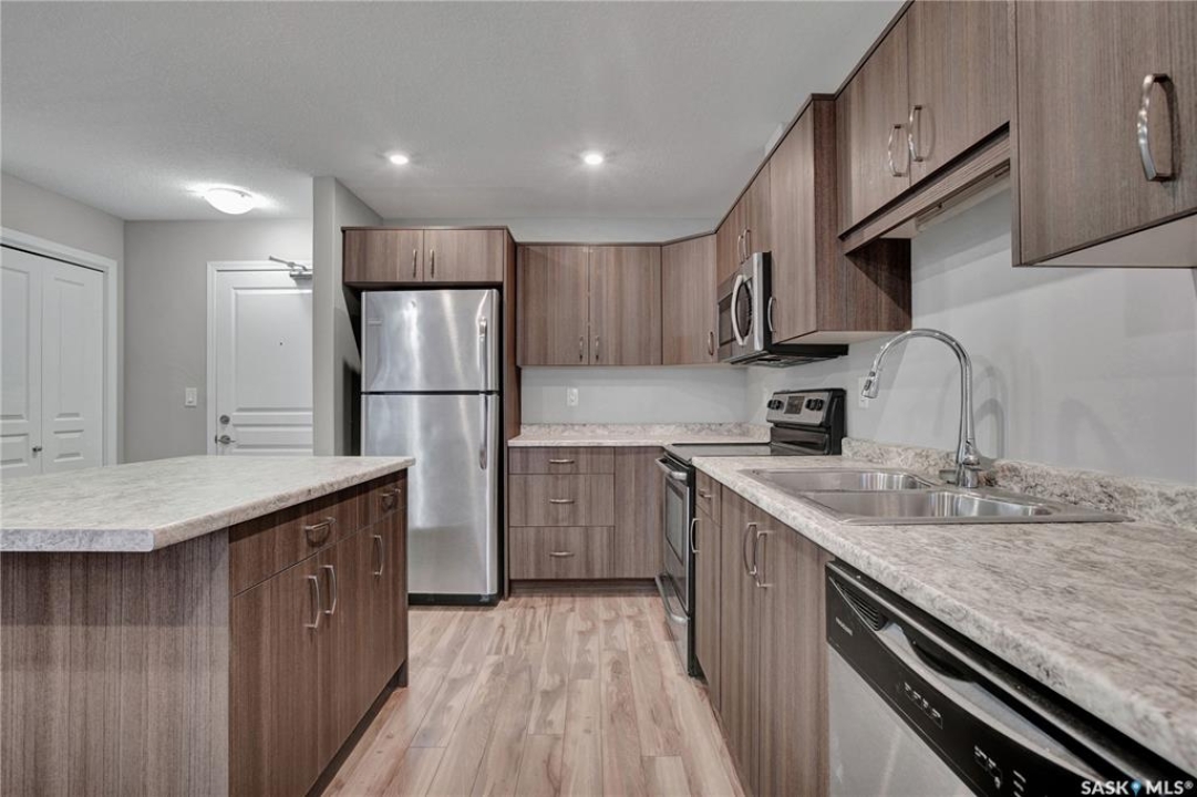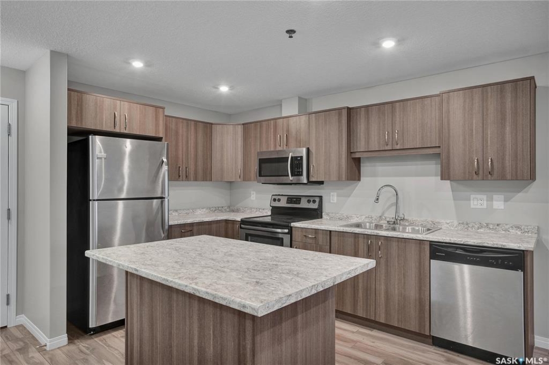 Discover this freshly painted, 1 bed / 1 bath condo in the highly desirable Stonebridge neighbourhood. Designed for modern living, the unit features in-suite laundry for convenience, plus the added benefit of one underground parking stall. The bright, open-concept living area flows nicely into the kitchen, and large windows provide abundant natural light. Located in a secure building with elevator access, this home ensures both accessibility and comfort. Stonebridge is known for its excellent amenities, including green spaces, trails, schools, and easy access to retail, restaurants, and transit. Perfect for first-time buyers, downsizers, or investors, this turnkey condo offers a low-maintenance lifestyle in one of Saskatoon's most vibrant communities. Call your REALTORS � today for a private viewing!