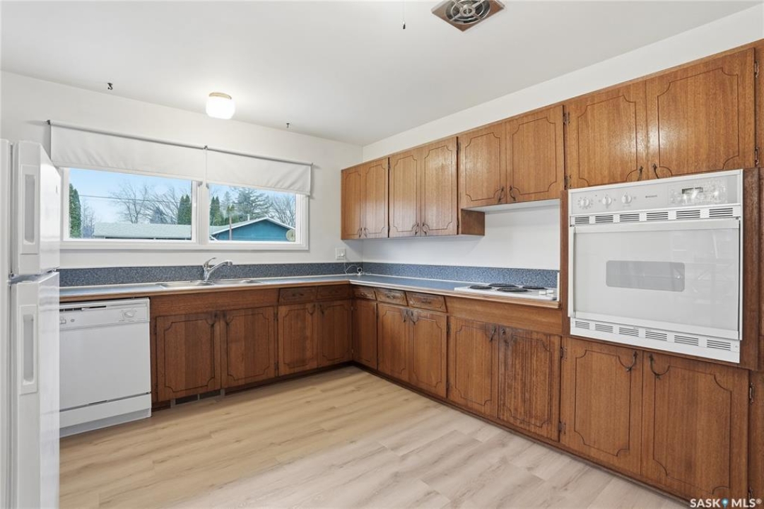 Custom Mid-Century build! Original owner! Welcome to your dream home in the highly sought-after Hollisten community! Ideally located just a couple of blocks from Market Mall and schools, you'll find every amenity you could need right at your doorstep. This fantastic corner lot offers both convenience and charm in one of the best neighborhoods around. As you step inside this impressive 1426 square foot, 5 bedroom four-level split home, fully developed throughout. You'll love the updated furnace and new water heater (2025), along with fresh shingles that add to the home's appeal. The top two levels boast hardwood floors, creating a warm and inviting atmosphere. With 3 large bedrooms up the primary bedroom features a 3-piece bath with a newly renovated shower. The 3rd level features huge windows, 4th and 5th bedroom and 2pc bath with new flooring (Nov 2025)! The 4th level features a huge games room, workshop, cold storage and laundry with sink and mechanical room. With R2 zoning and a separate entrance on the third level, this property presents a unique opportunity for you to build your dream shop or create an income suite! Completely painted throughout! Don't let this chance slip away—presentation of offers is happening this Sunday November 23rd at 3pm. This is your moment; don't miss out!!