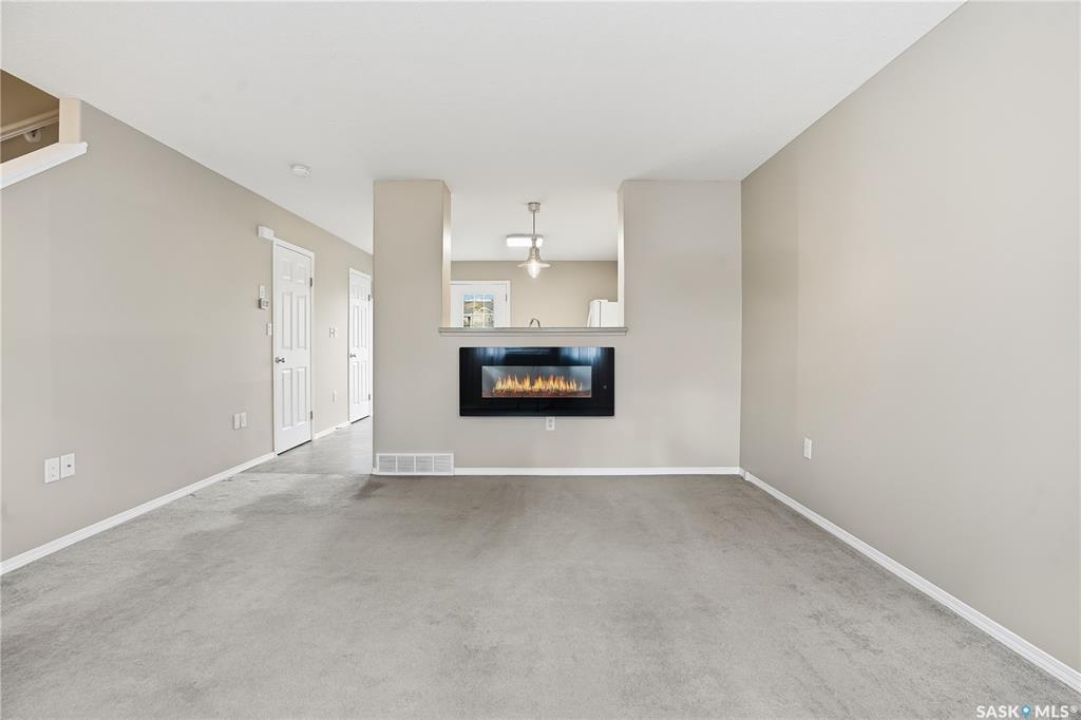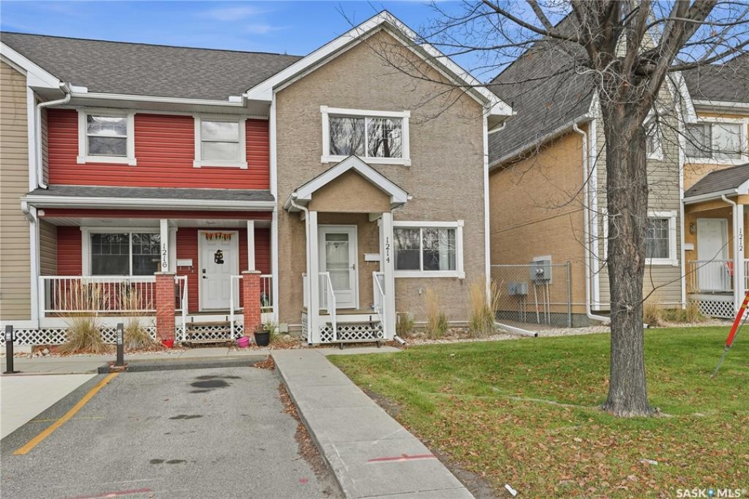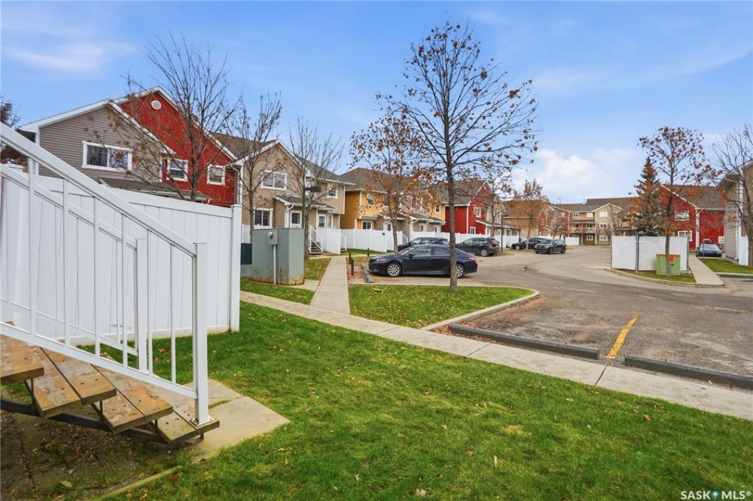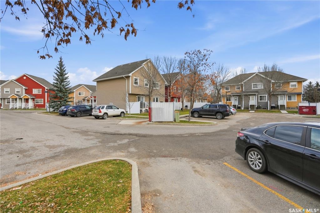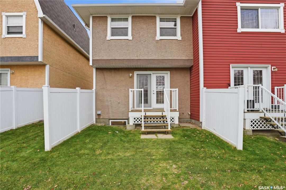 Welcome to this well-maintained 1,062 sq ft two-storey townhouse condo located in Regina's General Hospital neighbourhood. This home offers 3 bedrooms, 2 bathrooms, and a fully developed basement, making it a fantastic option for first-time buyers, young families, or anyone seeking convenient, low-maintenance living close to downtown. The main floor features a spacious living room just off the front entrance, complete with an electric fireplace for added warmth and ambiance. At the back of the home, you'll find an inviting eat-in kitchen with bright white cabinetry, a rare oversized pantry, and patio doors that lead to your private backyard space. Upstairs offers three comfortable bedrooms and a well-appointed 4-piece bathroom. The recently updated basement provides a generous additional living area finished with wide-plank white oak vinyl flooring. A large 3-piece bathroom/laundry room, offers extra cabinetry, excellent counter space—perfect for folding and organizing and a deep laundry sink, adding convenience and functionality. Parking is a breeze with a dedicated stall located directly in front of the unit, plus the option to rent a second stall directly behind. A clean, move-in ready condo with thoughtful upgrades in a central location—this is one you won't want to miss!