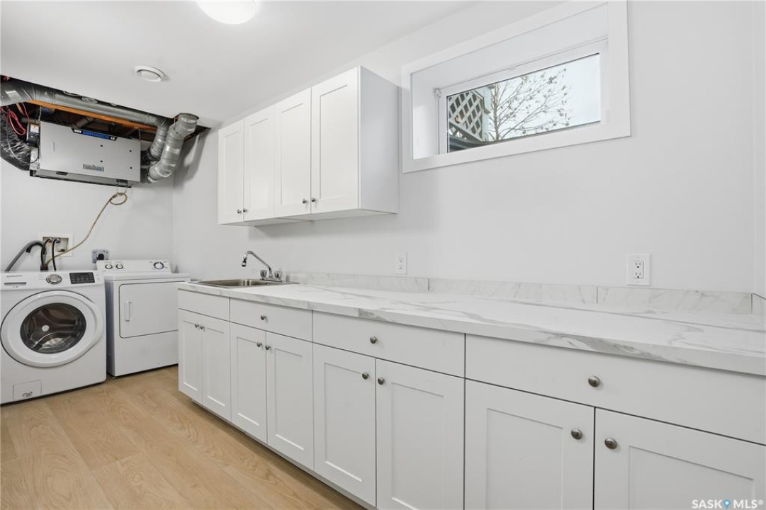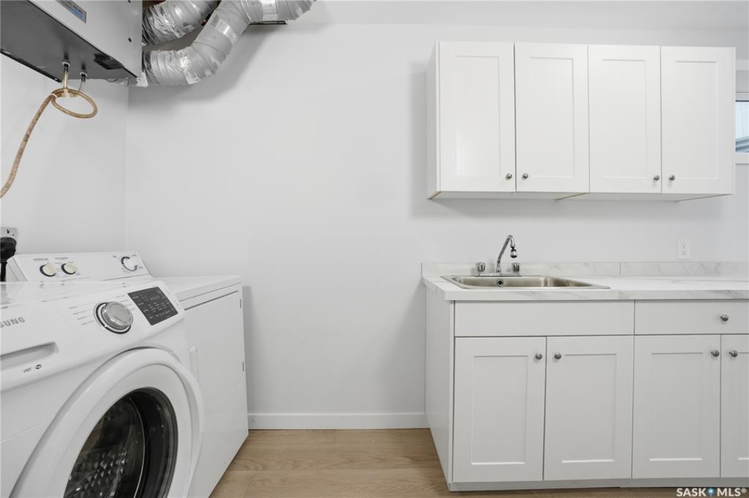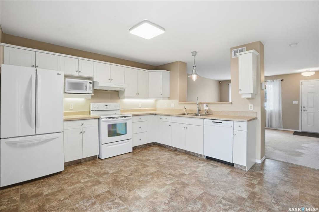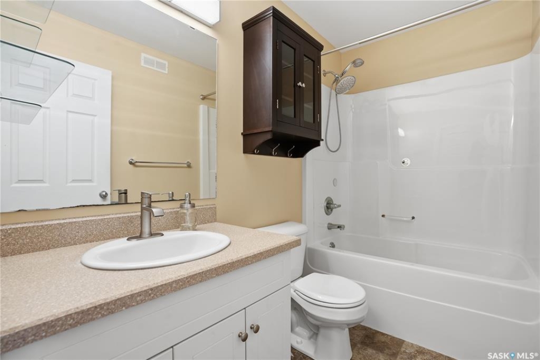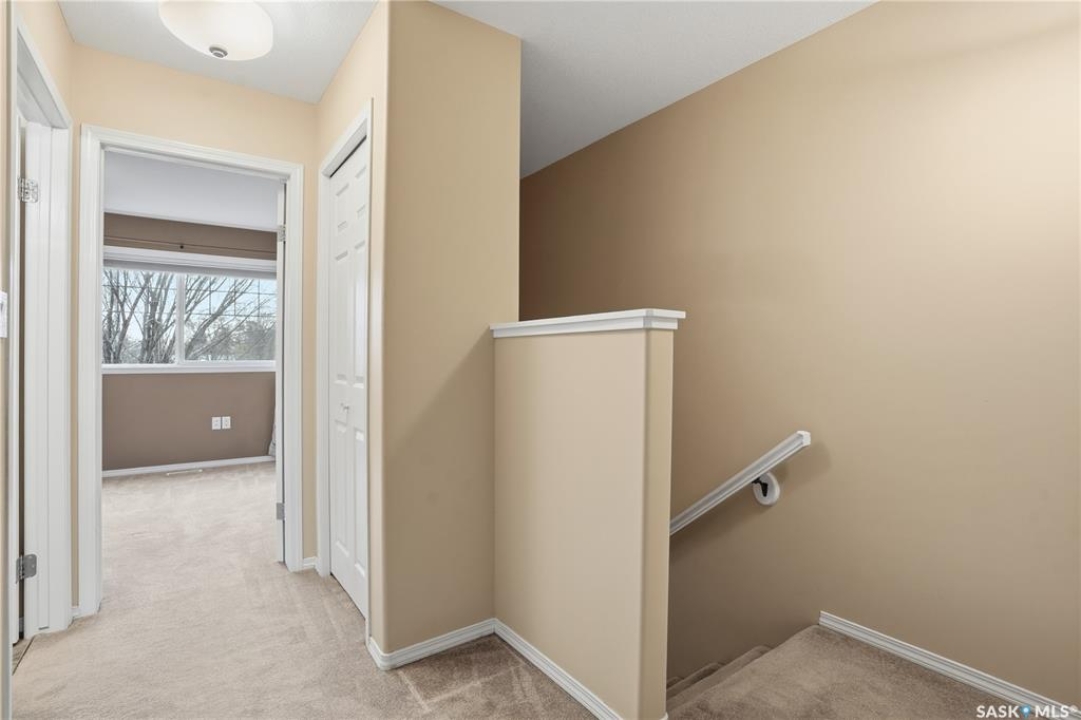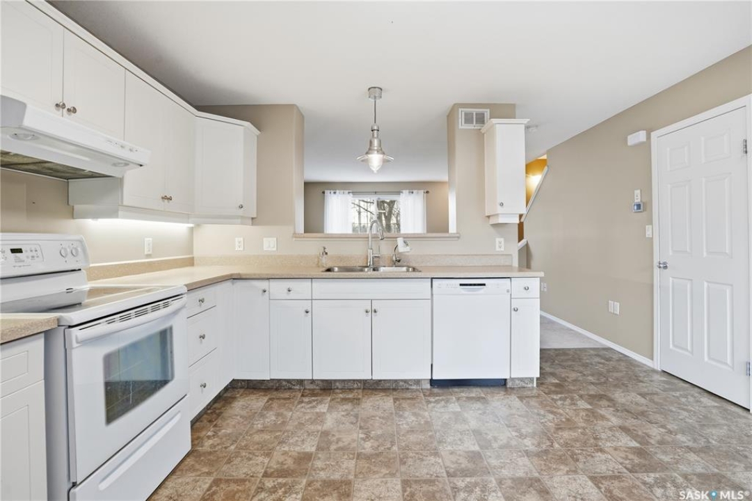 Welcome to this well-maintained 1,062 sq ft two-storey townhouse condo located in Regina's General Hospital neighbourhood. This home offers 3 bedrooms, 2 bathrooms, and a fully developed basement, making it a fantastic option for first-time buyers, young families, or anyone seeking convenient, low-maintenance living close to downtown. The main floor features a spacious living room just off the front entrance, complete with an electric fireplace for added warmth and ambiance. At the back of the home, you'll find an inviting eat-in kitchen with bright white cabinetry, a rare oversized pantry, and patio doors that lead to your private backyard space. Upstairs offers three comfortable bedrooms and a well-appointed 4-piece bathroom. The recently updated basement provides a generous additional living area finished with wide-plank white oak vinyl flooring. A large 3-piece bathroom/laundry room, offers extra cabinetry, excellent counter space—perfect for folding and organizing and a deep laundry sink, adding convenience and functionality. Parking is a breeze with a dedicated stall located directly in front of the unit, plus the option to rent a second stall directly behind. A clean, move-in ready condo with thoughtful upgrades in a central location—this is one you won't want to miss!