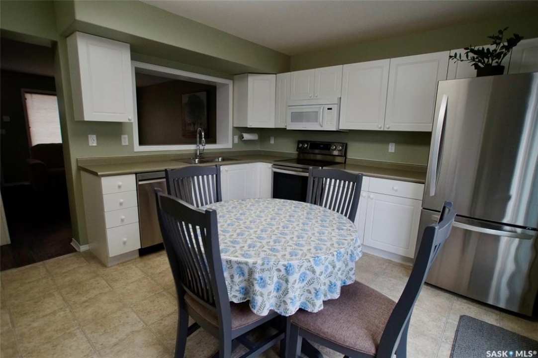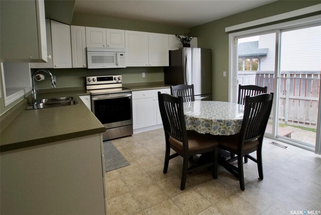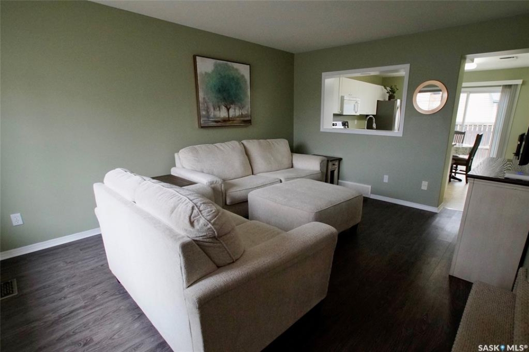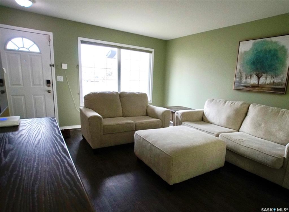 Welcome to 131 – 103 Rutherford Crescent. This fully developed townhouse sits in a great spot within Sutherland, offering quick access to the University of Saskatchewan, bus routes, elementary schools, a small park, 115th Street and Preston crossing. It's an easy place to settle into, especially if you're looking for a comfortable home with a private outdoor space. The main floor has a bright living room and a spacious kitchen/dining area that looks out to the fenced backyard—perfect if you have a pet or just want a bit of privacy. The former 2-piece bathroom on this level has been converted into a handy walk-in pantry, but all the plumbing is roughed in if you'd prefer to convert it back to a bathroom. Upstairs, you'll find two good-sized bedrooms with great closet space and a full 4-piece bathroom. The basement is fully finished as well, offering a cozy family room, a 3-piece bathroom, and a separate laundry/storage area. Other features include central air conditioning, two electrified surface parking stalls, and a yard with no immediate neighbour behind. The seller has also confirmed that the furnace is under warranty until 2034 and the water heater until 2028, and both can be reassigned to the new owner. This is a well-kept home in a convenient location, ideal for students, first-time buyers, or anyone wanting low-maintenance living close to the U of S.