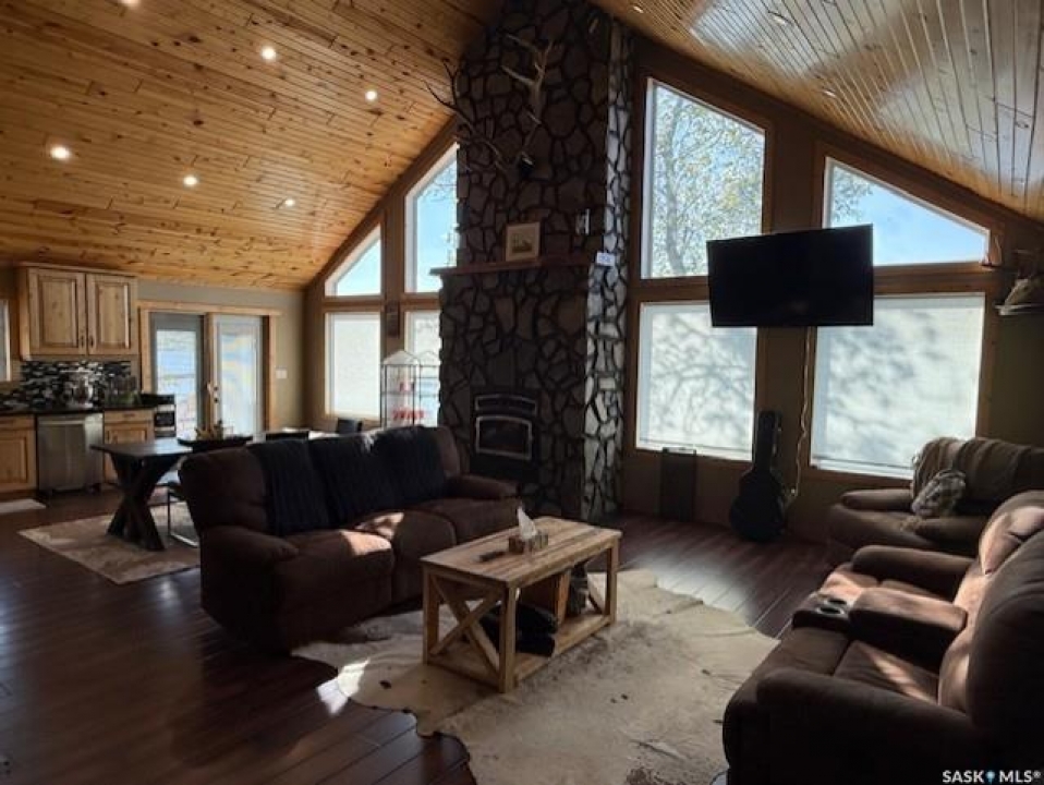 Welcome to 152 Criddle Avenue at Crooked Lake—your year-round lakefront getaway that blends easy comfort with a sense of adventure. Built in 2016, this 1,920 sq ft home features 4 bedrooms and 3 bathrooms, all set within an open-concept design with vaulted ceilings and expansive lake views that create a stunning backdrop for unforgettable sunsets. The wood-burning fireplace anchors the main living area, creating that cozy, “settle in and stay awhile” feeling, whether you're hosting friends or easing into a quiet morning by the water. Step outside and you'll find more than 500 sq ft of deck space, a lower patio, and a firepit area—plenty of room for weekend barbecues, evening stargazing, or simply soaking in the scenery. And if you love spending time outdoors, this is the spot. Summer brings boating and water sports right from your doorstep, while winter offers ice fishing, snowmobiling, and crisp lakeside walks. Storage is a dream here. The 960 sq ft attached garage—with over 15-foot ceilings, in-floor heat plumbing, and full drywall/PVC lining—handles the big items with ease. Plus, there's an additional 1,260 sq ft of finished storage space for all your lake gear and toys. The home is built on an ICF foundation for comfort and efficiency throughout every season, and even the family pet has their own dog run. A private well and septic system make year-round living simple, and you're just a short walk from a seasonal store, gas, a playground, and pickleball courts. Whether you're looking for a laid-back family retreat or a home base for outdoor living and entertaining, this lakefront property is ready when you are.