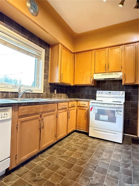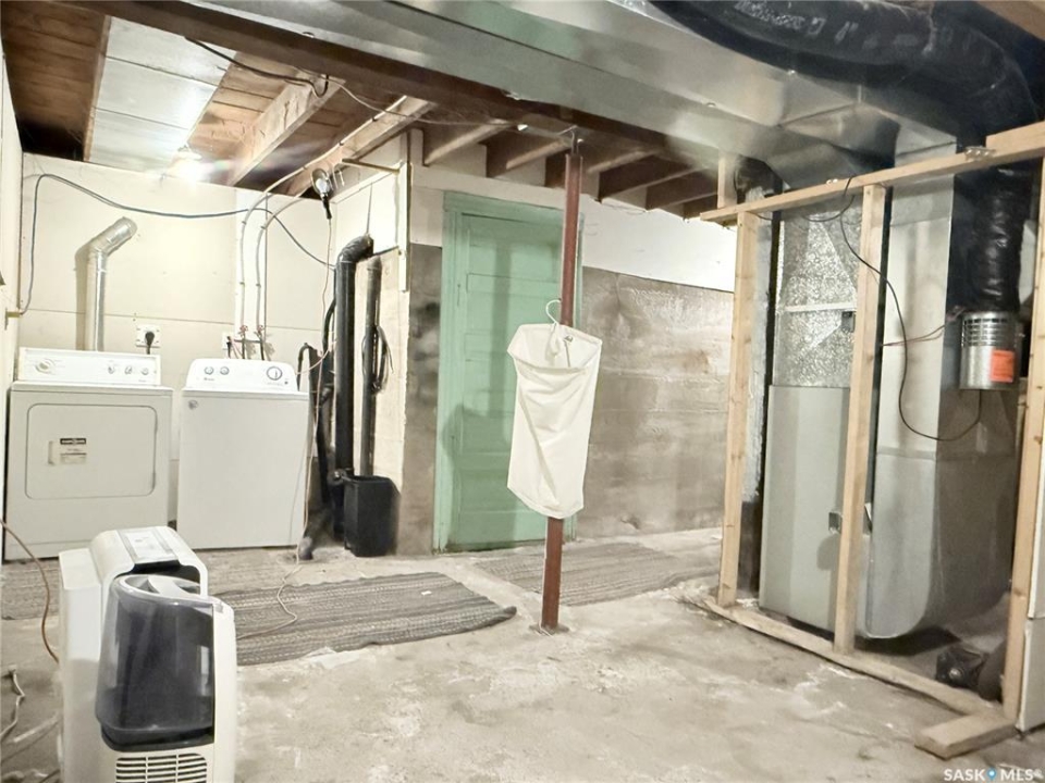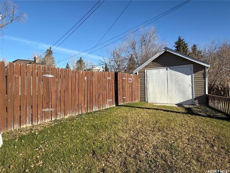 Welcome to 337 4th Ave East in Melville, SK—a 1912 charmer that still knows how to make an entrance. From the moment you step onto the incredible covered verandah, the character of this home starts telling its story. Inside, you'll find high ceilings and a spacious dining room with a built-in corner display that adds a lovely touch of old-world charm. The living room and both bedrooms offer comfortable space to unwind, and the kitchen features classic oak cabinets along with a fridge, stove, and built-in dishwasher. The 5-piece bathroom feels surprisingly roomy with its double vanity, linen closet, and a jacuzzi tub that's ready for a relaxing soak at the end of the day. The partially finished basement provides extra storage space, along with laundry hookups—washer and dryer included. There's also a handy side entry porch that's heated with electric baseboard, giving you a great spot for a freezer or extra pantry storage. The 100-amp panel is conveniently located here as well. Outside, the fenced yard offers privacy, plus a 12 x 18 storage building for whatever you need to tuck away. The concrete driveway and sidewalk were completed in 2023, along with updated eavestroughing, central air conditioning, and new siding and shingles on the storage garage—all thoughtful touches that keep the home feeling cared for. If you've been looking for charm, comfort, and a place that simply feels right, this one is well worth a look. The price is right, and the character speaks for itself.