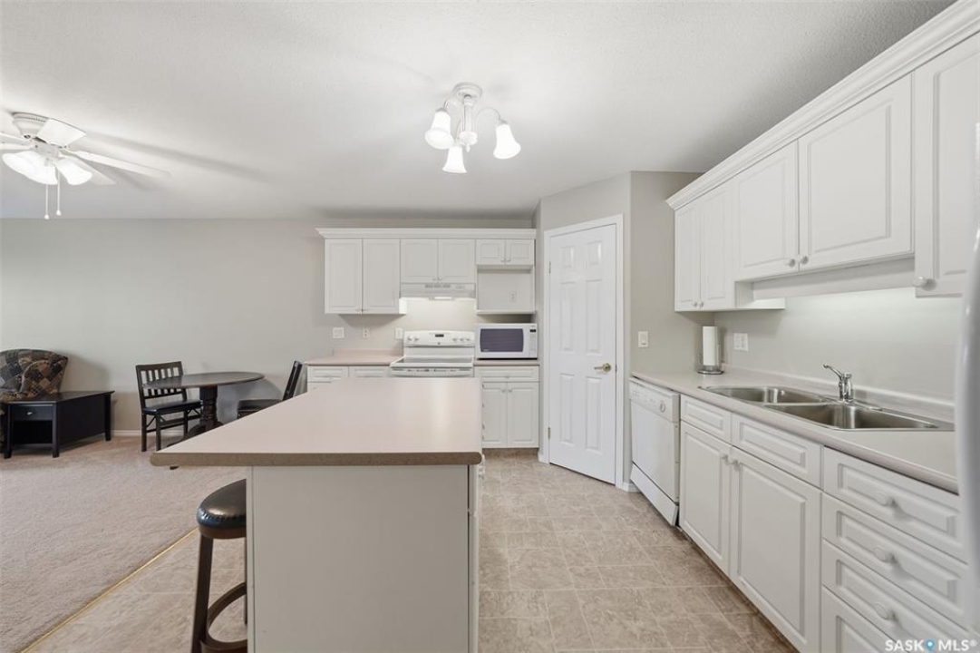 Great opportunity for condo living! Well self managed building with under ground parking and elevator. This condo unit has been freshly painted and is move in ready! The one bedroom has a 3 piece en suite bathroom. And there is another full 4 piece bathroom and a den as well. This unit is open concept living and has in suite laundry. Enjoy coffee in the morning on the spacious balcony. There is one underground parking spot with storage at the spot. In the parkade is also a wash bay and a wood working shop for the handy person! This condo has been freshly painted and is ready to move in.
