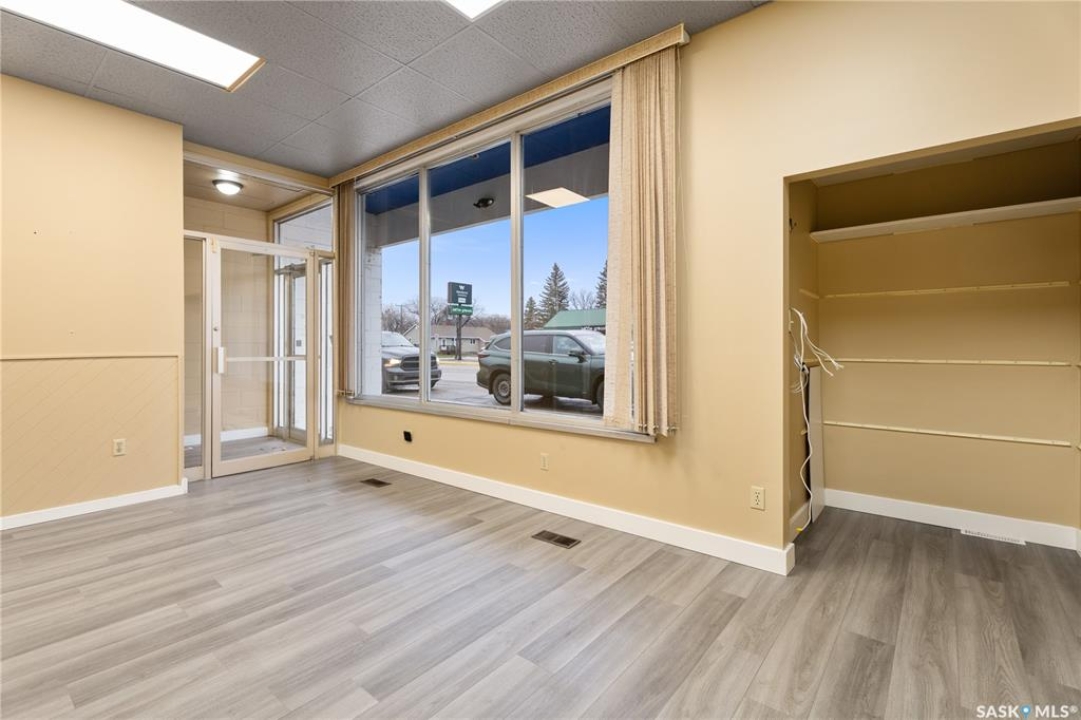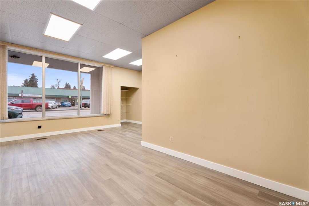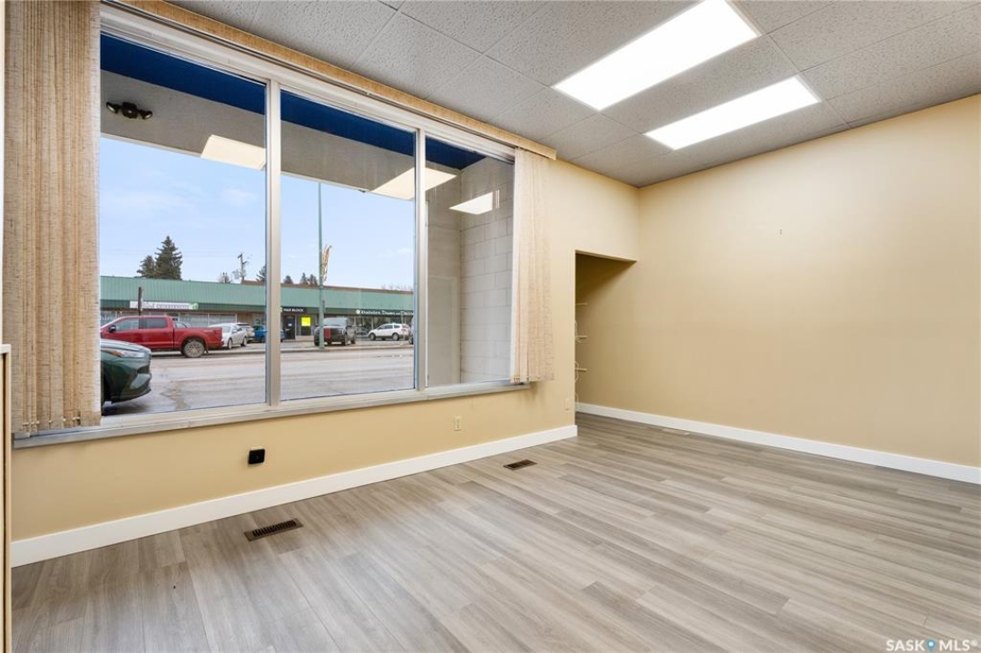 960 sqft of office space for lease in Melfort. Great setup for a business with great frontage on a busy street. Lots of traffic and close to downtown Melfort. Building has had lots of upgrades including new roof, newer furnace and A/C along with floor a few years ago. It's vacant and ready for immediate possession. Call for a viewing.