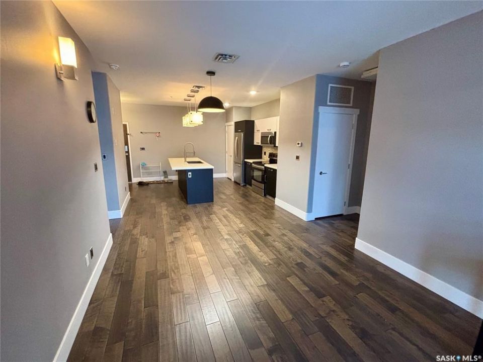 TriBeCa in one of Saskatoon's most desirable and vibrant areas. This amazing building really draws attention when you see it. Great proximity to U of S, Broadway and Downtown. Featuring engineered hardwood floors in living and dining area, heated tile floors in bathrooms, individual furnace, central air, stainless steel appliances, quartz counter tops, large balcony with glass railings, N/G bbq hook up and heated underground parking. 2 bedroom with access to balcony from primary bedroom, large en suite with two closets.