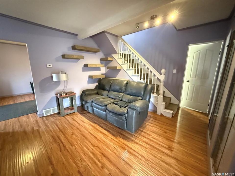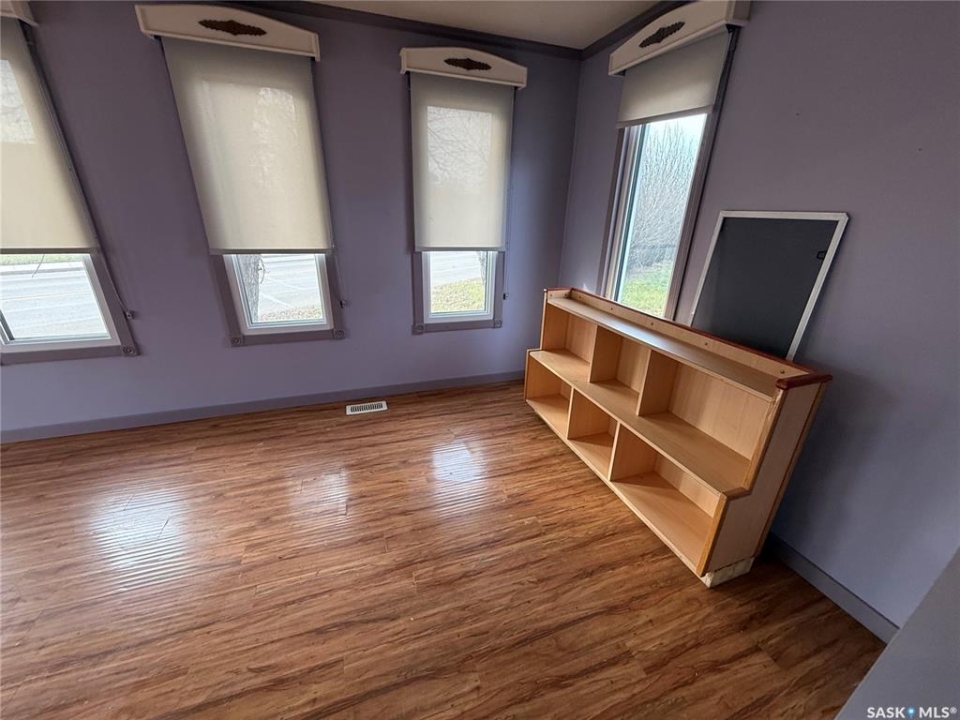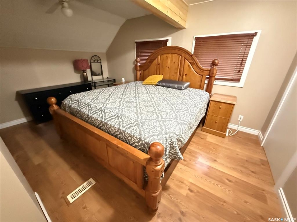 Super charming one and a half storey home in Estevan with a large fenced in deck and patio area perfect for summer enjoyment and entertainment. This home has a bright open kitchen and dining area that leads into a spacious laundry room with tons of room for additional storage. The living room is open to the four season sunroom which allows for extra space for the kids to play with direct access to the fenced in out door living space. The four piece bathroom completes the main. Upstairs there are two large bedrooms. The 32'x14 workshop is perfect for the handyman or hobbyist.