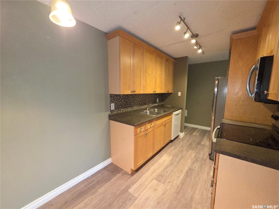 Modern, updated 2nd floor condo in a prime Saskatoon location! Discover comfort and convenience in this updated & well maintained 3 bedroom, 1 bathroom condo, boasting 915 square feet of bright and functional living space. Perfectly suited for first-time buyers, families, or investors, this unit is located in a sought-after area close to amenities, golf course, schools, and public transit. The open-concept living and dining area is perfect for entertaining, with large windows that let in plenty of natural light. Recently upgraded flooring, fixtures, and new windows! This building is a professionally managed condominium complex with secure access, one is exclusive parking stall (additional parking stalls available for rent), and tons of visitor parking available. Pets are allowed with restrictions and approval. This condo offers easy access to grocery stores, restaurants, parks, and recreation centers. Proximity to the University of Saskatchewan and downtown makes this location highly desirable. Don't miss this opportunity to own a stylish and affordable home in Wildwood! Call your Realtor today for a private viewing.