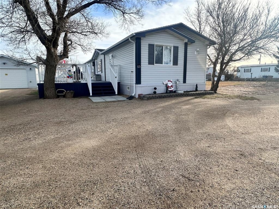 Located on the quiet east edge of the Town of Assiniboia, this beautifully maintained property is truly move-in ready. The home emphasizes open-concept living, featuring abundant natural light from large windows. The kitchen is fully equipped with an island, pantry, updated cabinetry, and upgraded stainless steel appliances. The desirable split-bedroom floor plan includes a luxurious master suite complete with a 4-piece ensuite bath (featuring a Jacuzzi tub) and a huge walk-in closet, while two additional bedrooms and a second 4-piece bath are situated on the opposite end—one of which also has a walk-in closet. Step outside to enjoy the extremely large deck, which measures approximately 32 feet long and is divided into an two areas one approx. 16x16 ft and another of approx. 16x10 ft, all while overlooking an unbroken prairie view. The deck also features convenient under-deck storage. For the hobbyist or car enthusiast, double detached garage (approx. 20 x 30 ft) is fully insulated, heated, and provides exceptional space, truly serving as the ultimate "Man Cave." Property bonuses include 2 storage sheds, RV parking with a 30-amp hookup, and a generator plug for back-up convenience. Home has insulated deck skirting and a thermal barrier underbelly.