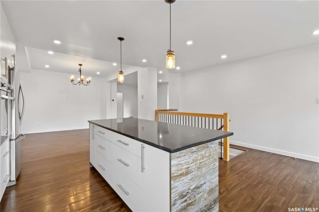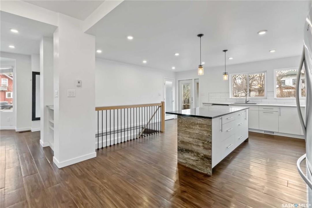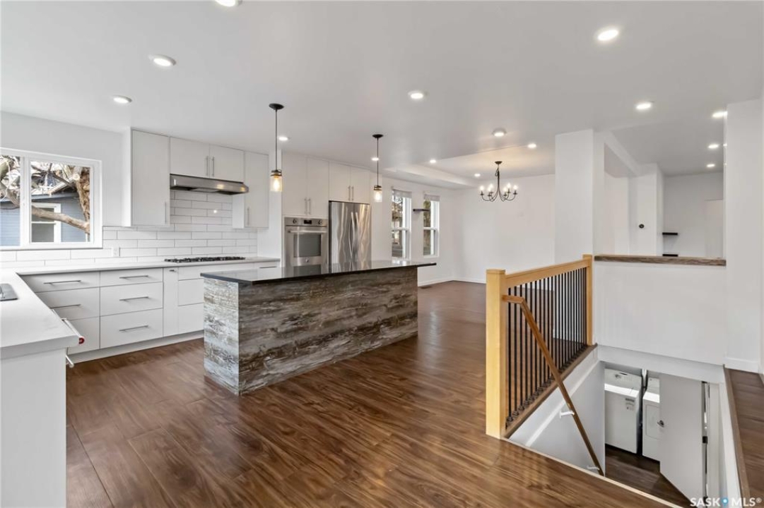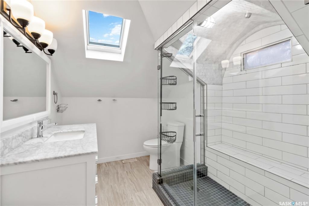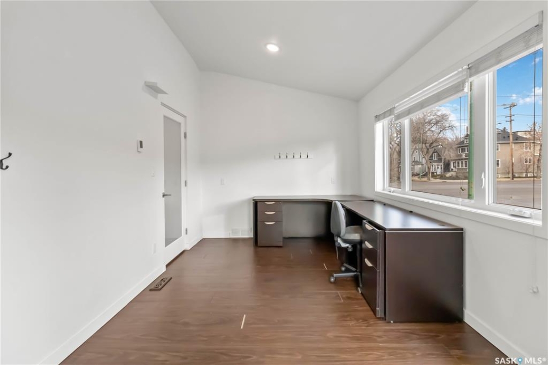 Located in Buena Vista, 438 8th Street East delivers updated, flexible living space designed for families, home-based professionals, or buyers seeking multi-use functionality. This property stands out with a rare combination of a non-conforming studio suite, a dedicated street-facing office with its own exterior entry, and a private primary retreat on the upper level. The main floor offers an open layout connecting the living room, dining room, and kitchen, creating a practical flow for day-to-day living. The kitchen windows bring in excellent natural light across the space. Off the main hallway are two well-sized bedrooms, a guest � bath, and a full 4-pc bathroom — providing privacy and convenience for family and guests. The front office space is ideal for anyone running a business from home, offering visibility, privacy, and direct client access without interrupting the household. Upstairs, the primary suite serves as a private retreat with a beautifully finished ensuite featuring a one-of-a-kind steam shower. Directly off the primary bedroom is a 25' x 16' rooftop balcony overlooking the yard and Eastlake Avenue — a quiet outdoor extension of the suite. The layout also supports the option for upper-level laundry. The basement adds further versatility with a non-conforming studio suite featuring a kitchenette, a 3-pc bath, and an open space that makes for a great studio setup. The basement laundry is located just before the suite entry at the bottom of the stairs. Set on a mature corner lot, the backyard offers ample room for kids, pets, gardening, and evenings around the firepit. With four bedrooms, modern updates, multiple access points, and outstanding work-from-home or rental potential, this property delivers strong long-term value in a highly desirable neighbourhood close to Broadway, schools, parks, and amenities. Book your showing today!