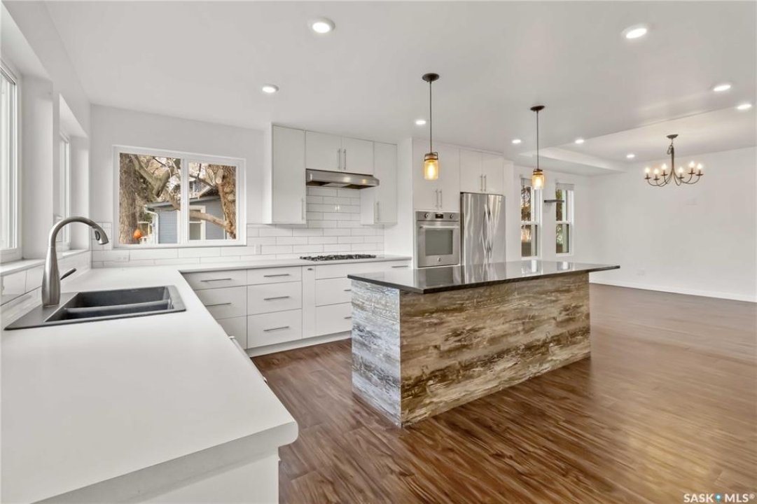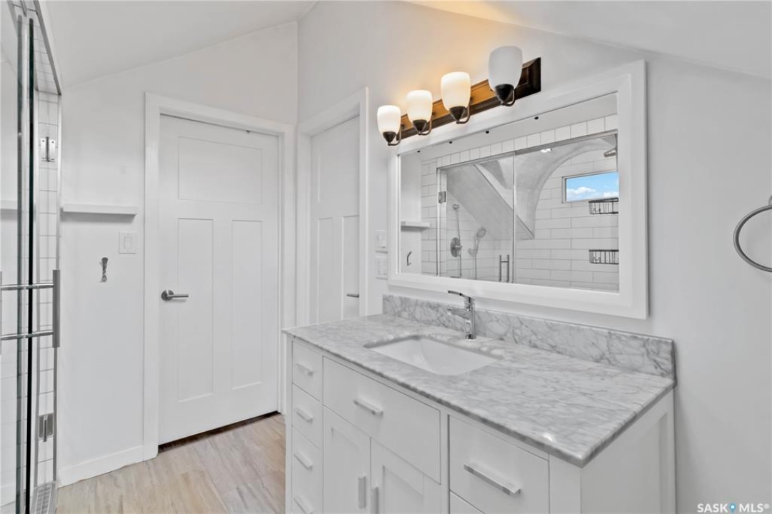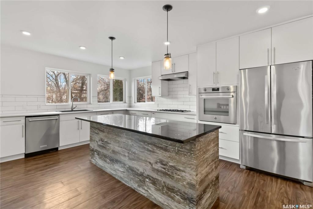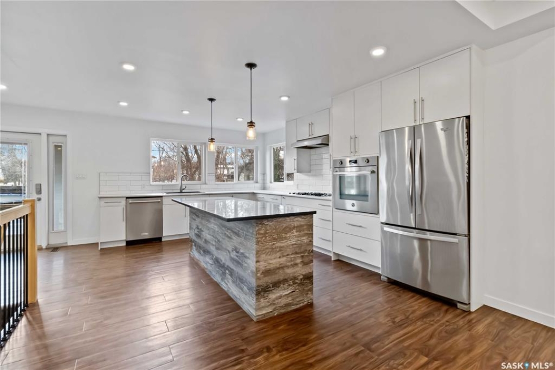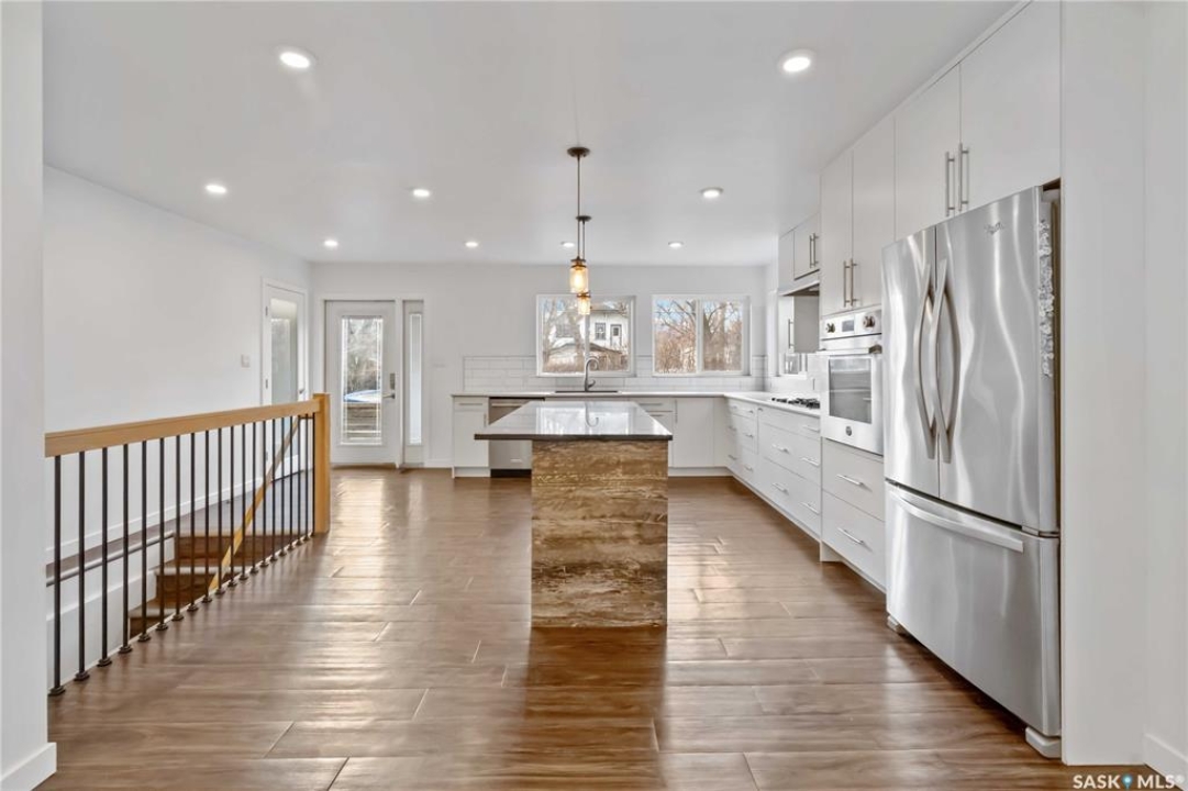 Located in Buena Vista, 438 8th Street East delivers updated, flexible living space designed for families, home-based professionals, or buyers seeking multi-use functionality. This property stands out with a rare combination of a non-conforming studio suite, a dedicated street-facing office with its own exterior entry, and a private primary retreat on the upper level. The main floor offers an open layout connecting the living room, dining room, and kitchen, creating a practical flow for day-to-day living. The kitchen windows bring in excellent natural light across the space. Off the main hallway are two well-sized bedrooms, a guest � bath, and a full 4-pc bathroom — providing privacy and convenience for family and guests. The front office space is ideal for anyone running a business from home, offering visibility, privacy, and direct client access without interrupting the household. Upstairs, the primary suite serves as a private retreat with a beautifully finished ensuite featuring a one-of-a-kind steam shower. Directly off the primary bedroom is a 25' x 16' rooftop balcony overlooking the yard and Eastlake Avenue — a quiet outdoor extension of the suite. The layout also supports the option for upper-level laundry. The basement adds further versatility with a non-conforming studio suite featuring a kitchenette, a 3-pc bath, and an open space that makes for a great studio setup. The basement laundry is located just before the suite entry at the bottom of the stairs. Set on a mature corner lot, the backyard offers ample room for kids, pets, gardening, and evenings around the firepit. With four bedrooms, modern updates, multiple access points, and outstanding work-from-home or rental potential, this property delivers strong long-term value in a highly desirable neighbourhood close to Broadway, schools, parks, and amenities. Book your showing today!