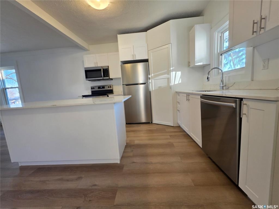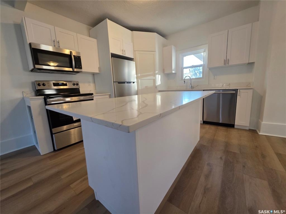 This refreshed 1 �-storey charmer feels like it finally figured out who it wants to be. The main floor has been completely reconfigured into a smarter, more intuitive layout, giving you a bright dining area that connects seamlessly to a pristine, never-been-used kitchen—yes, the premium quartz countertops are still waiting for their first crumb. With a large island for gathering, four brand-new appliances ready to impress, and a corner pantry that actually holds more than you think, this kitchen is equal parts showpiece and workhorse. Natural light pours through the PVC windows, bouncing crisp sunshine across every freshly painted wall, reminding you that the entire home—inside and out—just had its glow-up. The enclosed front veranda adds a charming three-season room that's perfect for morning coffee, evening chats, or storing the kids' gear without cluttering the house. Meanwhile, the back entry pulls double duty with a convenient main-floor laundry setup that saves steps and sanity. Three comfortable bedrooms and a clean, modern 4-piece bathroom with a separate tub and new shower are tucked upstairs, where the day winds down with a little more calm. From top to bottom, this place blends character with thoughtful updates, creating a home that feels new without losing its soul. If you want a feel of old with the smell of new, then rush to see this beauty.