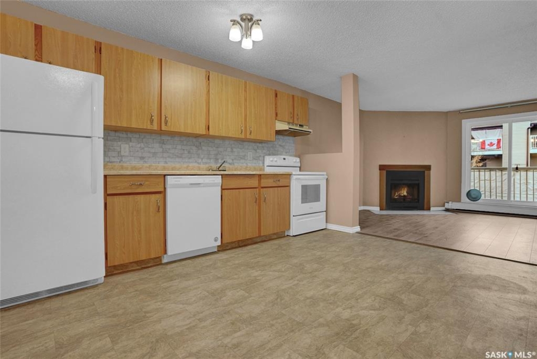 Located in the prime area of Sunningdale, this 1 Bedroom apartment style condo offers convenience and comfort. Situated close to a park, walking path, and shopping amenities, this secure building is also conveniently positioned along a bus route for easy transportation access! This beautifully maintained 1 bedroom condo is ready to be your new home. Perfectly suited for first-time buyers, students, or anyone seeking a cozy and convenient living. Upon entering, you'll be greeted the foyer w/a thoughtfully placed coat closet which offers ample storage for your outerwear. The Living, Dining and Kitchen are set in an open concept design. The good-sized Living area has a decorative fireplace (capped off). The Kitchen and Dining areas not only offer great storage in the cabinetry & pantry but good food prep space. Step through the patio doors onto your private deck, which overlooks the serene courtyard—a perfect spot for relaxation or entertaining guests. The Bedroom is a great size and the updated 3pc Bath has a walk-in shower. This low-maintenance outdoor space is sure to impress. Enjoy hassle-free living with heat, water, sewer, garbage, common insurance, lawncare, snow removal, exterior building maintenance, and contribution to the reserve fund all included. Not only is there an electrified parking spot for you but there is a common amenities room and even a sauna. Don't miss this opportunity to call Discovery Place Condo Complex your next home. Call to have a personal viewing today. (Note some of the photos have been virtually staged for presentation and to show space). CLICK ON MULTI MEDIA LINK FOR A FULL VISUAL TOUR. (Note Living, Dining area and Bedroom are virtually staged).