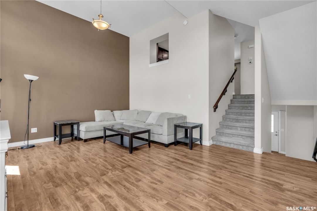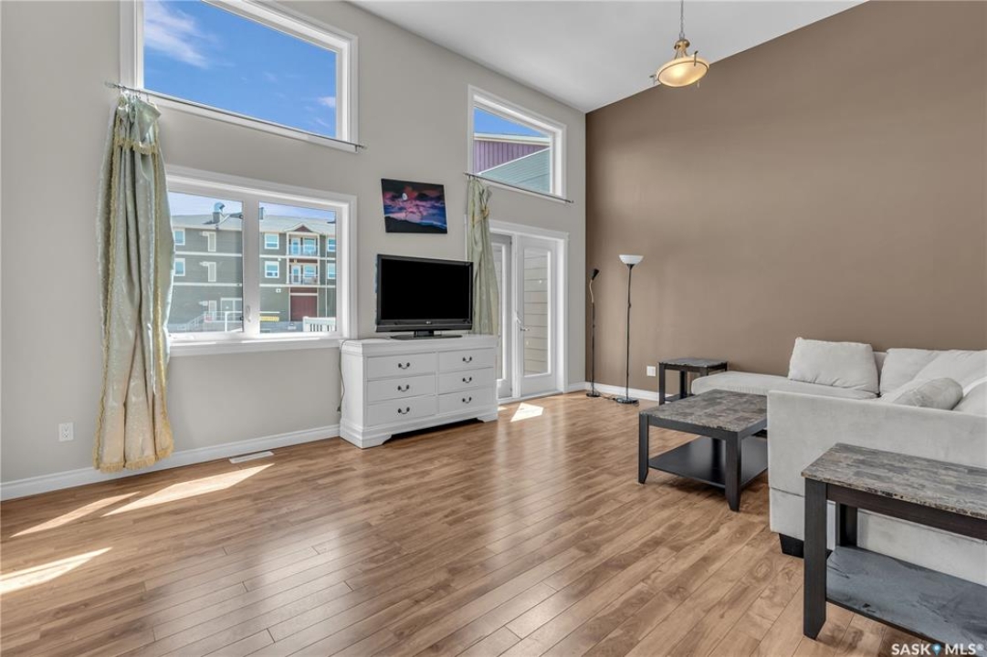 A Beautiful high-end townhouse for sale in sought-after Stonebridge! This stunning property offers 3 bedrooms, 4 bathrooms, and 1,467 sqft of fully developed living space, this well-maintained home is move-in ready and perfect for families or professionals. From the moment you enter the spacious front foyer, you'll be impressed by the thoughtful layout and natural light. The main level features a stunning, sunlit living room with soaring 12'6" ceilings, large windows, and patio doors that open to your private balcony—an ideal spot to entertain or enjoy your morning coffee while watching the sunrise. The second level showcases a stylish kitchen and dining area, complete with rich espresso cabinetry, stainless steel appliances, a tile backsplash, and a convenient 2-piece powder room for guests. Upstairs on the third level, you'll find all three bedrooms, including a generous primary suite with a walk-in closet and a 4-piece en-suite. An additional 4-piece bathroom completes this level. In the basement level, you will a family room with another 4-piece bathroom for your additional living space. The utility room and a storage room also locate on this level. Don't miss the video tour on YouTube, and contact your local Saskatoon REALTOR � today to schedule a private showing!