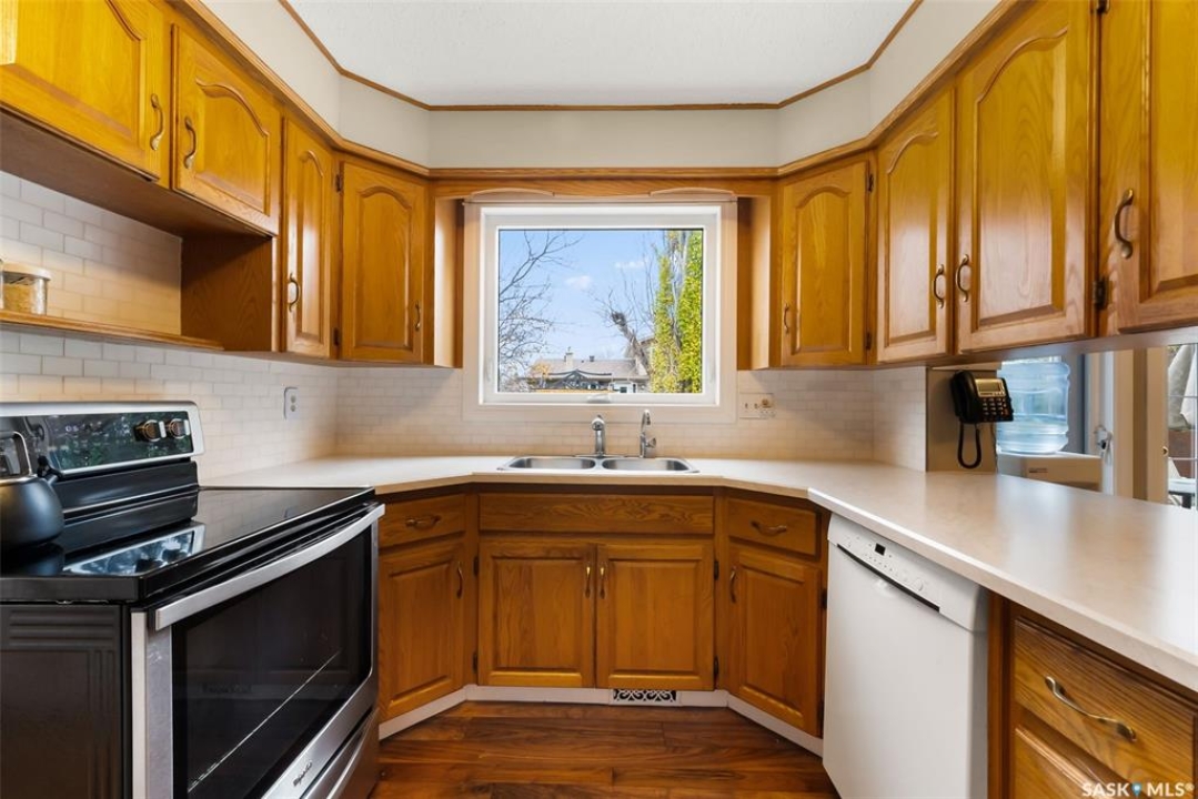 Fantastic executive 2 story home in Regina's desirable Albert Park area!! This home is lovely and spacious and has been loved by its owners for many years. A perfect home to raise a family! Once you enter the home, you are immediately aware of the great living room spacious that is flooded with natural light from its south facing window. The separate formal dining area is a great space that provides a built in china cabinet for fine dishes and trinkets. As you enter the kitchen area, you will be impressed with the eating nook and the huge family room area that boasts a wood burning fireplace and built in shelving. This space flows perfectly for those who have young children and want to keep an eye out while working in the kitchen. The main floor laundry area is located at the side door and could double as a mud room. The 1/2 bathroom completes this level. Upstairs you find 4 good sized bedroom. The primary bedroom has an updated 4 piece bathroom with double sinks. The his and her closets will serve all of your storage needs. The main bathroom completes the 2nd level of the home. Down stairs to the basement area and you will find a developed basement with two separate family room areas. There is another bedroom (window may not meet egress) and a lot of storage areas including under stairs storage. The backyard is lovely and has a great deck and patio area for entertaining. The yard is completely fenced and there area quite a few perennials by the sides of the fence. Many upgrades over the years including Shingles in 2011, central air conditioner 2023, Both furnaces have been replaced, Newer windows throughout the first and second floor excluding the dining room window. This is a great home, close to A.E. Perry school and all south end amenities. A must see!!