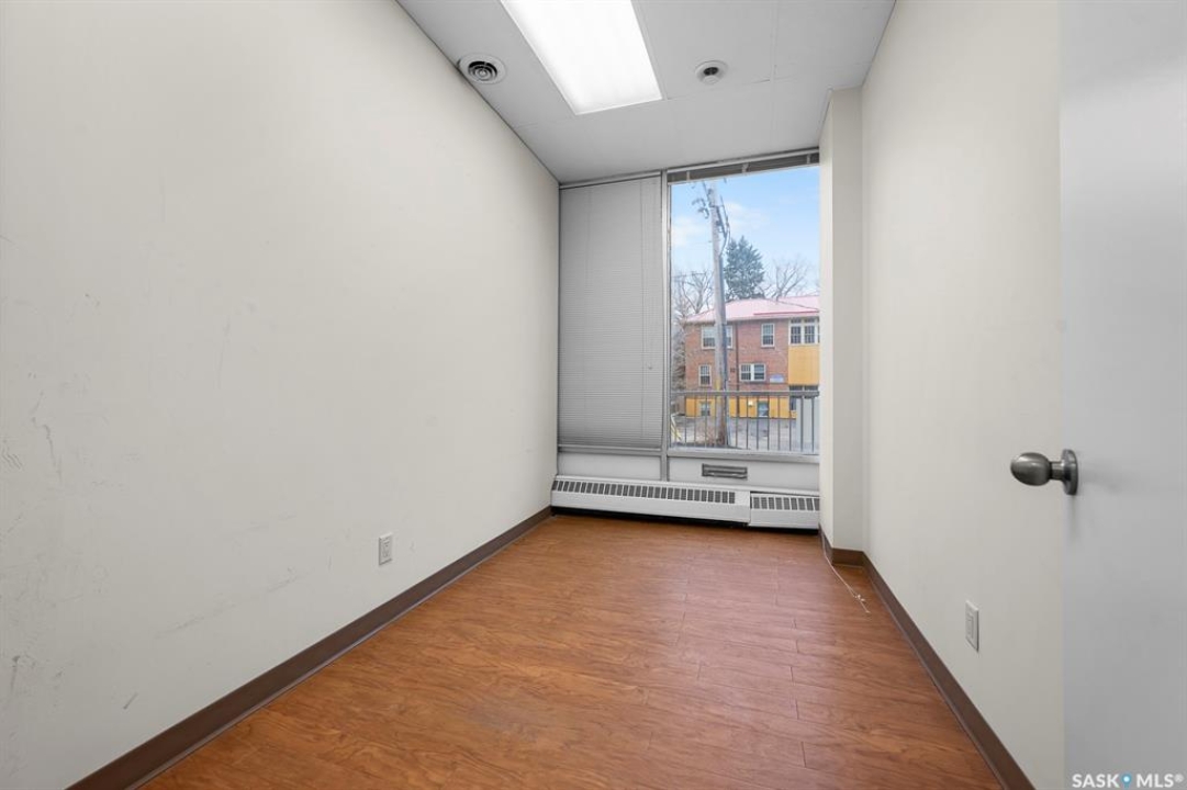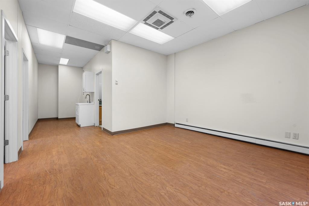 Located in the prestigious Canadiana Building on 23rd Block Broad, this approximately 765 sqft turnkey office is available immediately and perfect for entry to mid-size businesses seeking a professional workspace close to downtown and Wascana Park. Asking price of $2,000 per month includes all operating costs and utilities. The space features a reception area, a large open space suitable for a boardroom or meetings, two private offices, and a sink with a small kitchen area, providing a move-in ready environment in a prime location. There are two parking stalls included.