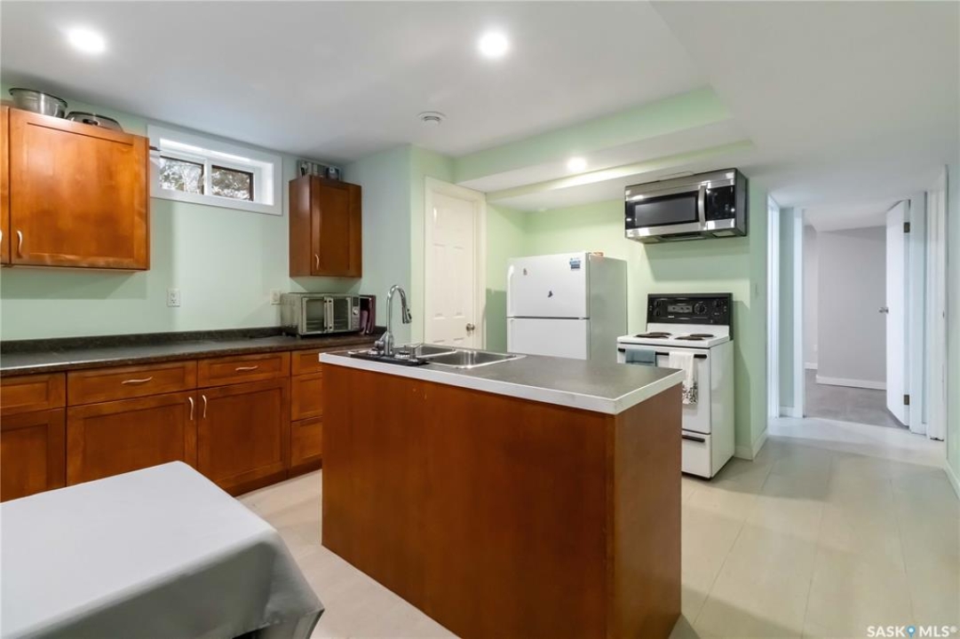 Welcome to 802 Avenue V North, a solid 1,382sqft bungalow nestled in the heart of Mount Royal, where comfort meets convenience. This lovely home is perfectly situated on an expansive 10,074sqft corner lot, just a stone's throw from Mount Royal Park. This neighborhood offers a tranquil setting while being mere minutes away from the amenities of 33rd and 22nd Streets, making it an ideal location for families and professionals alike. Step inside and be welcomed by a spacious living room awash with natural light, thanks to large windows that frame the outside views beautifully. The well-appointed kitchen, though dated, boasts ample cabinetry and an island with a built-in cooktop, perfect for crafting your culinary delights. The dining area seamlessly connects to a fabulous deck, where you can enjoy morning coffee or evening gatherings overlooking a fully landscaped backyard complete with a patio, a generous lawn space, and a charming stone fire pit—your own private oasis for relaxation and entertainment. The main floor features a total of three bedrooms and three bathrooms, perfect for growing families. Recent upgrades, such as newer flooring throughout some of the main level, add a fresh touch, making it move-in ready. Main floor laundry adds to the home's practicality, ensuring daily chores are a breeze. The surprises continue in the basement, where a beautifully renovated two bedroom suite awaits, complete with a separate entrance and its own laundry facilities, offering endless possibilities—whether it's a rental opportunity or a private space for guests. With a double attached garage providing direct entry, you'll appreciate the ease of access all year round, especially during those harsh winter months. Recent mechanical upgrades, including a high-efficiency furnace and on-demand water heater, ensure comfort and efficiency. Don't miss your chance to make this great bungalow your own, come and check out 802 Avenue V North!