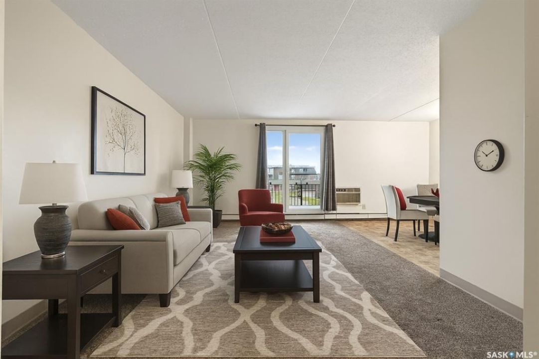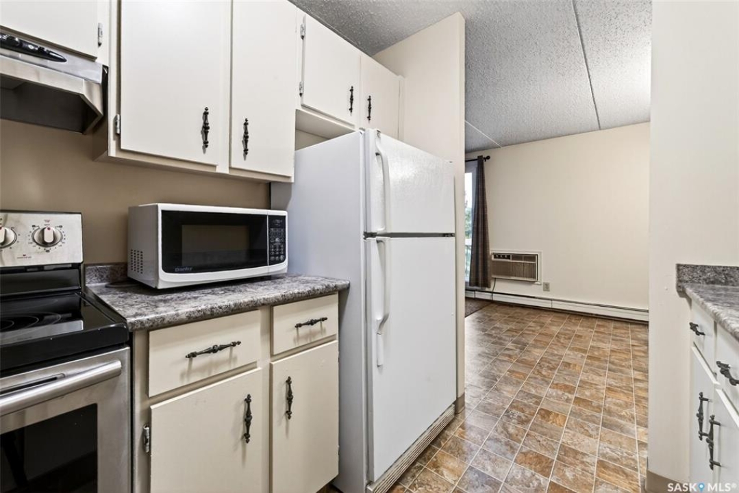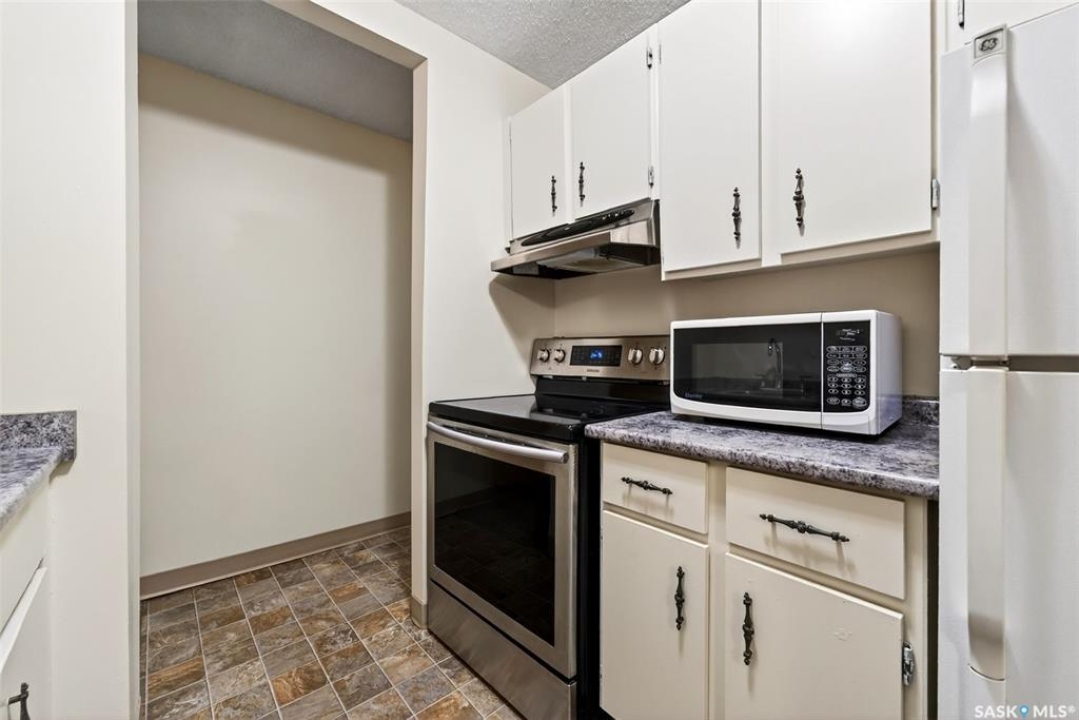 Welcome to Unit 32 at 27 Centennial Street, ideally located in Hillsdale - just steps from the University of Regina and SIAST. This well-maintained two-bedroom condo has been freshly painted and features neutral flooring throughout. The bright living room offers plenty of natural light, high-end carpet, and a European door leading to a private balcony overlooking the courtyard. The functional galley-style kitchen comes equipped with a fridge, stove, and microwave. The master bedroom is a generous size, and both bedrooms feature newer closet doors. A spacious in-suite storage room adds valuable convenience. Laundry facilities are located on the third floor, adding ease and accessibility for future condo owner. This upgraded unit is close to all south-end amenities, public transit, and local restaurants - perfect for students, investors, or first-time buyers. Condo fees include: heat, water, snow removal, common insurance, and reserve fund contributions. Parking: One electrified parking stall included. A great opportunity in a prime location!