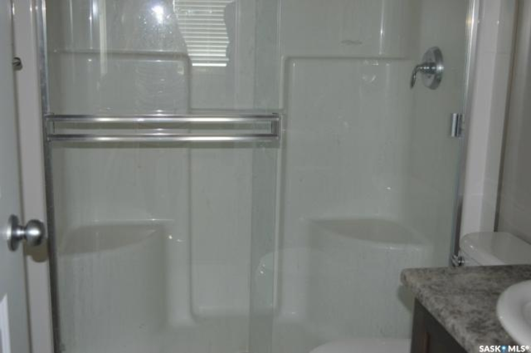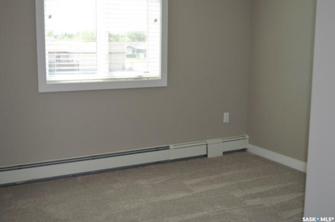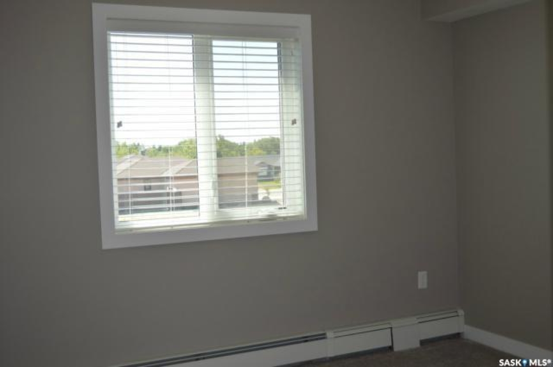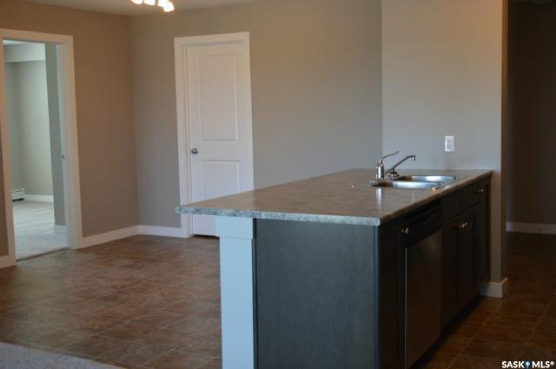 907 sq.ft. corner unit faces South/East in one of the newest Condominium buildings in Estevan. This unit is open concept featuring Linoleum flooring throughout the entrance, kitchen, dining room and grey carpet in the living room. Spacious master bedroom with large windows to let in natural light, walk in closet and 3 pc bathroom with a walk in shower. There is a large spare bedroom and full bathroom and laundry. Off the living room is a nice sized balcony to sit out on. One underground parking is included. Call to view!!