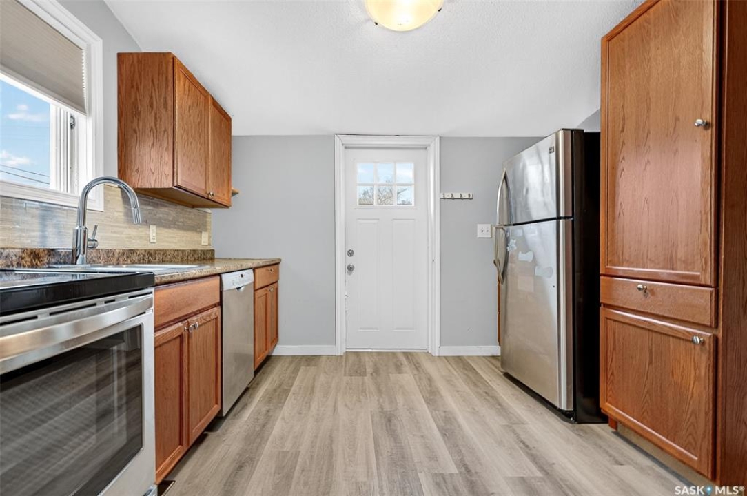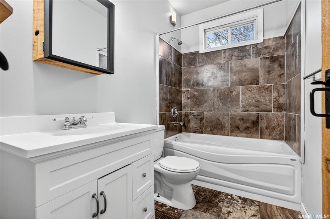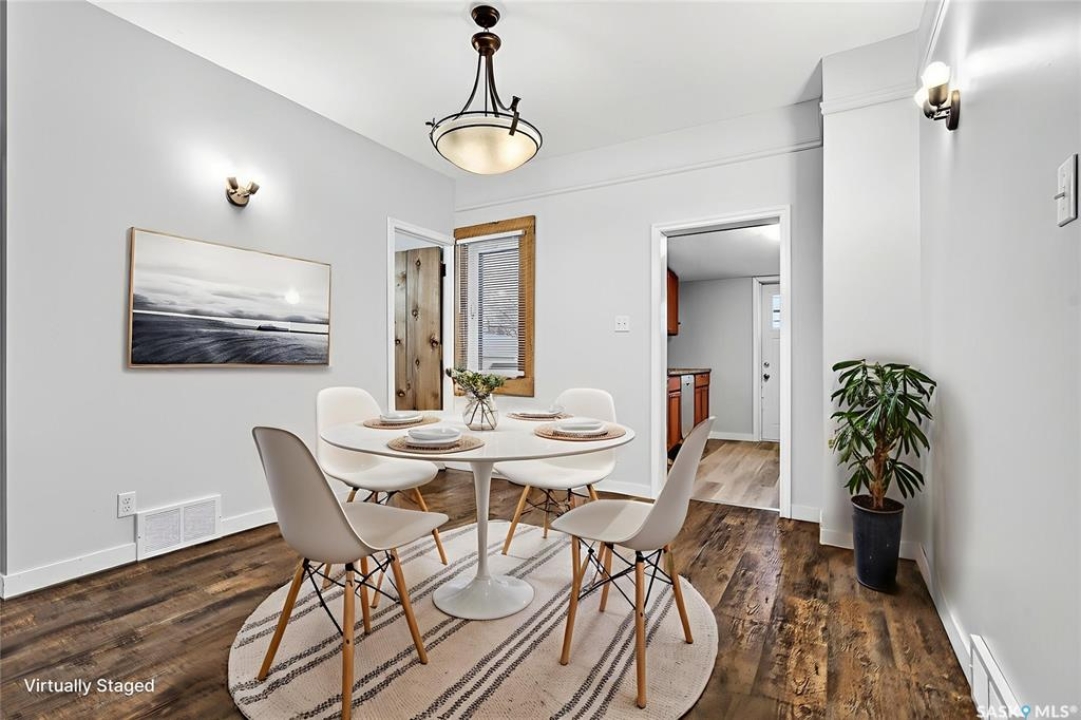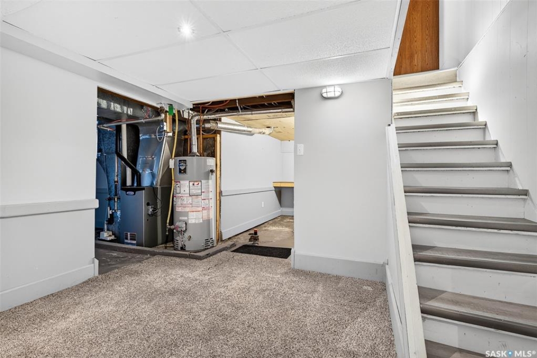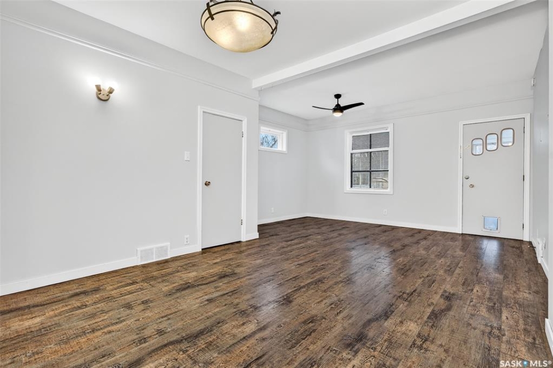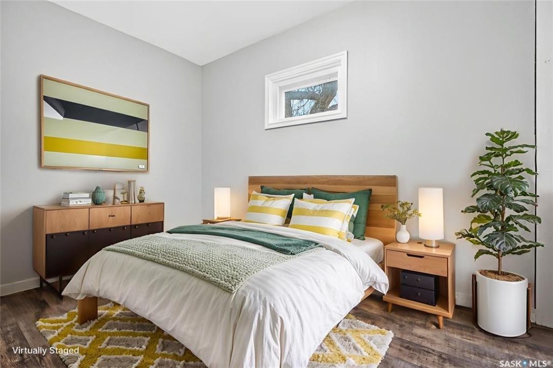 Check out this excellent home! Perfect starter home! This 2 bed / 2 bath home has lots of updates and a large double garage! Sitting on a large 50' x 125' lot this home shows well as you arrive. Heading inside you are greeted by a timeless sunroom - the perfect spot for your morning coffee. Next we find the living and dining space boasting 9 foot ceilings! Heading back we find a galley style kitchen with a stainless steel appliance package - off the kitchen we find a deck with access to your patio and firepit. Back inside on the main floor we find one of our bedrooms complete with a walk-in closet and main floor laundry. Finishing off the main floor we find an updated 4 piece bathroom. Downstairs we have a small office space, a spacious bedroom, 2 piece bathroom and a large workshop space. Outside there is a detached 22' x 24' garage that has power, is insulated and is setup for a fireplace for heat. So many updates have been done to this home! Pride of ownership shows well! Quick possession is available! Reach out today to book your showing!
