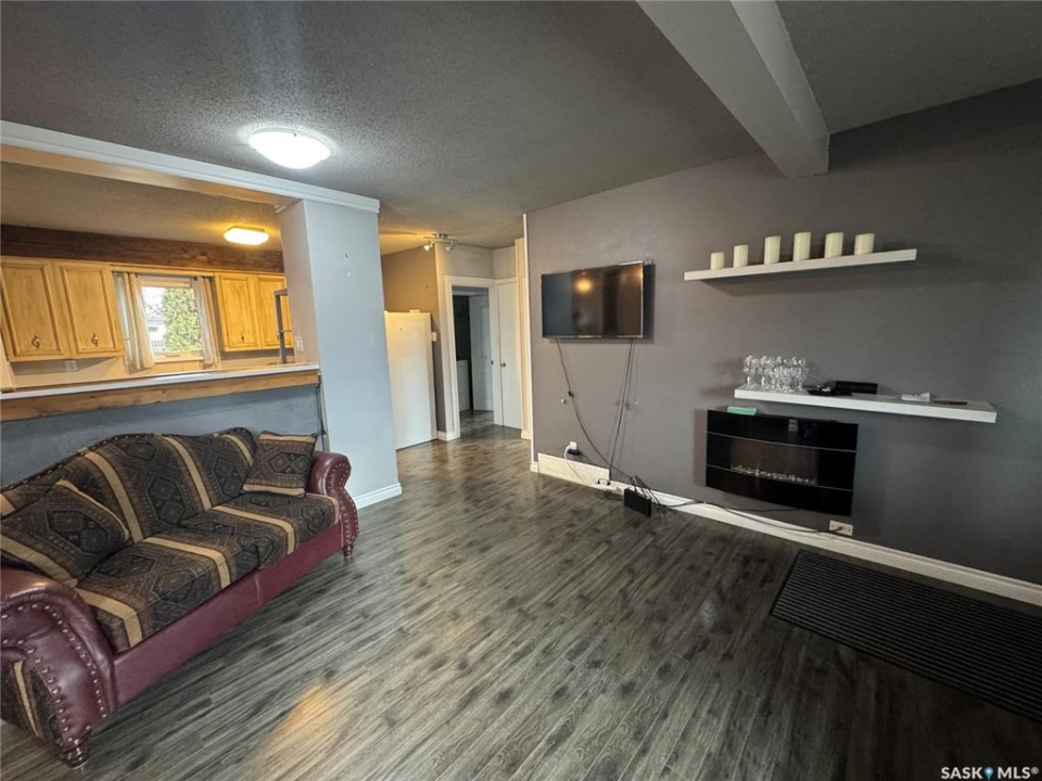 Enjoy easy, low-maintenance living in this nicely updated home just a short stroll from downtown. Designed for true single-level convenience, this inviting property offers a bright south-facing living room and a spacious kitchen with an adjoining dining area. Patio doors lead directly to the backyard deck—ideal for summer barbecues, morning coffee, or relaxing outdoors. The home features one bedroom and a four-piece bathroom with main-floor laundry for everyday practicality. Updates throughout—including flooring, fixtures, windows, and exterior doors—provide a clean, modern feel from room to room. A partial basement offers additional storage and houses the furnace and water heater. Outdoors, the fully fenced yard is a standout, showcasing a generous 42' x 10' deck, garden shed, mature trees, perennials, and plenty of green space to enjoy. Perfect for those seeking a simplified lifestyle, this home is conveniently located just a block and a half from the downtown core, half a block from the New Horizons Senior Center and medical clinic, and right across the street from the local library. A move-in-ready property in a prime location—book your viewing today!