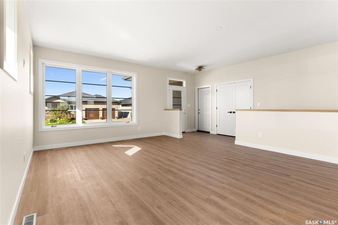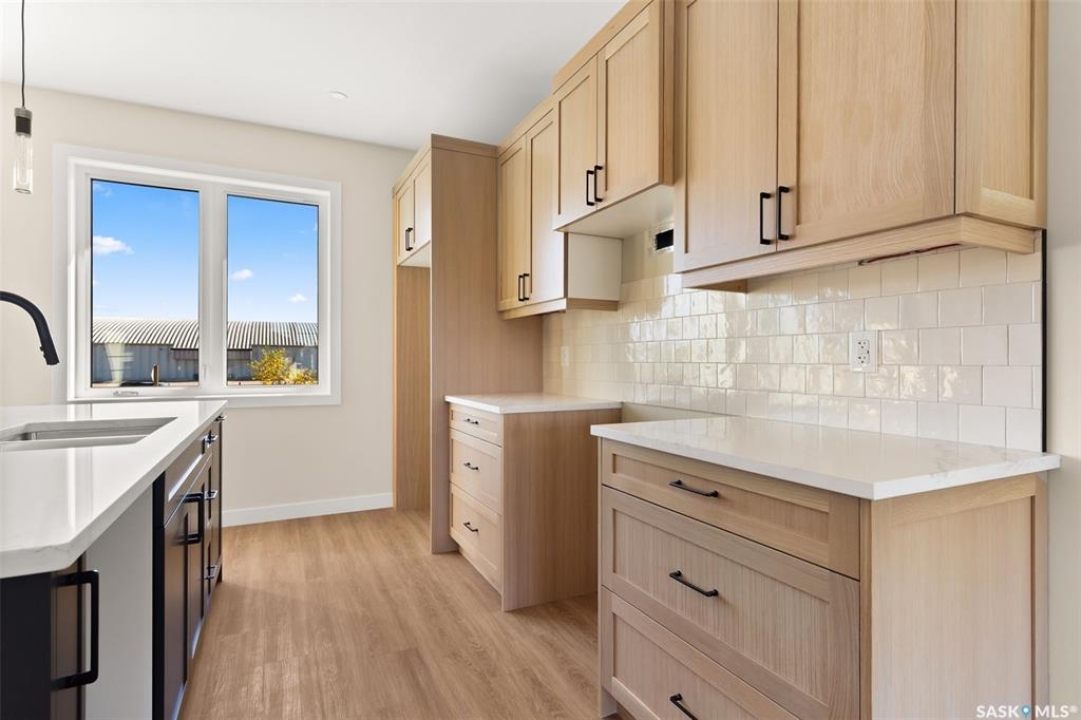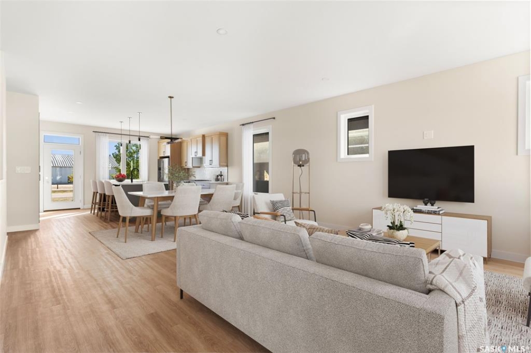 Welcome to 5 Konanz Bay in Balgonie! Just minutes from Regina, this 1,405 sqft bungalow by Outlander Construction is functional and stylish. Showcasing open-concept living at its best, this is the perfect space for entertaining and active family living! The kitchen features loads of trendy shaker-style cabinetry, quartz countertops and an 8' eat-up island. The spacious primary bedroom offers a walk-in closet and 3-piece ensuite. Rounding out the main floor are 2 additional bedrooms, a 4-piece bath and convenient main floor laundry. The basement exterior walls are framed and insulated and plumbing is roughed in for another bathroom. Progressive home warranty is in place. Other features include: over-sized double garage, exposed aggregate driveway and maintenance-free exterior.