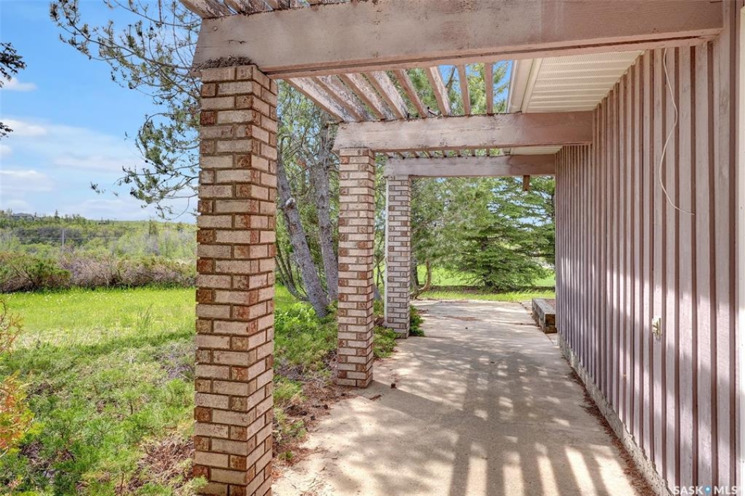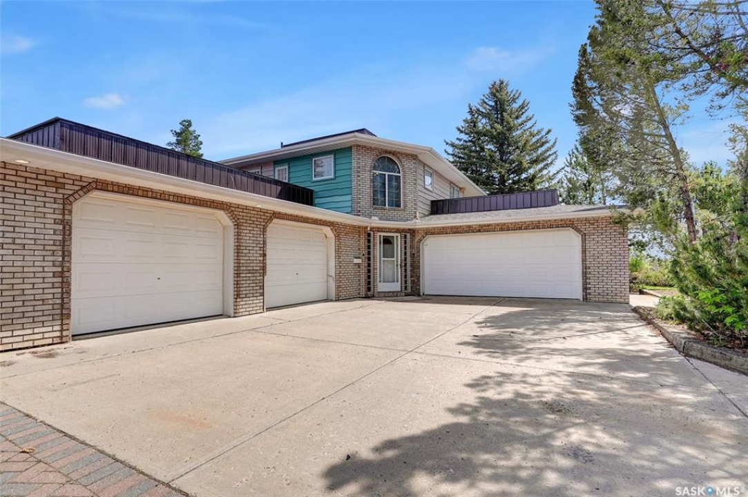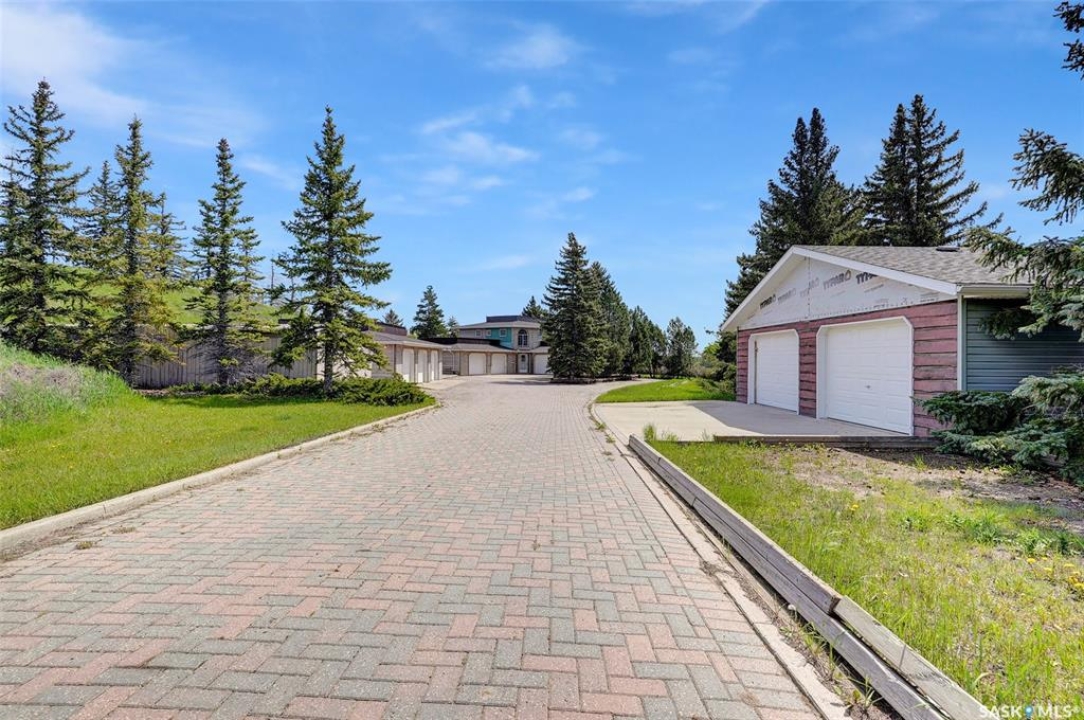 A VERY RARE & UNIQUE gated 2.36 Acre property overlooking the Moose Jaw River Valley. The property is landscaped w/grass, trees (fruit trees, shrubs, hedges), patio, decks & expansive interlocking stone drive & parking areas. The entire site is fenced w/a “game” fence & metal gate plus a RETAINING WALL – approx. 280 ft of poured & reinforced concrete on the North side as this property was levelled into a hillside. This site is superior to any property in Moose Jaw in its grandeur & rarity. Property hosts 2 x Att. Dbl. Garages, 1 x Oversized dbl. Garage & 1 X Triple Det. Heated Garage. There are 2 x Parking Pads that could accommodate another 12 or more vehicles & a stately drive that leads you into the property from the front gate plus a Dual sided Shed, set as an outbuilding. Now let's talk about the 2 Storey home. There is an upper Deck off Primary Bed, in addition to a wraparound deck from dining area & even a Patio facing the hillside. The main entrance is named “Mudroom” as this joins the 2 Att. Garages, however there is a formal Front entrance w/Foyer w/cathedral height ceiling w/drop light style chandelier. This home is SOLID & the space is incredible that can be updated to your personal choice. 3 Bedrooms, Den, 2 x Family Rooms, 2 x Carpeted Crawl Spaces named as “Other”, 3 Baths & w/some elbow grease this property becomes an ESTATE, not only for a family but a property where you could not only live but operate your business. The possibilities are endless! Serious & Qualified buyers only. HOME IS SOLD AS IS, WHERE IS! Drive to 7th Ave SW, drive down the road that was previous access to the site of the former Wild Animal Park & you will see the Front Gate! FOR A FULL VISUAL TOUR, PLEASE CLICK ON THE MULTI MEDIA LINK and Let's Make Your Next Move!