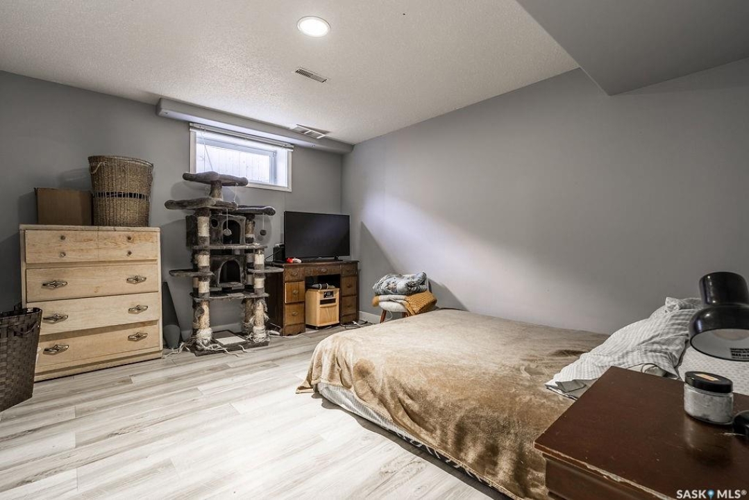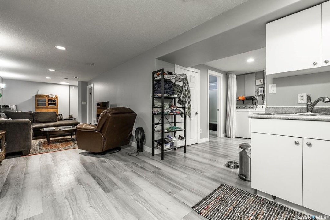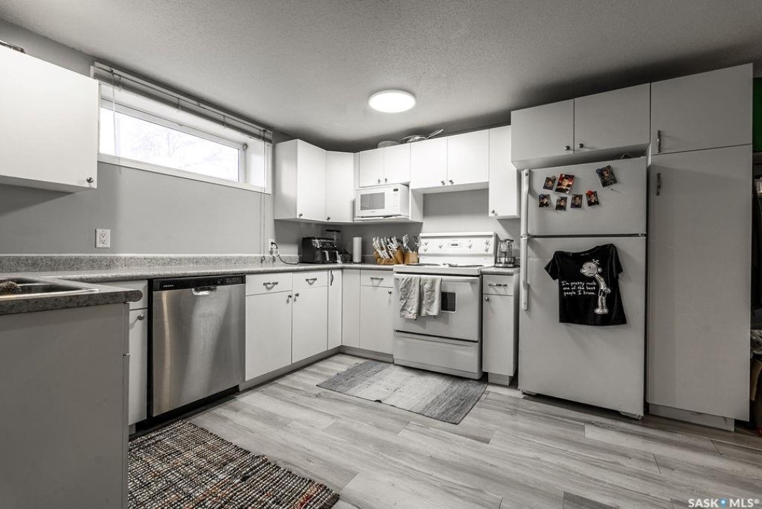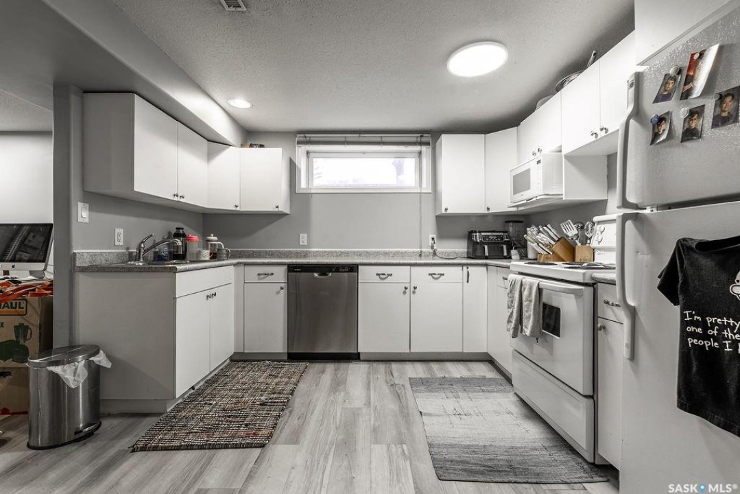 Check out this beautifully updated starter home situated on an oversized corner lot on a quiet street. Inside, the main floor features an updated kitchen with modern countertops, mosaic tile backsplash, and stainless steel appliances. The living room is filled with natural light and finished with updated flooring. You'll also find a 4-pc upgraded bathroom, 2 bedrooms and a 3rd bedroom currently being used as laundry. The lower level boasts a spacious suite with its own entrance and separate laundry. The suite includes a large bedroom, an oversized kitchen with dishwasher and dual sinks, an updated bathroom with a 5' shower, and a bright, generous living room. New vinyl flooring, and updated windows complete the space. In the large backyard you'll find a concrete patio, shed and firepit area. The property is surrounded by mature trees and offers convenient access for a future garage.