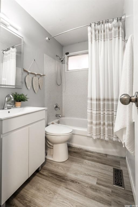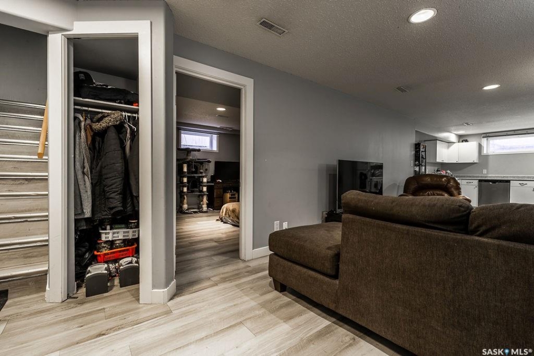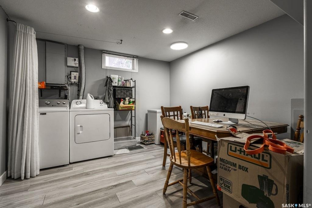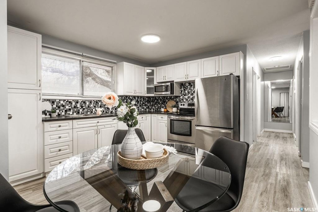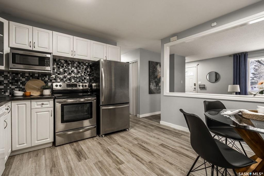 Check out this beautifully updated starter home situated on an oversized corner lot on a quiet street. Inside, the main floor features an updated kitchen with modern countertops, mosaic tile backsplash, and stainless steel appliances. The living room is filled with natural light and finished with updated flooring. You'll also find a 4-pc upgraded bathroom, 2 bedrooms and a 3rd bedroom currently being used as laundry. The lower level boasts a spacious suite with its own entrance and separate laundry. The suite includes a large bedroom, an oversized kitchen with dishwasher and dual sinks, an updated bathroom with a 5' shower, and a bright, generous living room. New vinyl flooring, and updated windows complete the space. In the large backyard you'll find a concrete patio, shed and firepit area. The property is surrounded by mature trees and offers convenient access for a future garage.