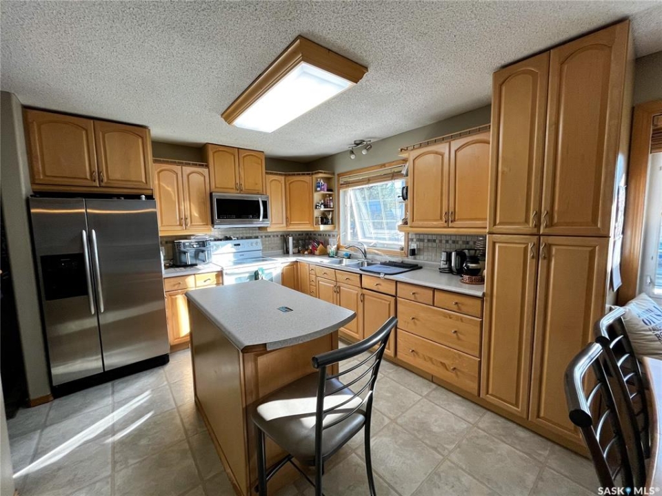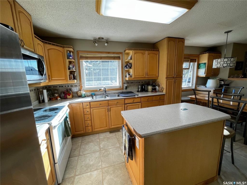 Fully finished 4 bedroom, 3 bathroom beautiful home with 2 garages! Welcome to Saltcoats! A family, friendly, quiet community just 15 minutes east of the City of Yorkton off highway 16. You get more house for your money here! It has a great school and teachers, a curling rink, great watering hole gathering place, beautiful ball diamonds, a skating rink and a lake right in the community that is adjacent to the Saltcoats District Regional Park. There is definitely pride of ownership in the community and especially when you drive down Allan Ave! This home is a hidden gem! You can drive right into your gas, heated & insulated 10ft ceiling, attached garage and enter the foyer which is visible to the bright open kitchen complete with maple cabinets and a custom matching maple table, chairs and window seat which also is included in the sale. The kitchen is open to the living room which leads to your patio doors and a beautifully shaded front porch deck. All 3 bedrooms on the main are a nice size and the primary includes a walk-thru closet into a 3 piece ensuite. The basement includes the 4th bedroom and 3rd bathroom for your growing family or guests. Need storage? There is lots both inside and out. On the outside, you have a beautiful large backyard which includes a patio area, raised garden, and an additional detached garage/shop at the back of the property, accessed by your lane. Some HIGHLIGHTS: 200 amp service, two garages (attached built 2002), Outside front deck, patio, beautiful large yard, bonus custom table included, updated water tank, updated furnace, smart, built in sound system, NEW shingles 2020, NEW Front and back garage doors, NEW Maytag oven w/air fryer, NEW dishwasher, Steel roof on detached, Sasktel internet, all LED lights and RO town water system. This house is well looked after, flows nice and is warm and welcoming. Contact an agent for your private tour of your new home!