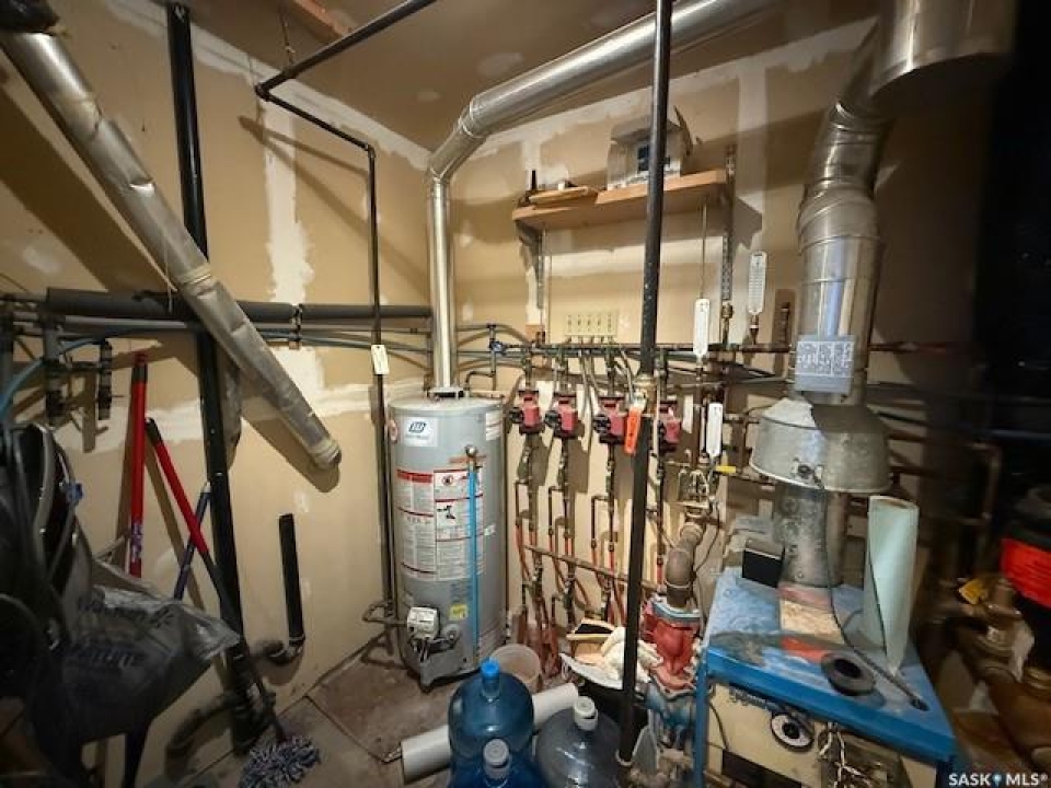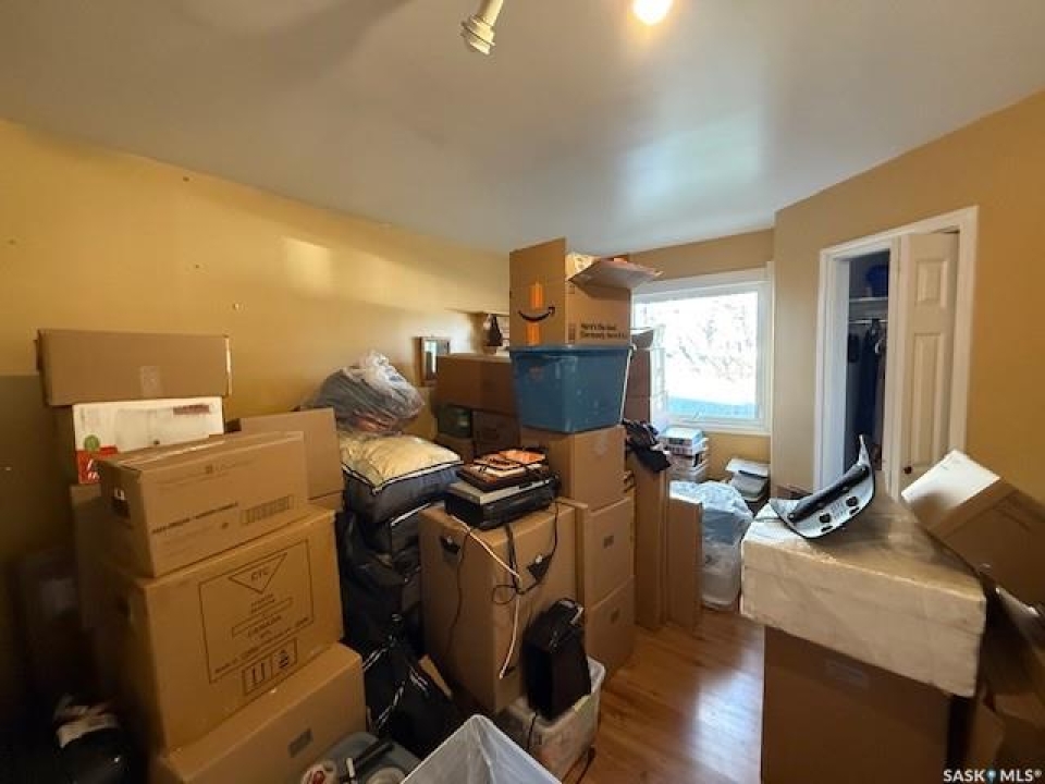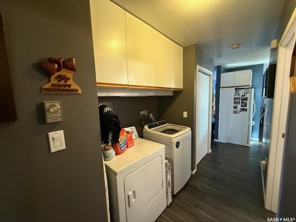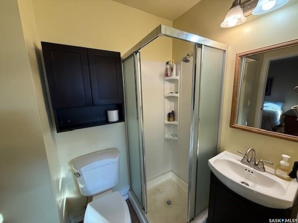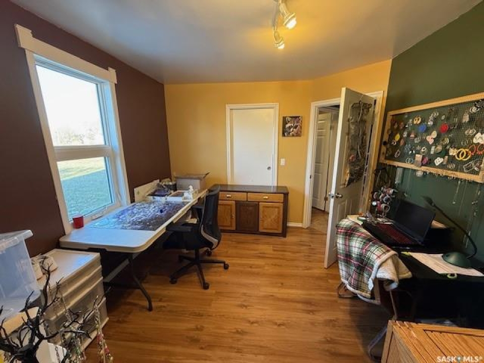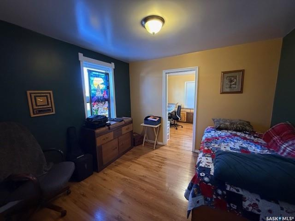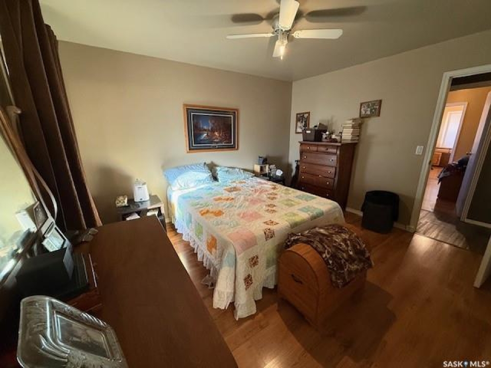 Welcome home to this spacious 1,880 sq ft bungalow nestled in a quiet, small community on a generous lot and a half. Built in 1996 and thoughtfully updated, this inviting residence features heated slab on grade floors for year-round comfort, five bedrooms (one currently set up as an office), and two bathrooms—including a 4-piece main bath and a 3-piece ensuite that connects seamlessly to an expansive recreation room. The heart of the home is a bright, open-concept kitchen, dining, and living area, boasting a large island, abundant cabinetry, a large pantry, and plenty of space for family gatherings. The sunlit rec room is surrounded by windows and opens through patio doors to the fully fenced backyard—perfect for entertaining with its patio area, fire pit, pergola, garden shed, and convenient back-alley access. A heated, detached two-car garage (built in 1990) with a gas furnace offers ample parking and workspace. Enjoy peace of mind with upgrades such as new flooring (2019), front and office windows (2025), hot water tank (2017), and shingles (2021). The original attached garage was cleverly converted to living space in 2007, enhancing the family space. Additional highlights include main floor laundry, gas boiler heat, 100-amp electrical service, and generous closet storage in every room. Ideal for families or those seeking accessible, ground-floor living with no stairs, this property combines comfort, space, and versatility in a welcoming community setting.
