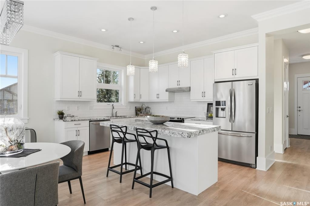 Wow! Truly a rare find! This stunning luxury walk-out bungalow townhome in highly sought-after Rosewood is fully finished and beautifully upgraded from top to bottom. Offering 3 bedrooms, 3 bathrooms, and exceptional high-end finishes throughout, this home is designed for comfort, elegance, and effortless living. As you step inside, you'll be impressed by the 9' ceilings, 8-foot interior doors, and the bright, open-concept layout. The cozy living room features a gas fireplace, expansive windows that bring in abundant natural light, and direct access to the upper deck with a gas BBQ hookup — perfect for relaxing or entertaining. The chef-inspired kitchen boasts a large granite island, ample cabinetry, and a generous walk-in pantry offering outstanding storage. The primary bedroom is a true retreat, complete with a luxurious 5-piece ensuite featuring double sinks, a soaker tub, separate shower, and a spacious walk-in closet. A versatile office/den completes the main level. The fully finished, bright walk-out basement offers even more living space with a large family room and a second gas fireplace, two additional bedrooms, a 4-piece bathroom, and an impressive 8' x 15' storage room. With 9' basement ceilings and direct access to a covered patio, it's perfect for quiet evenings outdoors. Recent upgrades include fresh paint in the basement family room along with replaced carpet and baseboards. Additional features include central air, an HRV system, and a fully insulated double attached garage with direct entry. This remarkable home combines an unbeatable location with luxury finishes — simply move in and enjoy.