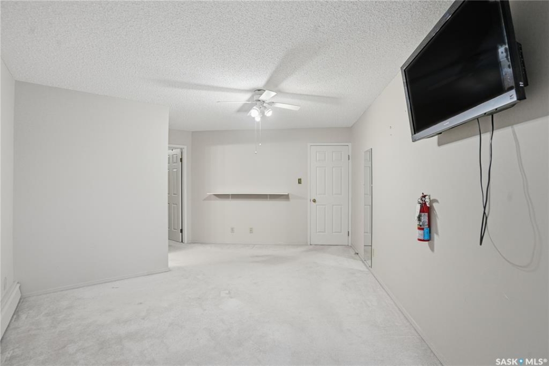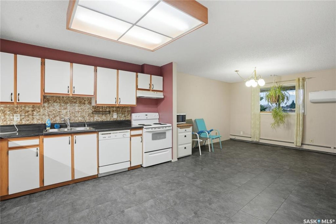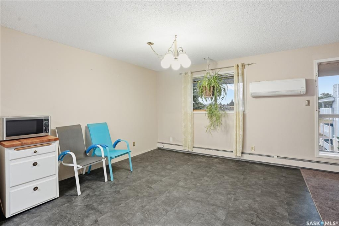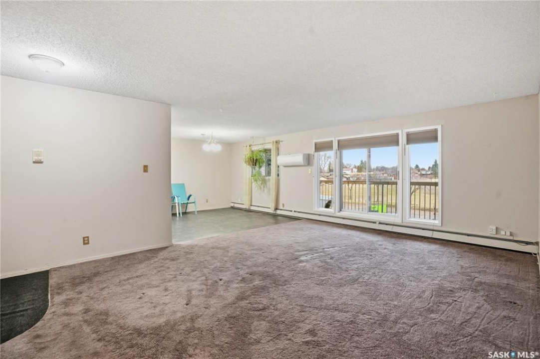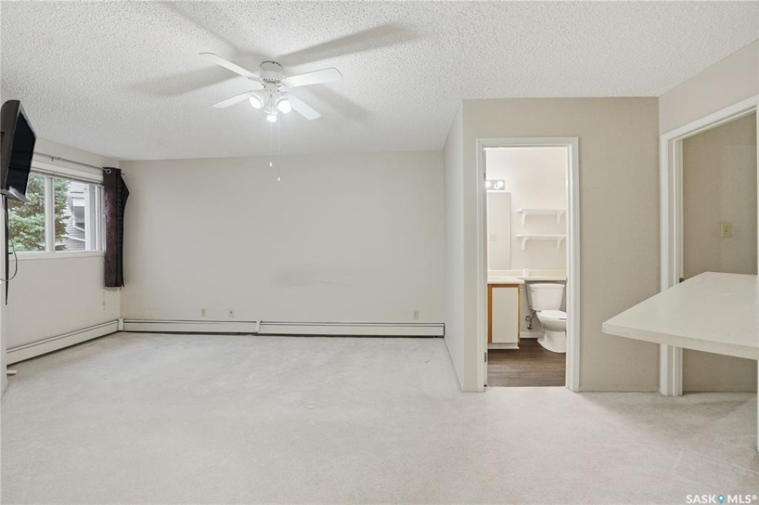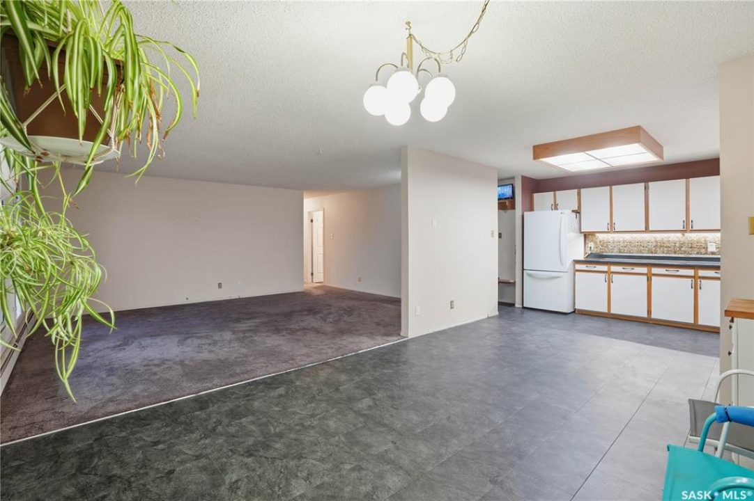 Elevator access, Park-view top-floor condo in Parkside Place! This bright 1,376 sq ft 2-bed, 2-bath unit offers an open layout with morning sun and direct park views from the living room. Features include a large in-suite laundry room, wall A/C, spacious balcony with storage, , and one electrified parking stall. Prime location near Confederation Mall, parks, schools, and Circle Drive. Vacant and move-in ready!