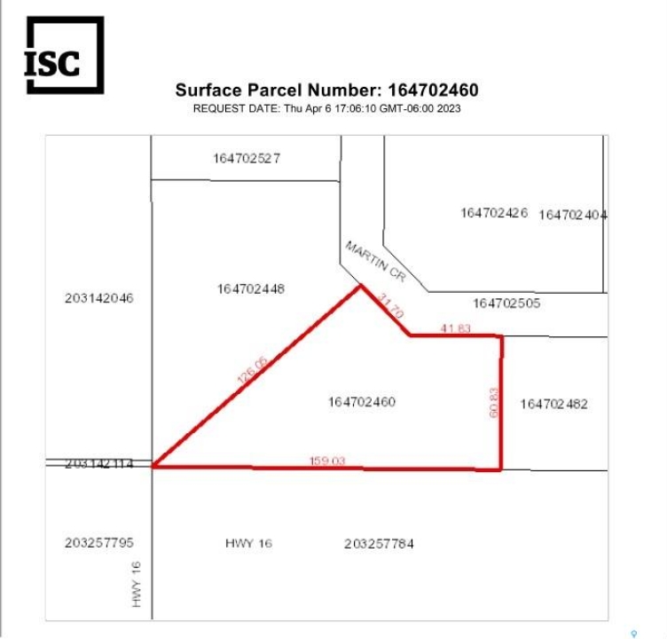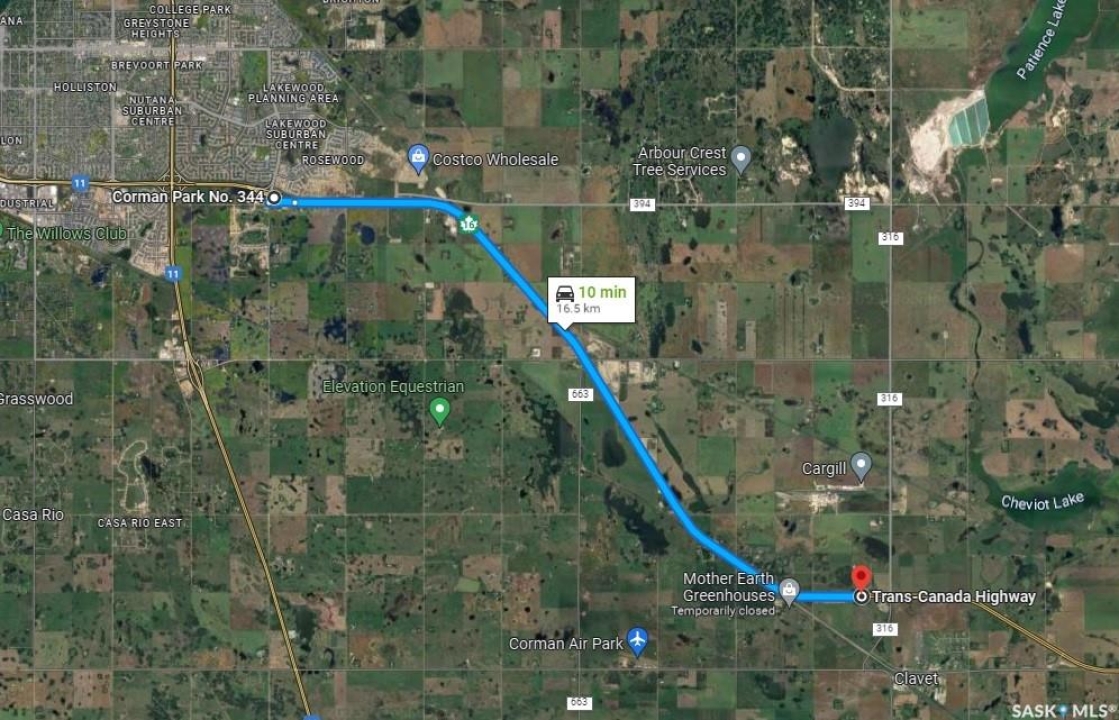 Fantastic location for your new acreage and/or home-based business in Green Meadow Estates. 2 acres approximately 10 minutes from Saskatoon and a few kilometers to Clavet. Just off Highway 16 to avoid gravel roads. Gas, power, and public water line are there ready to be hooked up. Flat land with natural grass and trees. Clavet Junction Gas and Convenience store are just down the block.