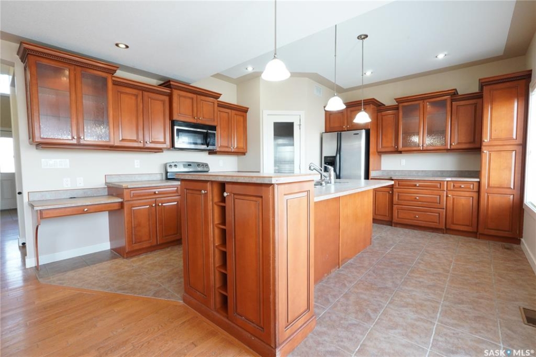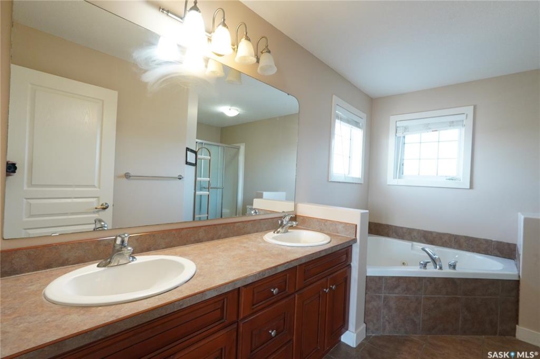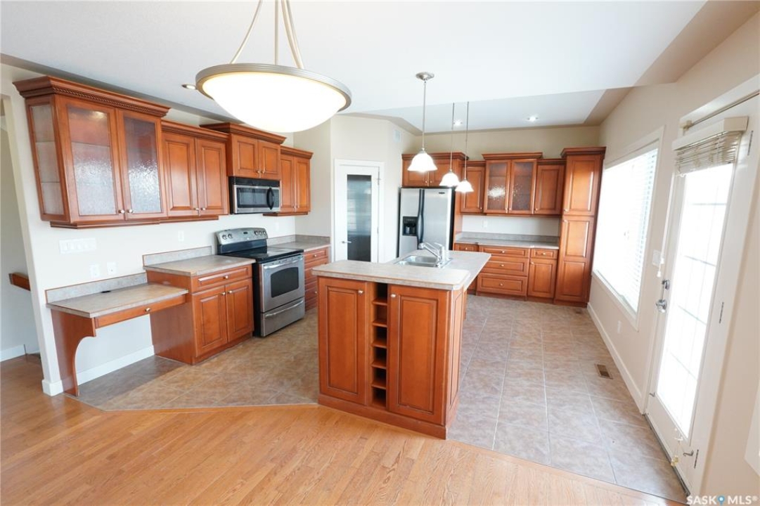 THIS IS NOT A CONDO AND THE YARD IS NOT SHARED. You get almost 3,000 SQFT of living space with this beautiful 2 storey walkout that has the location you will love, Wonderful White City! Backs the golf course and park which includes walking paths and all the fun a family requires! You are welcomed by the beautiful front yard and covered front steps that lead you into the foyer that brings flow through the entire home. Amazing natural light fills both the main and 2nd floor. With this open concept floor plan you will just love what this home offers. Great sized living room with a gas fireplace that creates a elegant focal point and hardwood flooring that runs through most of the main level. The kitchen offers a centre island, with extra seating, also featuring ample counters and cabinetry, backsplash, and pantry. The main floor also includes an office with its own 3 piece bathroom, laundry and direct entry into garage. The main floor comes complete with a 2 piece bathroom, also the dining area has patio doors leading to the deck with a beautifully landscaped backyard. The 2nd floor features 2 spacious bedrooms with the primary bedroom sized for your king size suite, a walk-in closet & a 5 piece bathroom with his and her sinks. This floor is finished with a 4 piece bathroom with tub surround and another huge bedroom. The lower level is fully finished with a family room, 3rd and 4th bedroom and a den perfectly set up for your media room. This floor is complete with a 4 piece bathroom with tub surround. Other features include newer furnace, heated basement floor, double attached garage, walkout basement to patio and much more! This home is in a fantastic location. Set up your viewing today you don't want to miss out on this one!