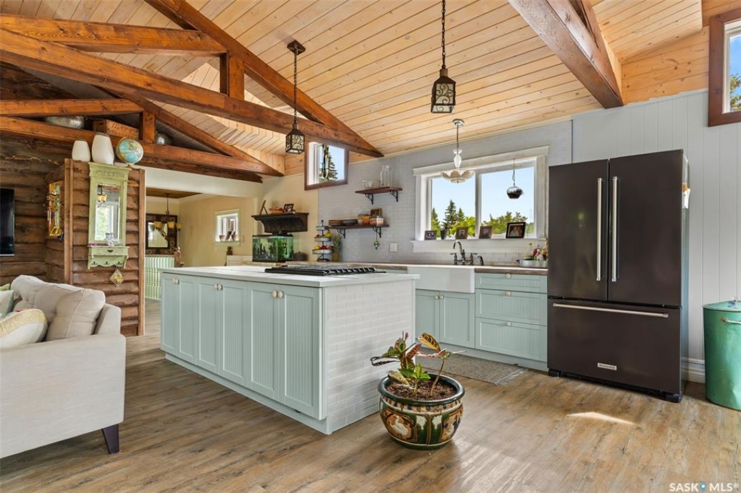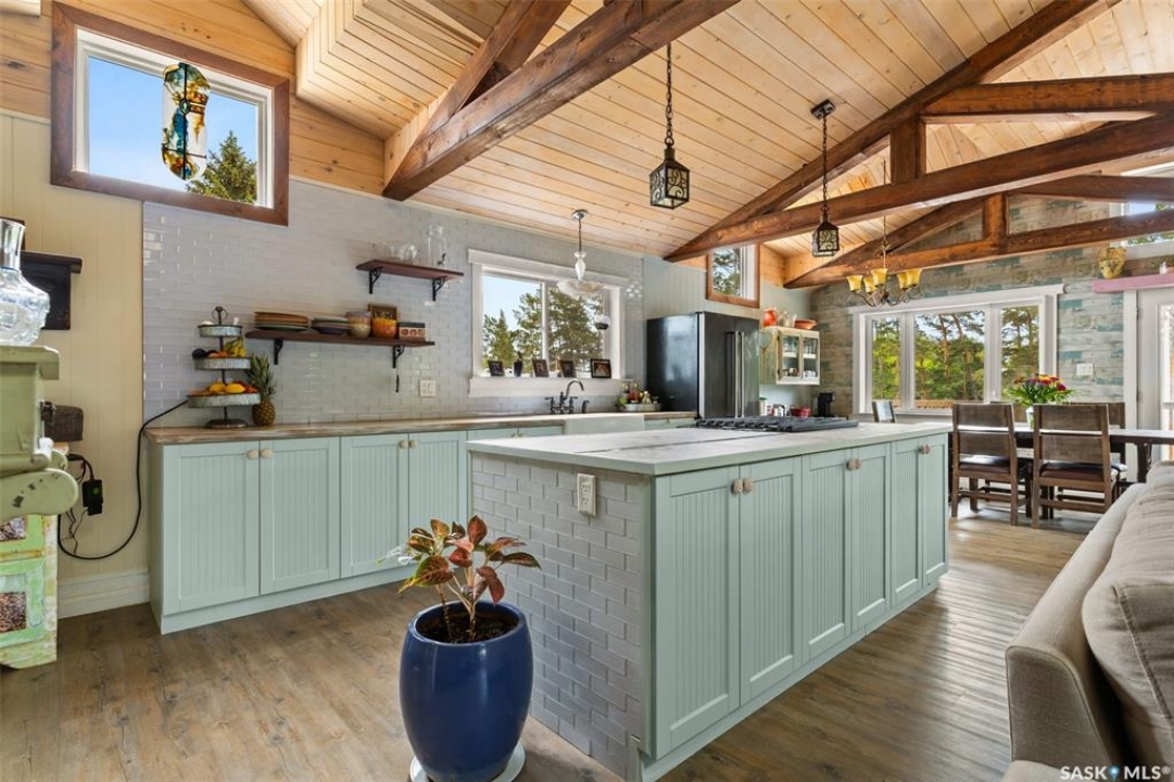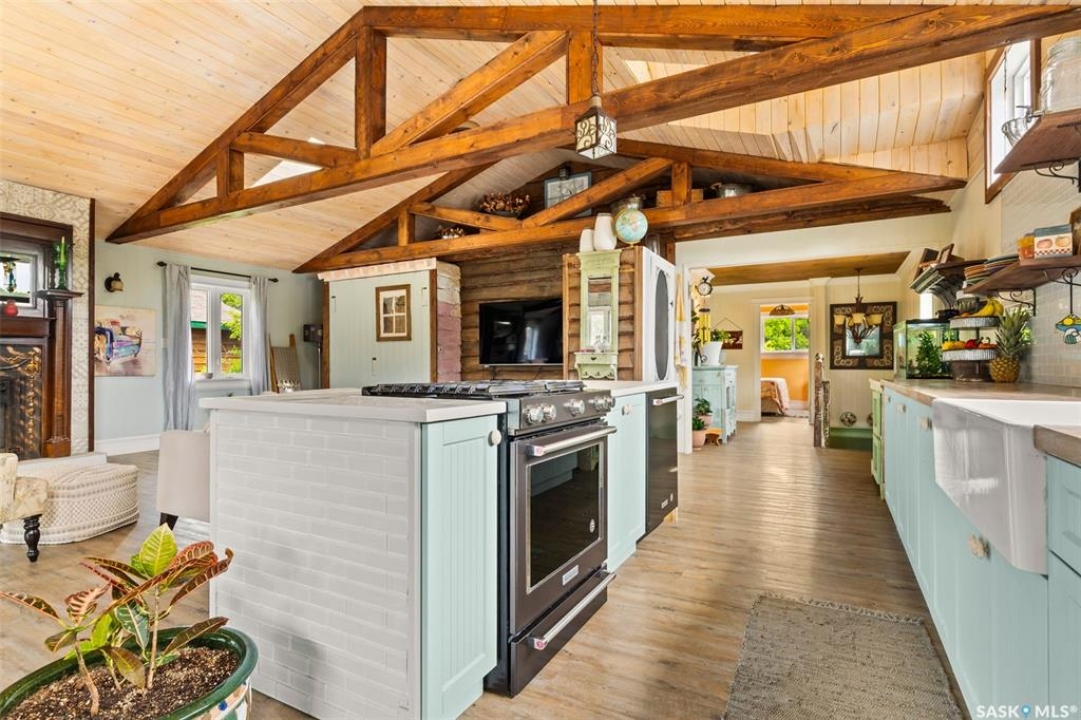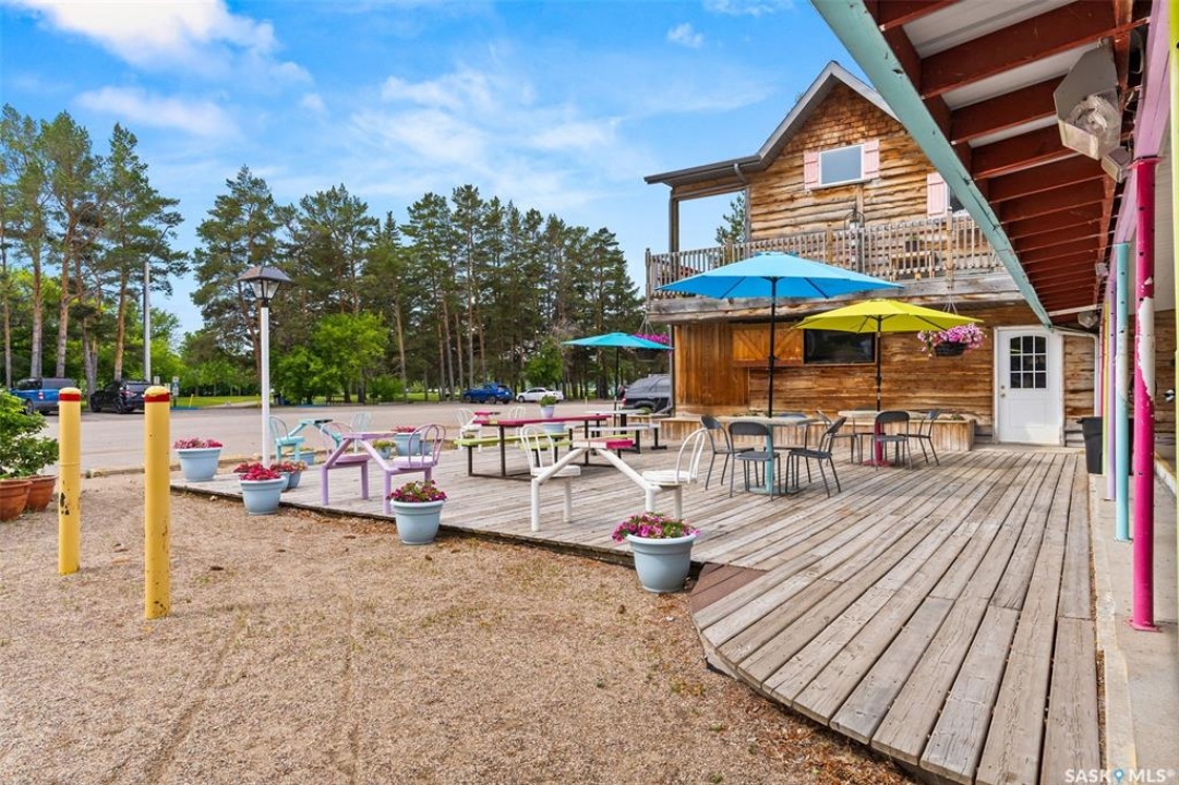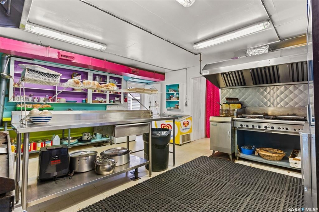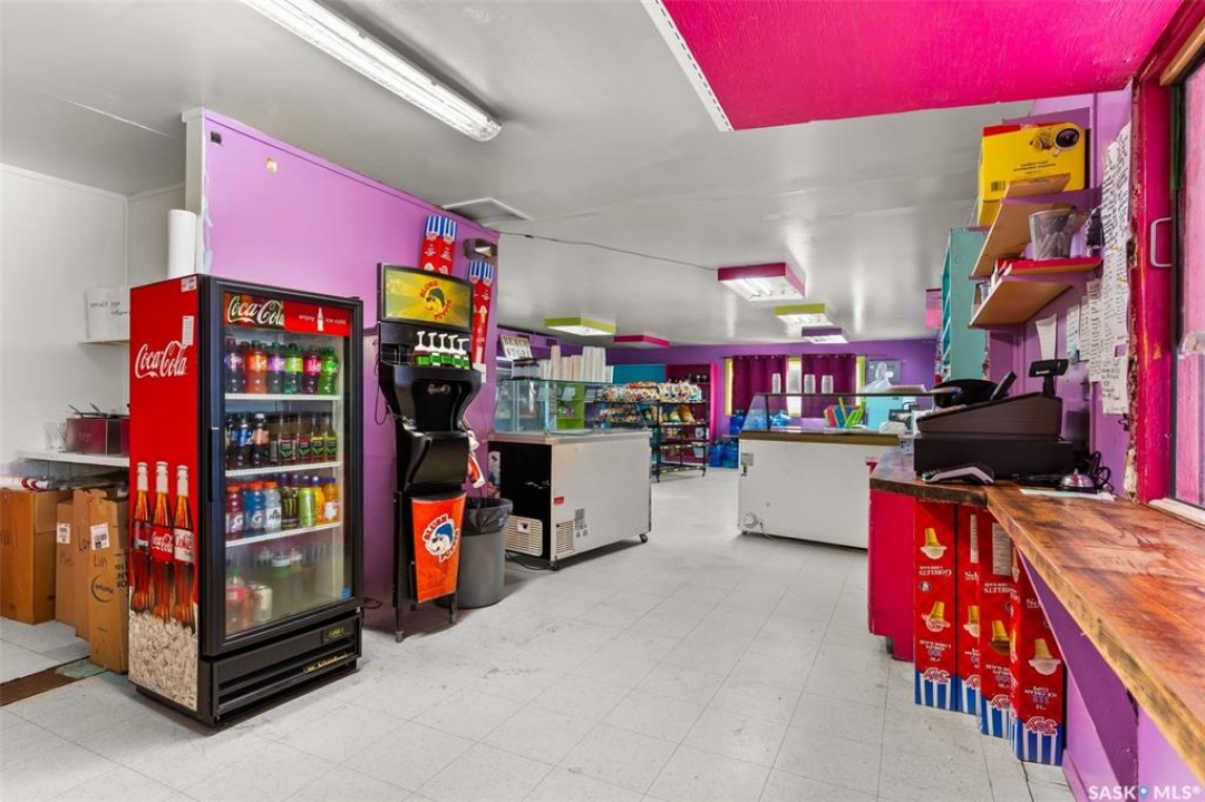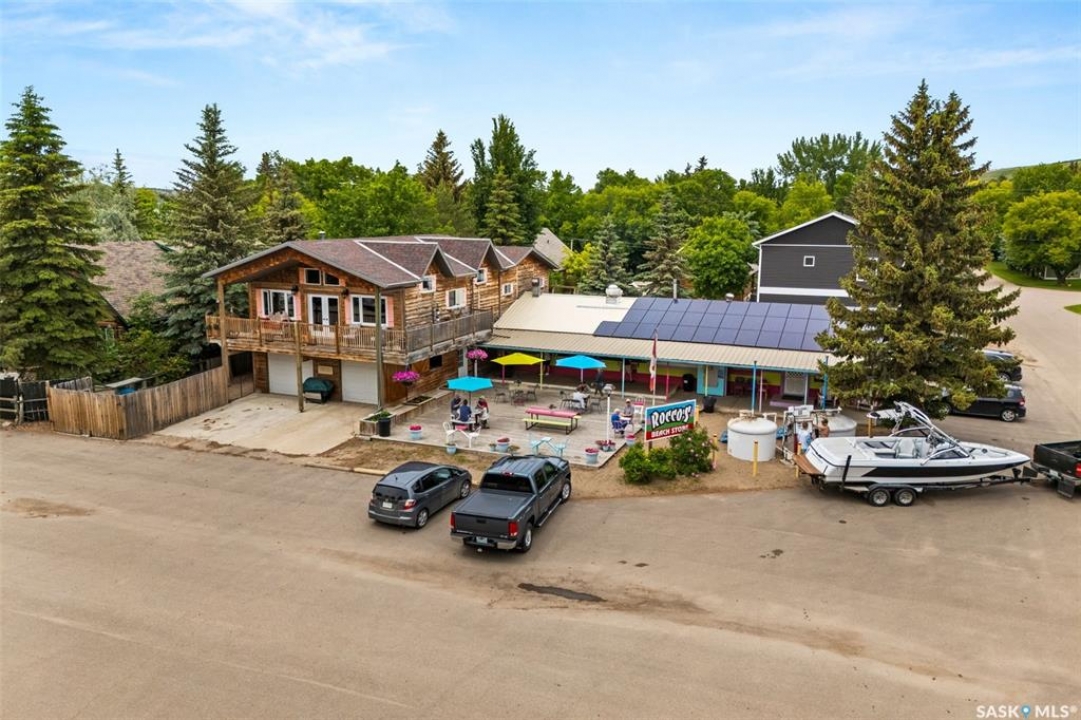 Rocco's Beach Store is located at Katepwa Beach directly across from Katepwa Beach Provincial Park. This busy turn-key comm/res property can be operated seasonally or year-round. The “take-out” window will keep you hopping serving tasty burgers, fries, poutine & ice cream treats! There is an additional retail space was used as a convenience store, or you could develop it into a coffee shop, bakery, pizzeria, clothing boutique or whatever your entrepreneurial heart desires. The kitchen is fully equipped with a flat top grill, broiler, ovens, deep fryer, overhead commercial exhaust hood, updated fire suppressant system, walk in freezer, & many coolers. The business sells propane tank exchange & has two above ground gas tanks. And don't forget Black Beauty, the antique coin operated mechanical horse! 40 solar panels assist with the power costs & plenty of parking. A unique feature of this property is the gorgeous attached home constructed between 2017 & 2019, making it an ideal candidate for a lucrative Airbnb rental business! The home has a double attached garage leading into the main level family room, complete with a 2-piece bathroom, mechanical room & laundry area. This level provides direct access to the commercial space as well as doors that open out to a private yard with RV parking & patio. Upstairs, you will be captivated by the vaulted ceilings & exposed beams. The open concept floorplan creates an airy & spacious environment. The kitchen has modern appliances & perfect for hosting gatherings. The living room features an antique wood-burning fireplace, while skylights flood the space with natural light. Down the hall is a roomy primary bedroom, 4-pce bathroom with a soaker tub & a second bedroom. The living room includes a custom motorized king-size Murphy bed for additional sleeping space. Off the 2nd level is a wrap-around deck offering views of the park & lake. This property is truly one of a kind, making it a perfect retreat or income-generating rental.