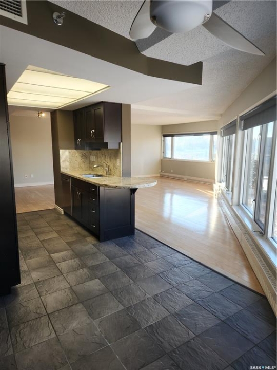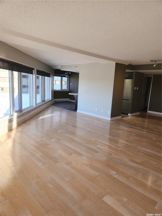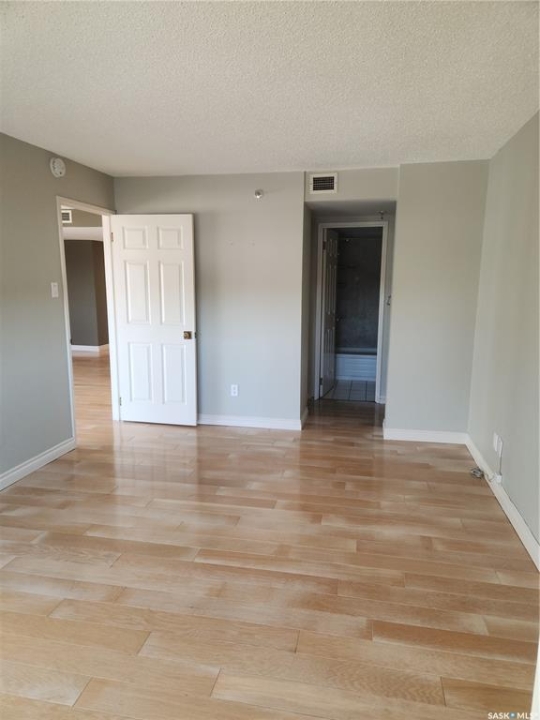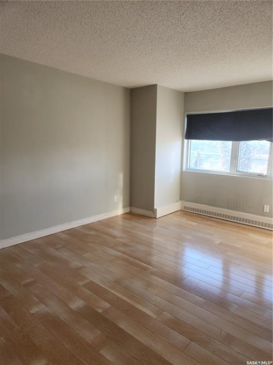 Welcome home to 424 Spadina Crescent East. This executive condo features 2 bedrooms, 2 bathrooms, in-suite laundry, storage locked and underground parking. The entrance opens right in to the living space. The walls surrounding the den have been removed to allow for an open living space. The kitchen features granite countertops and stainless steel appliances. The large primary bedroom features a walk-in closet and en-suite. Views overlooking Broadway Bridge And the River. This concrete building features access an in-door swimming pool, exercise room, underground parking stall, and storage locker. Easy access to walk along with river out the front of the building. Easy access to enjoy the many Shops and restaurants located in the Downtown area