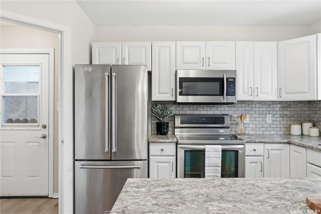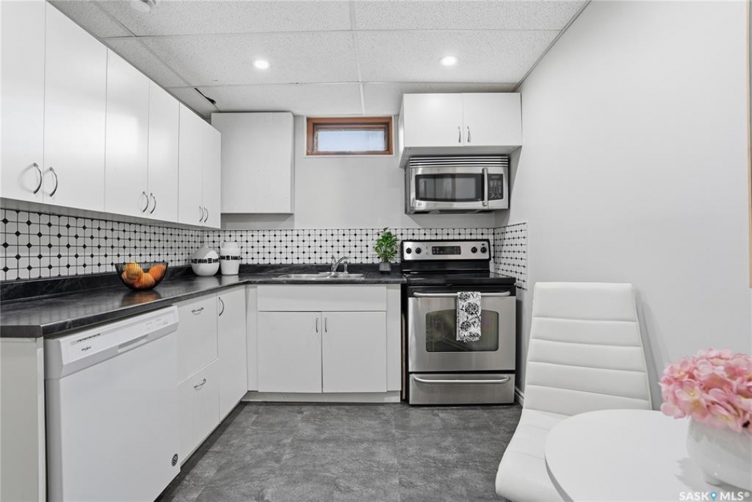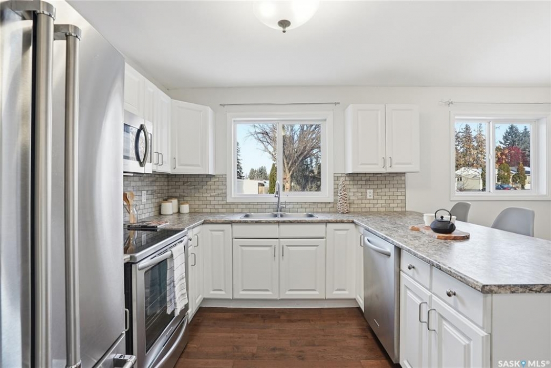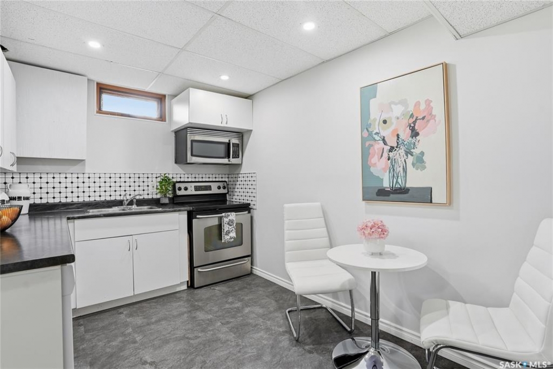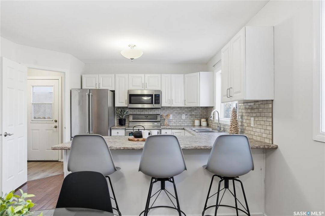 This ideally located Nutana Park 5 Bedroom, 3 Bathroom home with separate side entry, two kitchens and two washer/dryers could be the perfect opportunity for you! The open concept main floor features a spacious living room with gas fireplace, dining room and kitchen with ample countertop space and eat-up island. There are also 3 sizeable bedrooms, 4-pc bathroom and a 3-pc ensuite with a large walk-in shower, as well as main floor laundry with separate side entry. The basement features a second kitchen, washer and dryer, spacious family room and two large bedrooms. Parking is easy with the single detached garage and 36'x8' driveway. The backyard features a shed, garden boxes, and back-alley access. Many upgrades completed over the years. Conveniently located near parks, schools, Circle Drive access, bus stops, Market Mall and many more amenities. Whether you're a family, first time home buyer, or an investor, this home could be the perfect opportunity so don't miss out and book your personal viewing today! Presentation of Offers is November 30th, 2025 at 2:00pm.